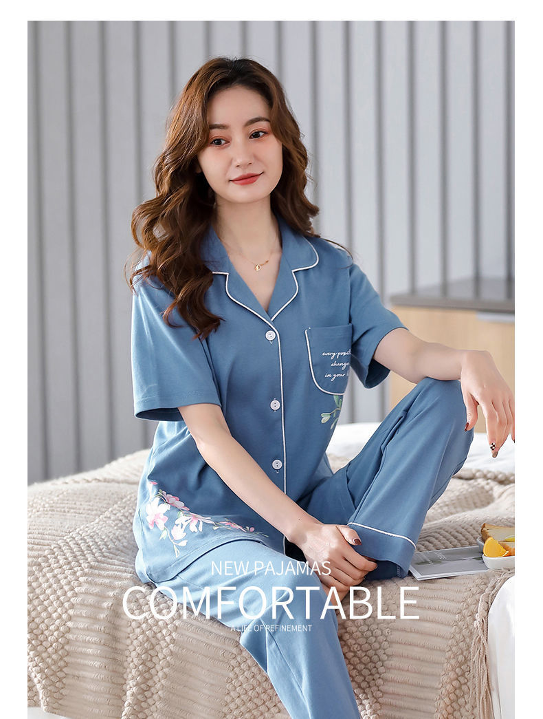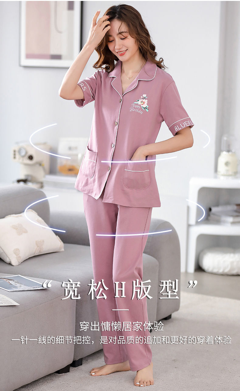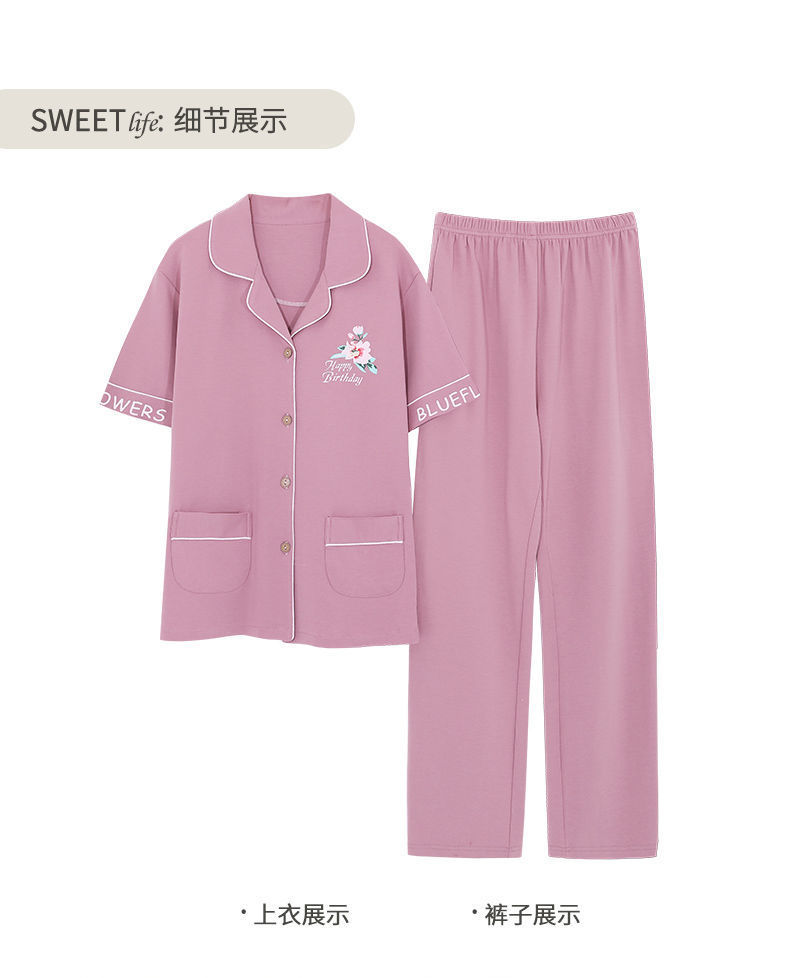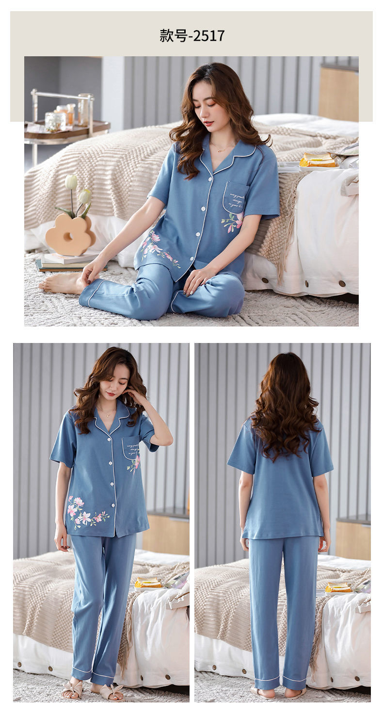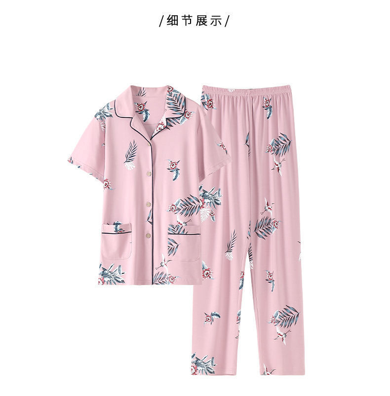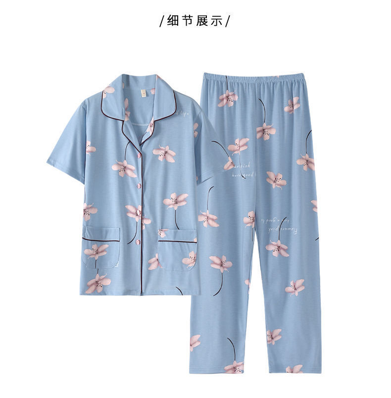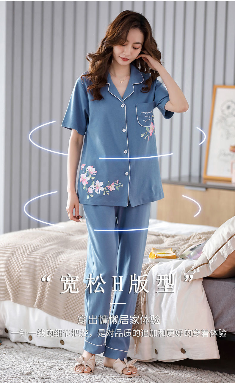 Pijama de algodón para mujer Pantalones de manga corta de verano más traje de chaqueta de mediana edad y madres de edad avanzada