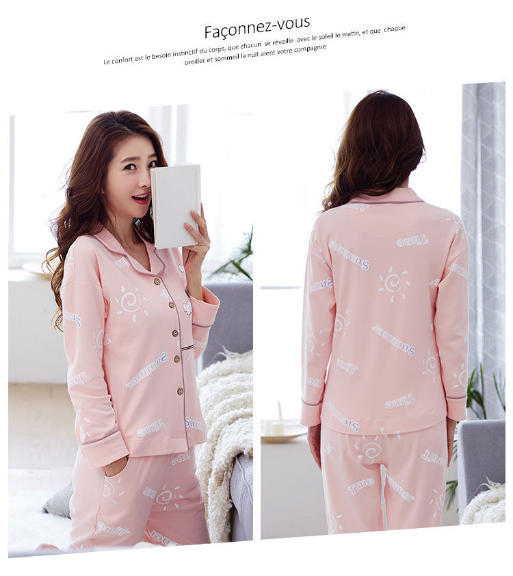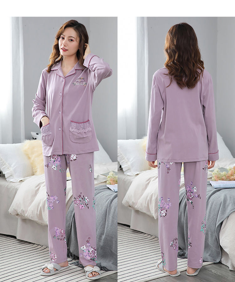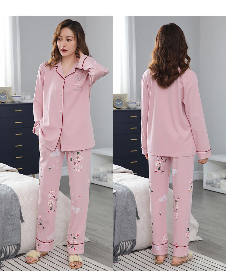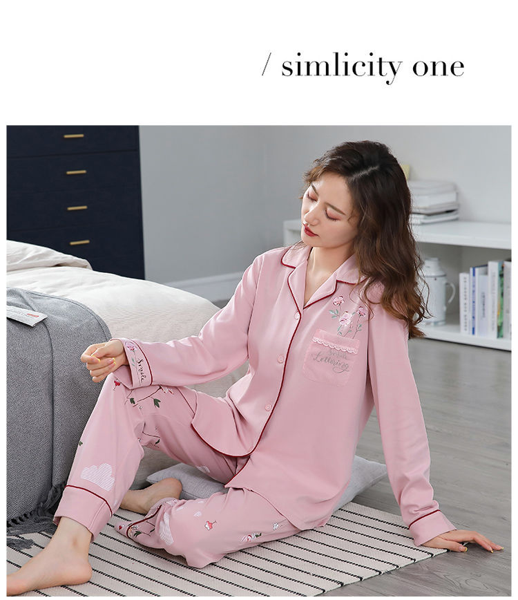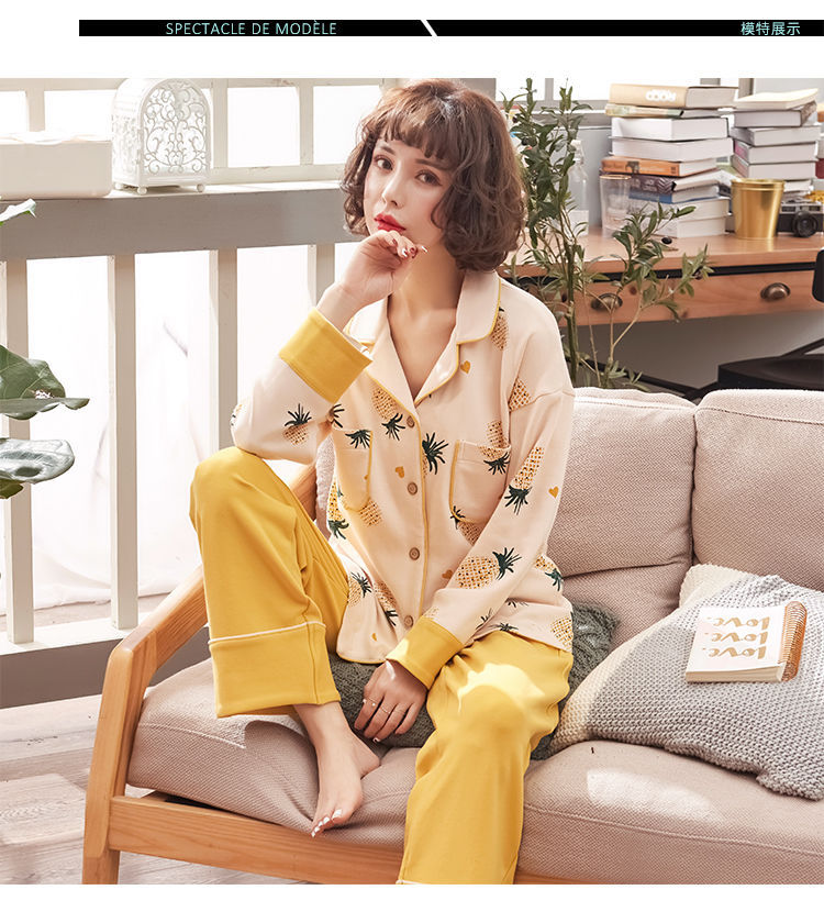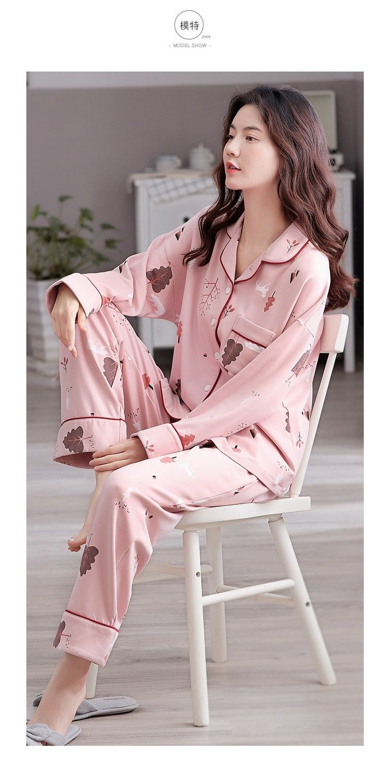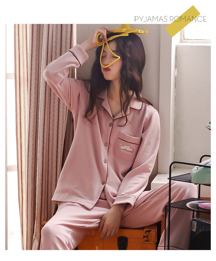 Pijamas mujer primavera y otoño 100% algodón de manga larga cardigan otoño algodón casual prendas de vestir exteriores ropa de hogar otoño e invierno dos piezas