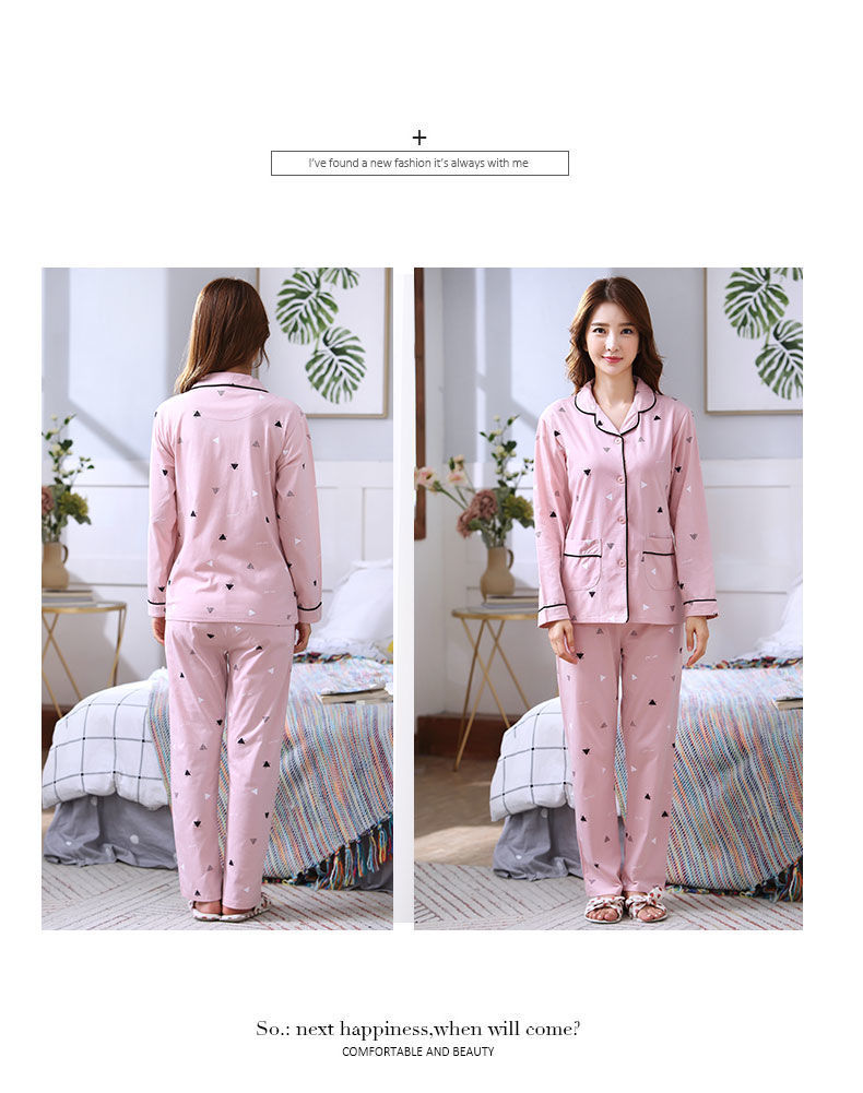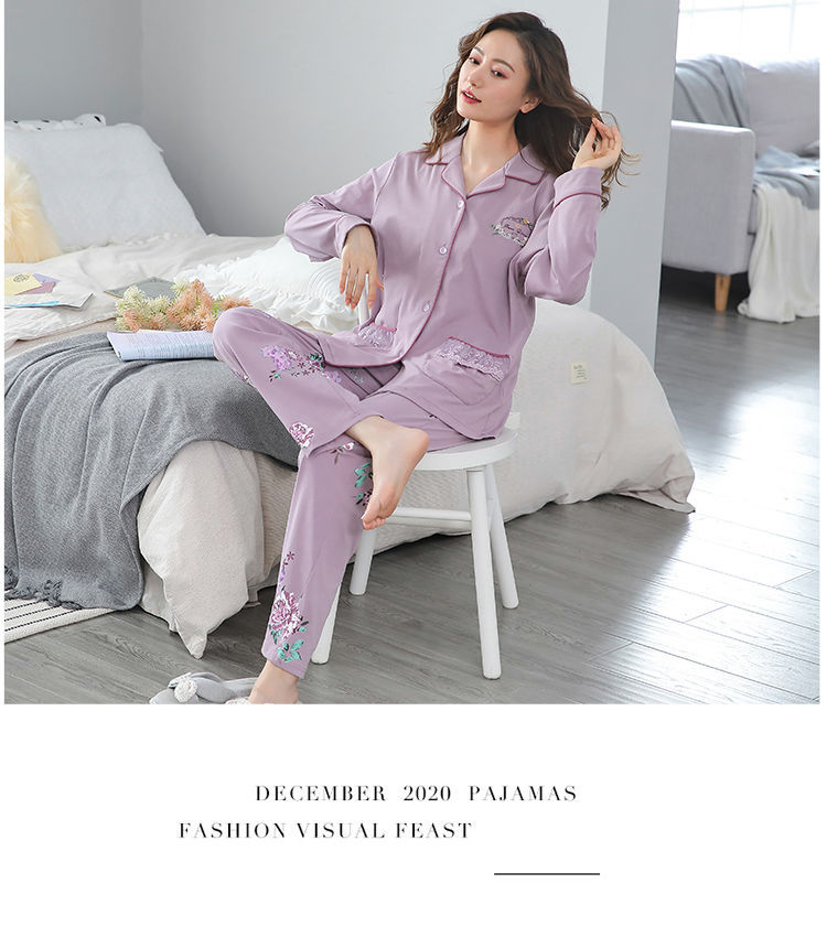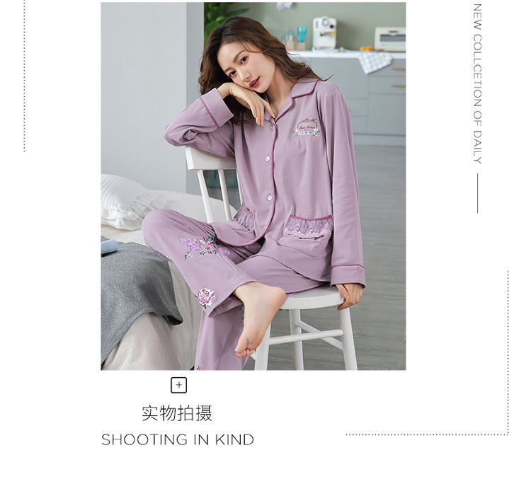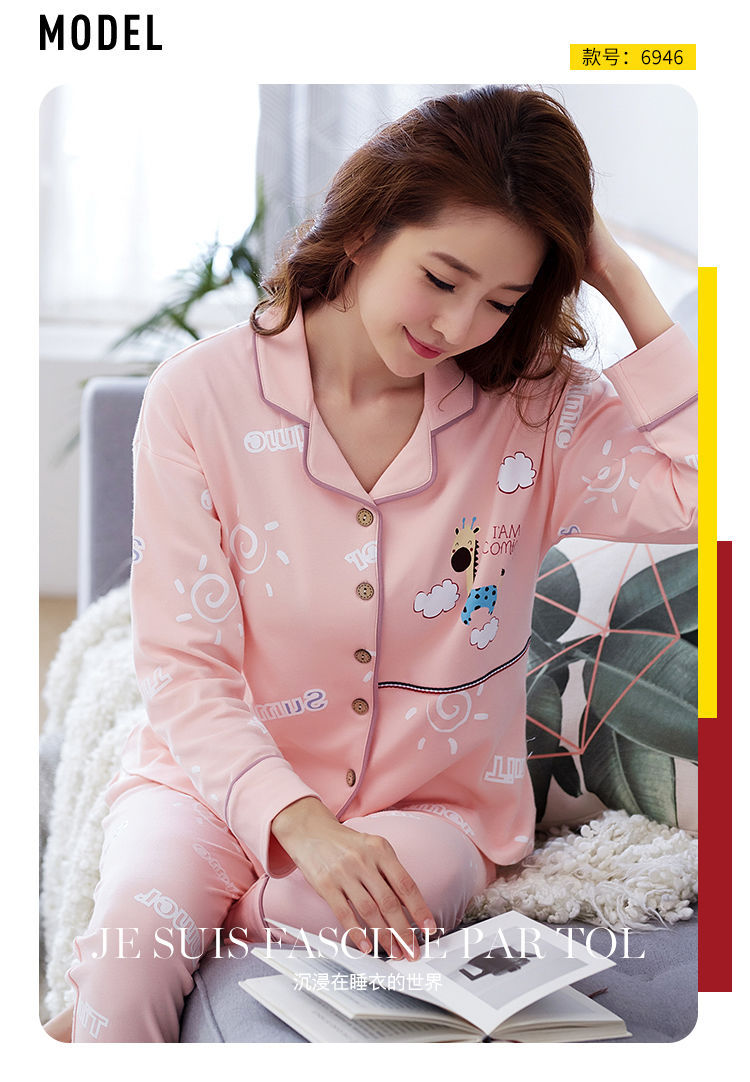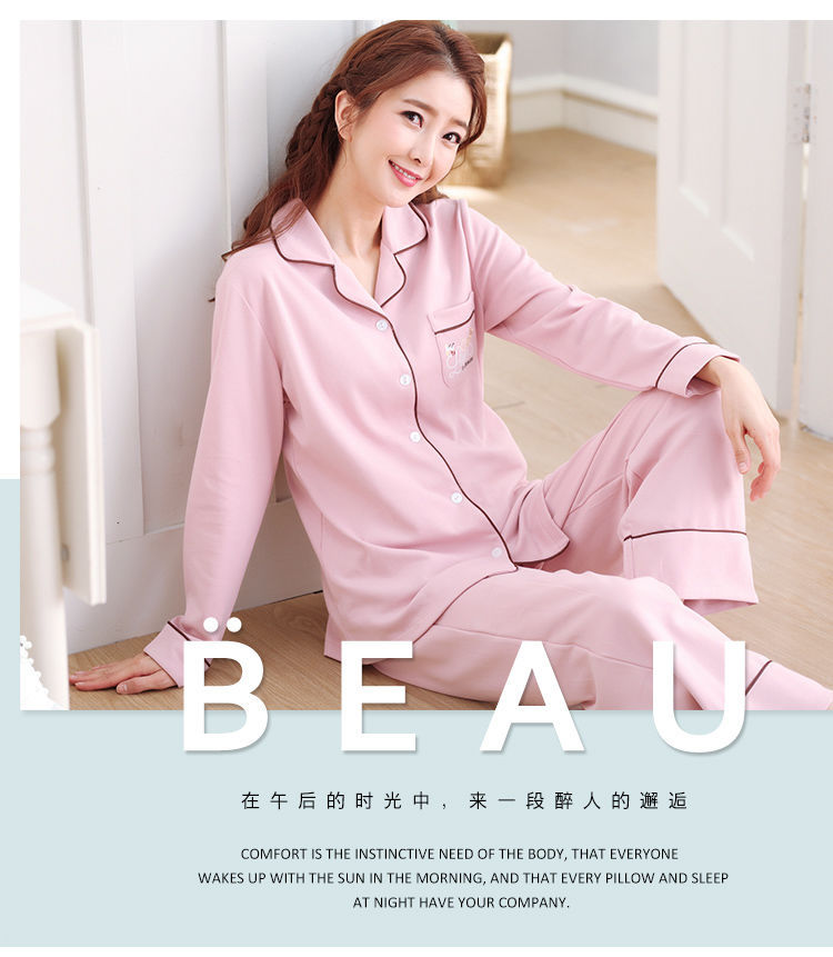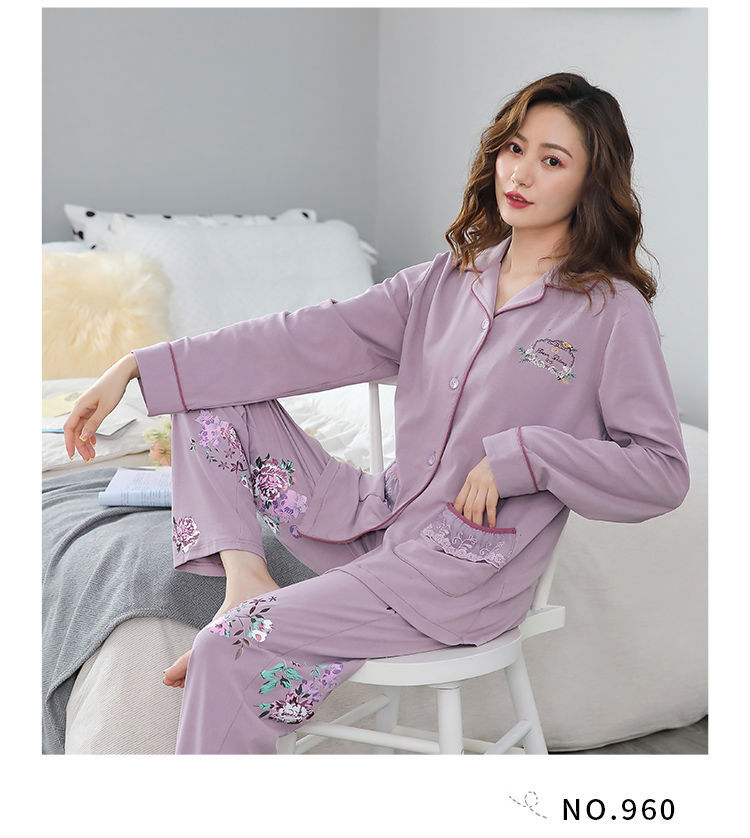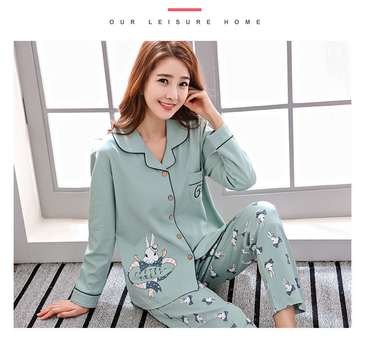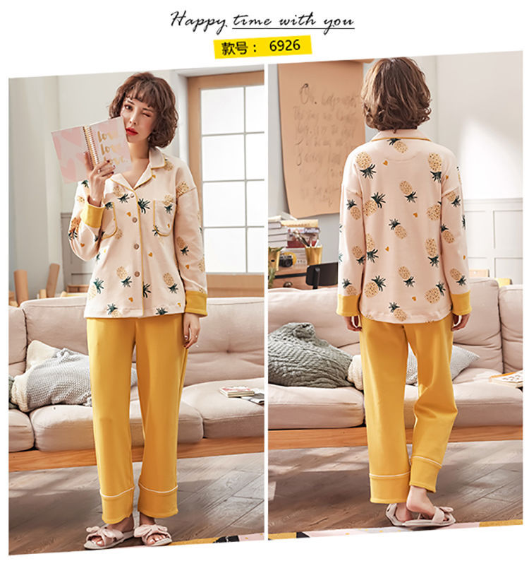 Pijamas mujer primavera y otoño 100% algodón de manga larga cardigan otoño algodón casual prendas de vestir exteriores ropa de hogar otoño e invierno dos piezas