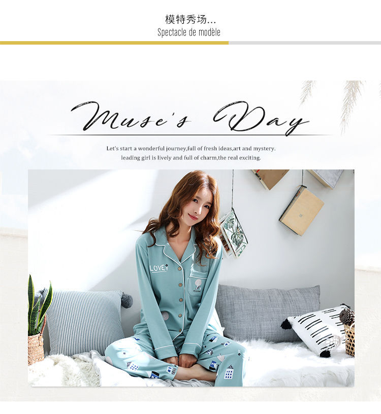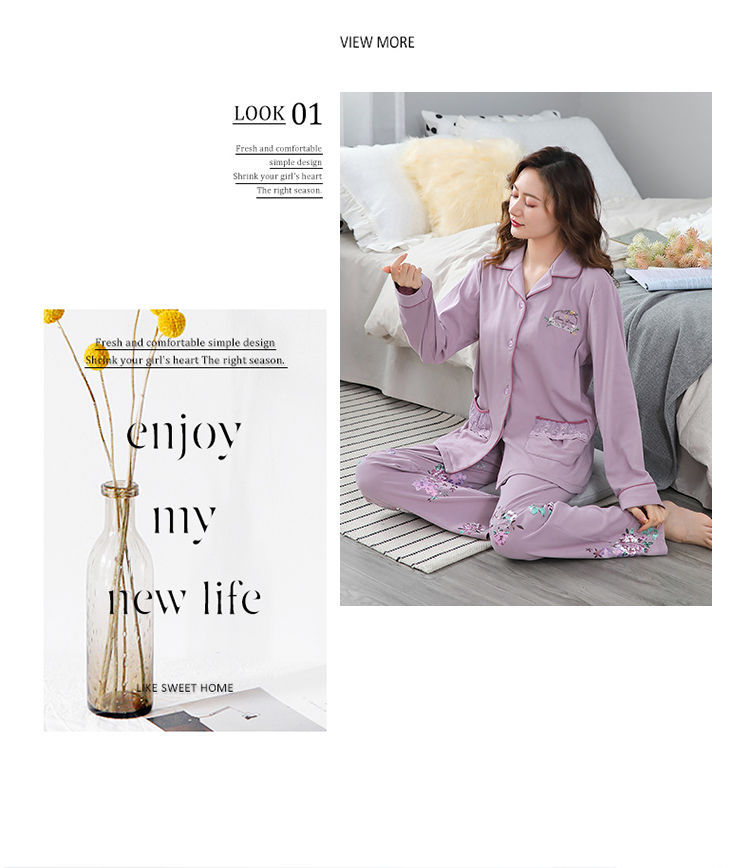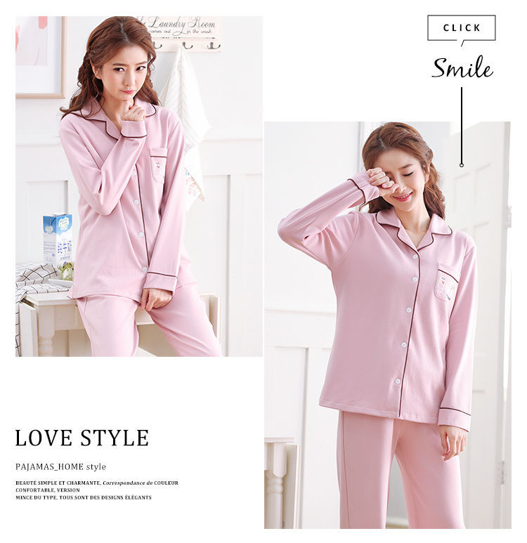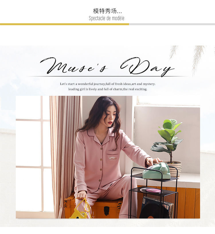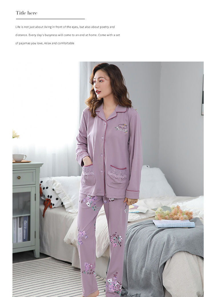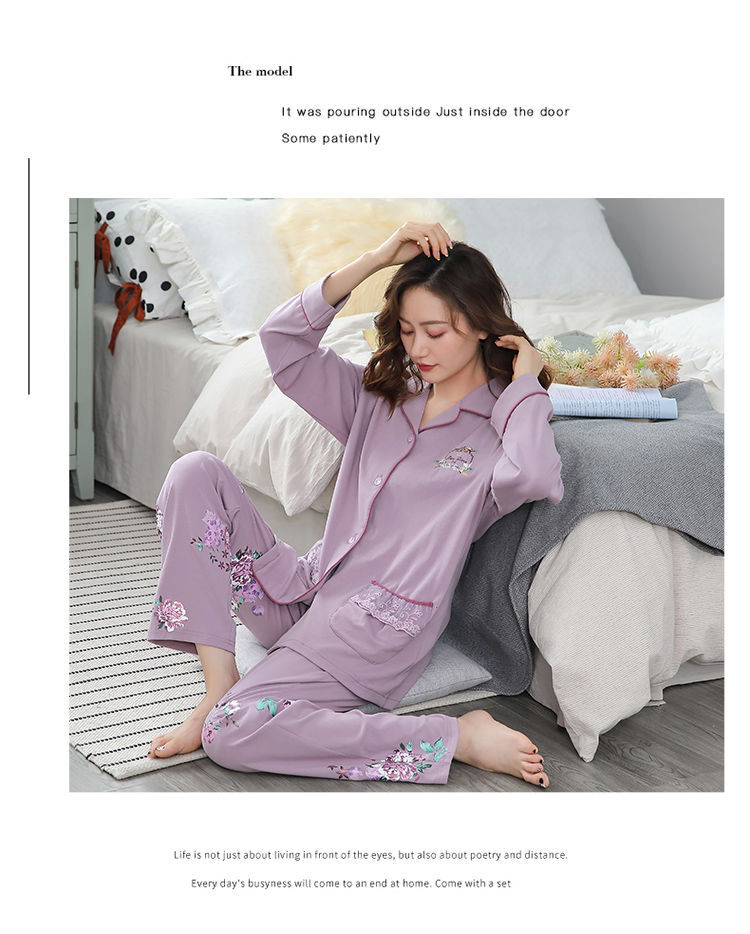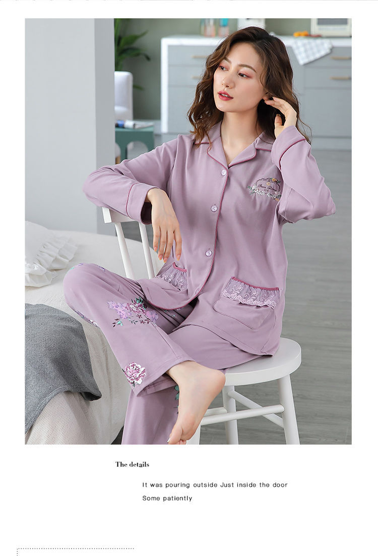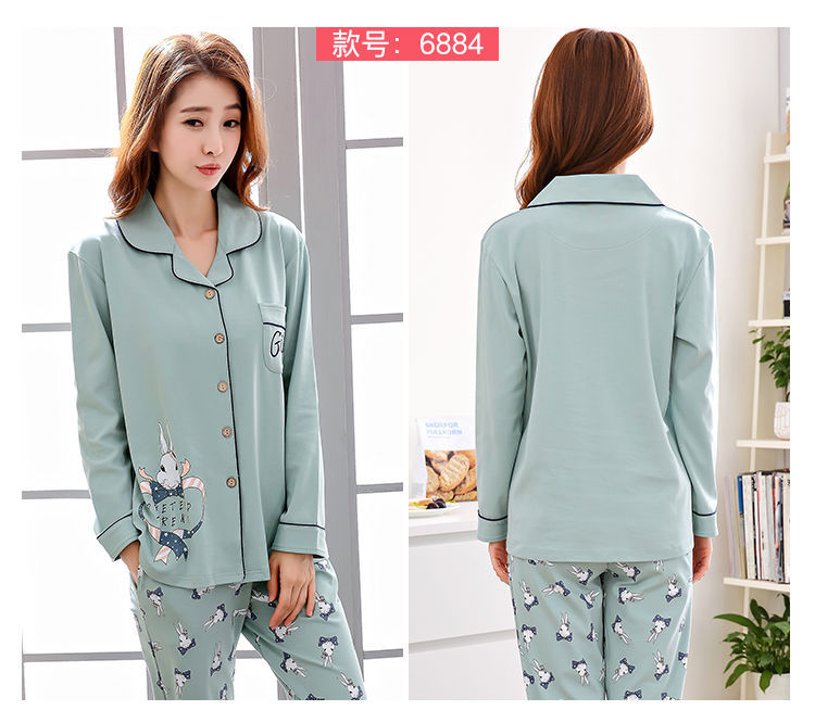 Pijamas mujer primavera y otoño 100% algodón de manga larga cardigan otoño algodón casual prendas de vestir exteriores ropa de hogar otoño e invierno dos piezas