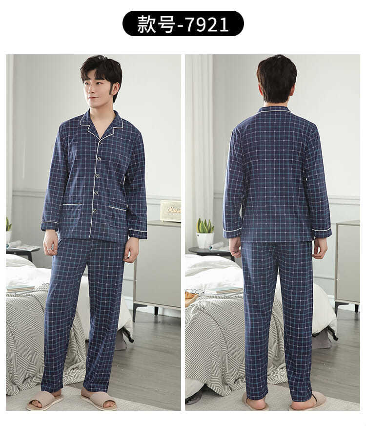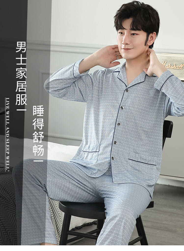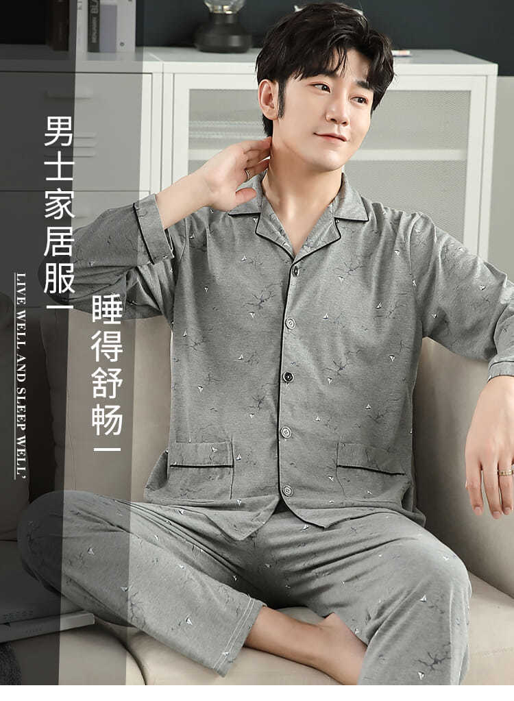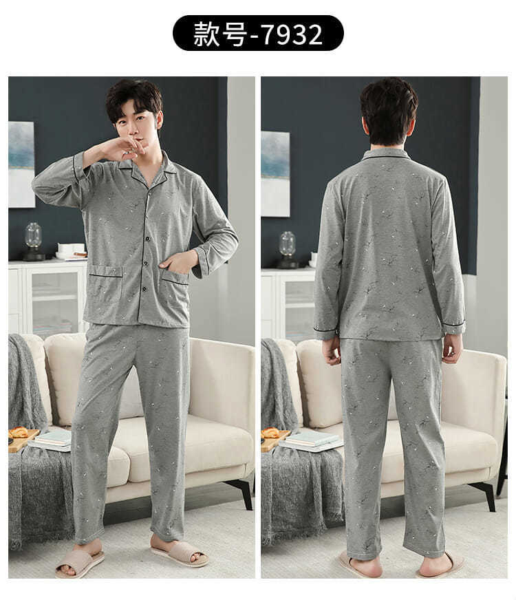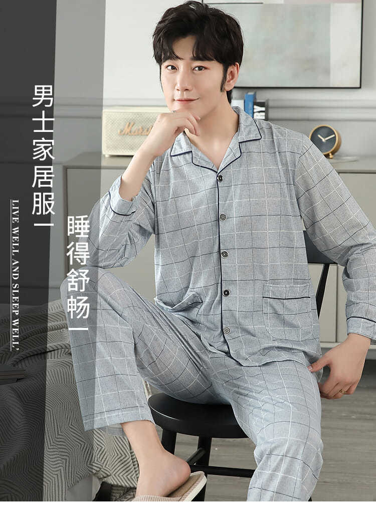 Estilo coreano de primavera y otoño cardigan hombres 100% pijamas de algodón de manga larga de otoño e invierno de algodón Delgado de los hombres ropa para el hogar
