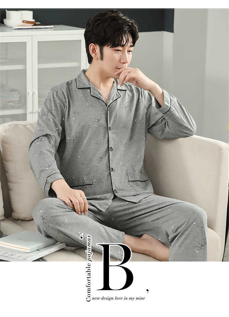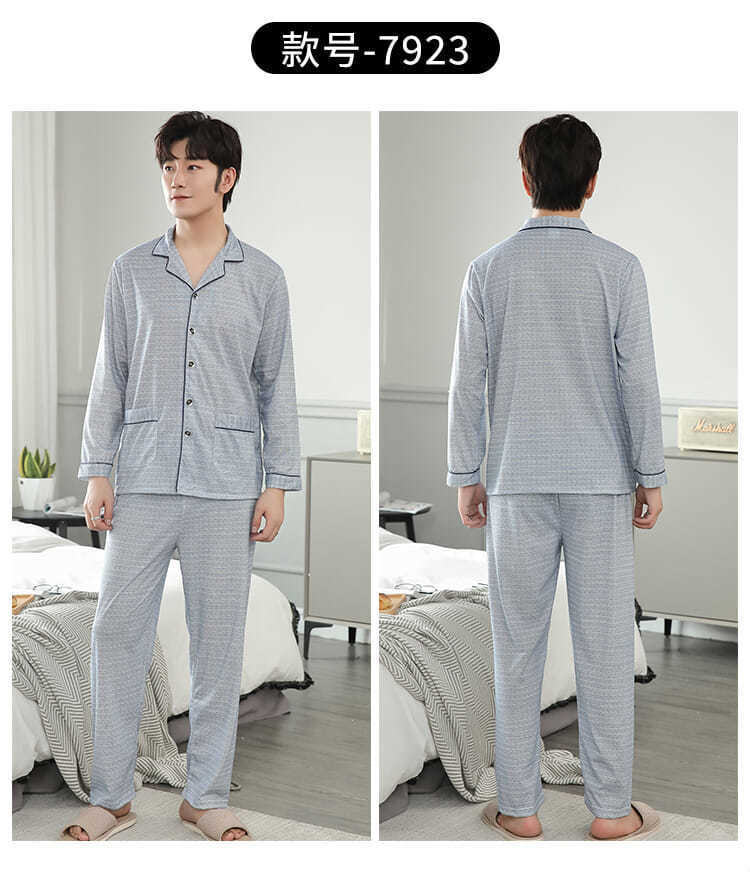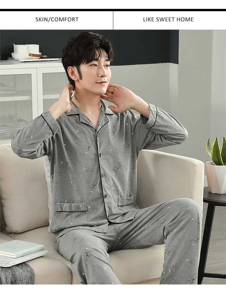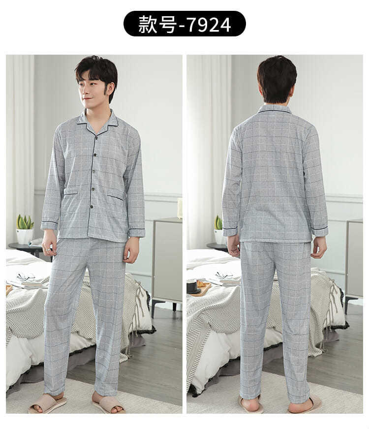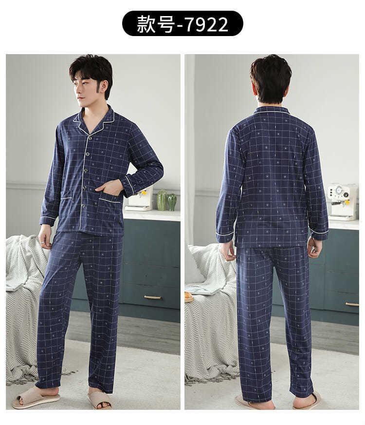 Estilo coreano de primavera y otoño cardigan hombres 100% pijamas de algodón de manga larga de otoño e invierno de algodón Delgado de los hombres ropa para el hogar