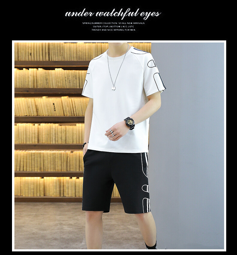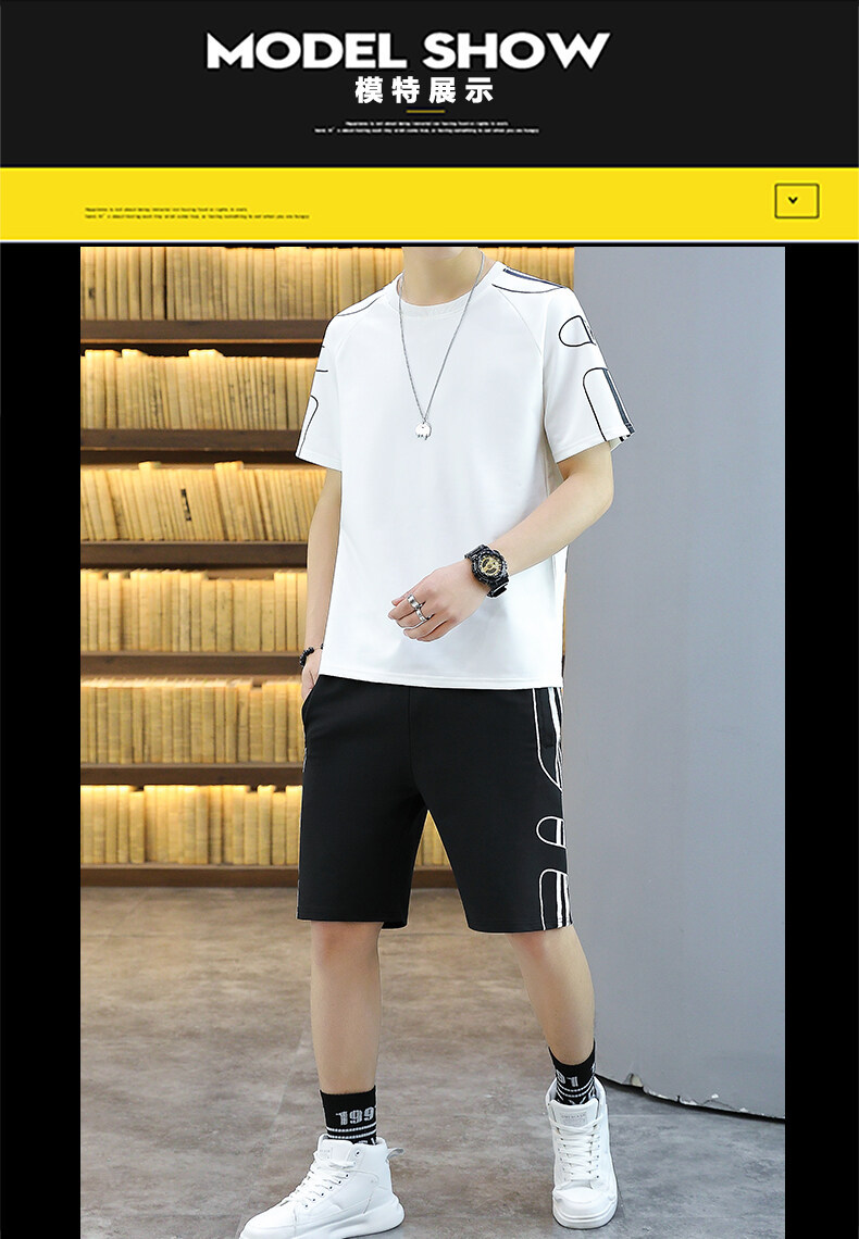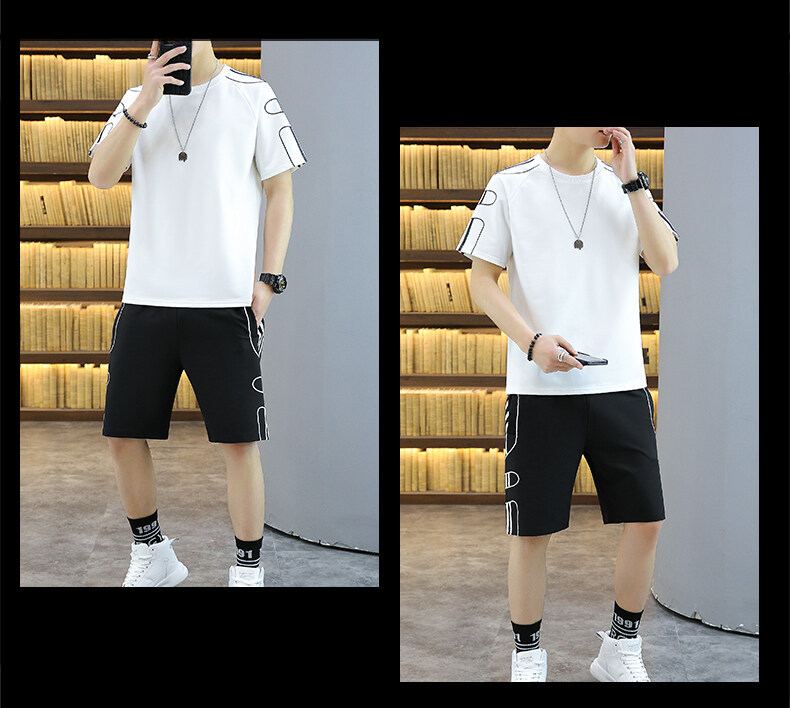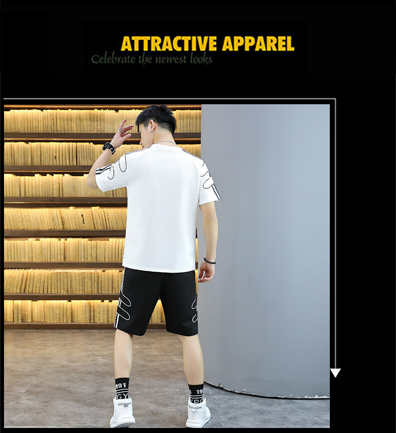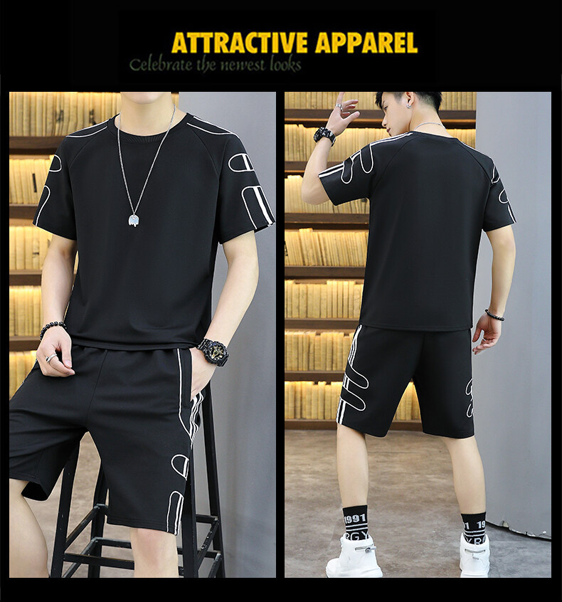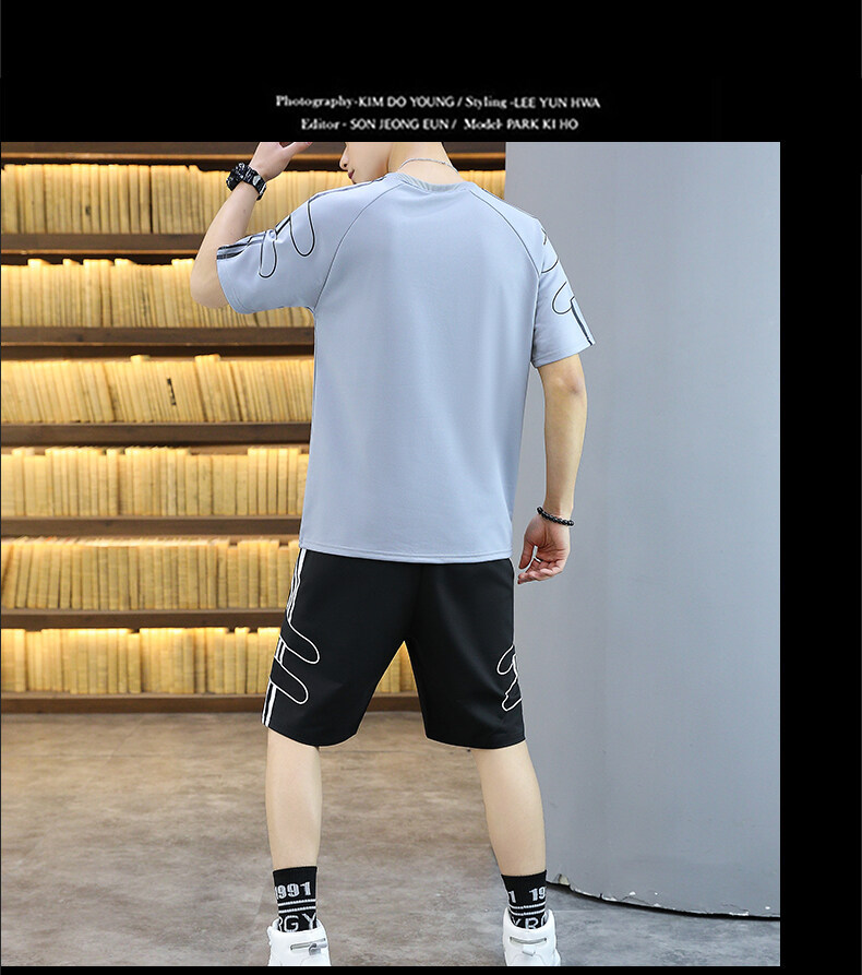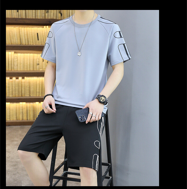 Pantalones cortos traje deportivo verano de los hombres Nueva suelta casual de dos piezas transpirable hielo de seda de manga corta Camiseta de cinco puntos Pantalones