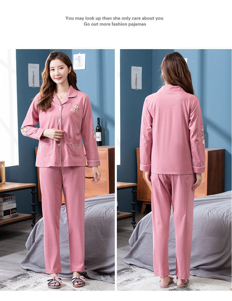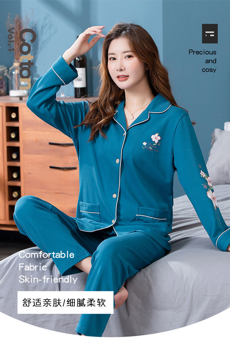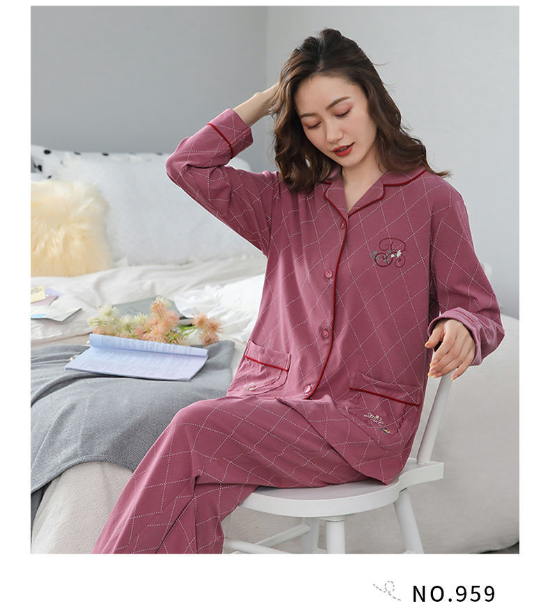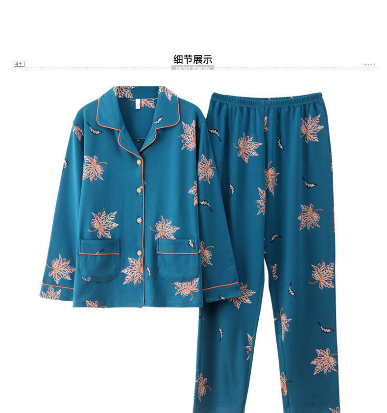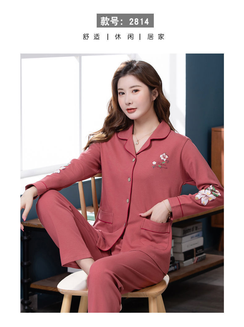 Pijamas de algodón para mujer Primavera y otoño Chaqueta de manga larga para mamás de mediana edad Traje de mediana edad y ancianos más tamaño ropa para el hogar invierno