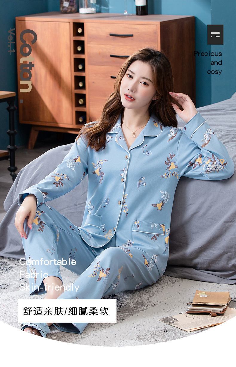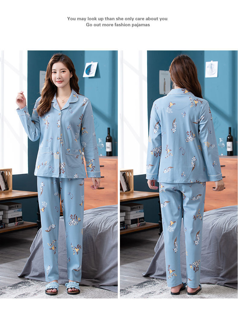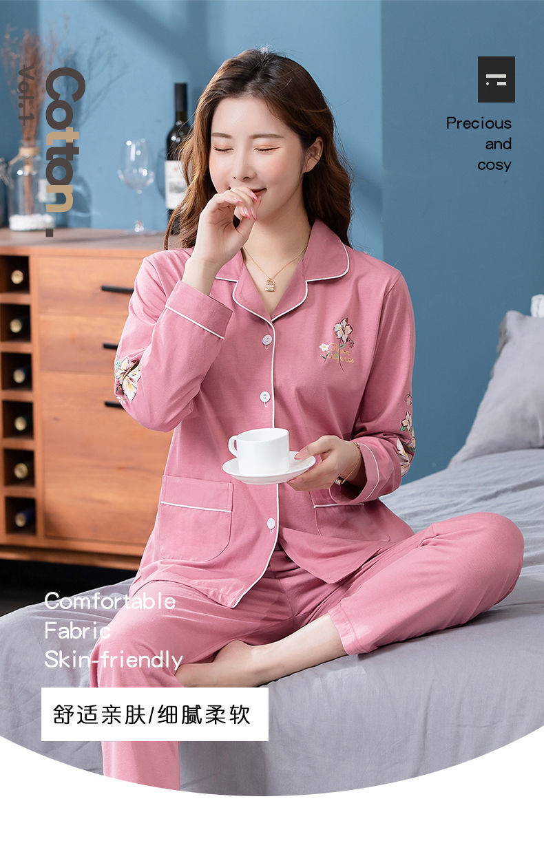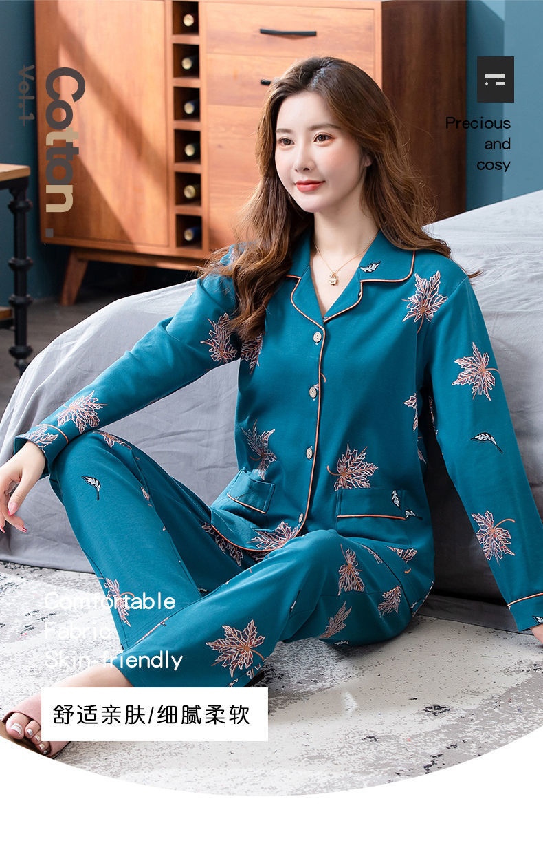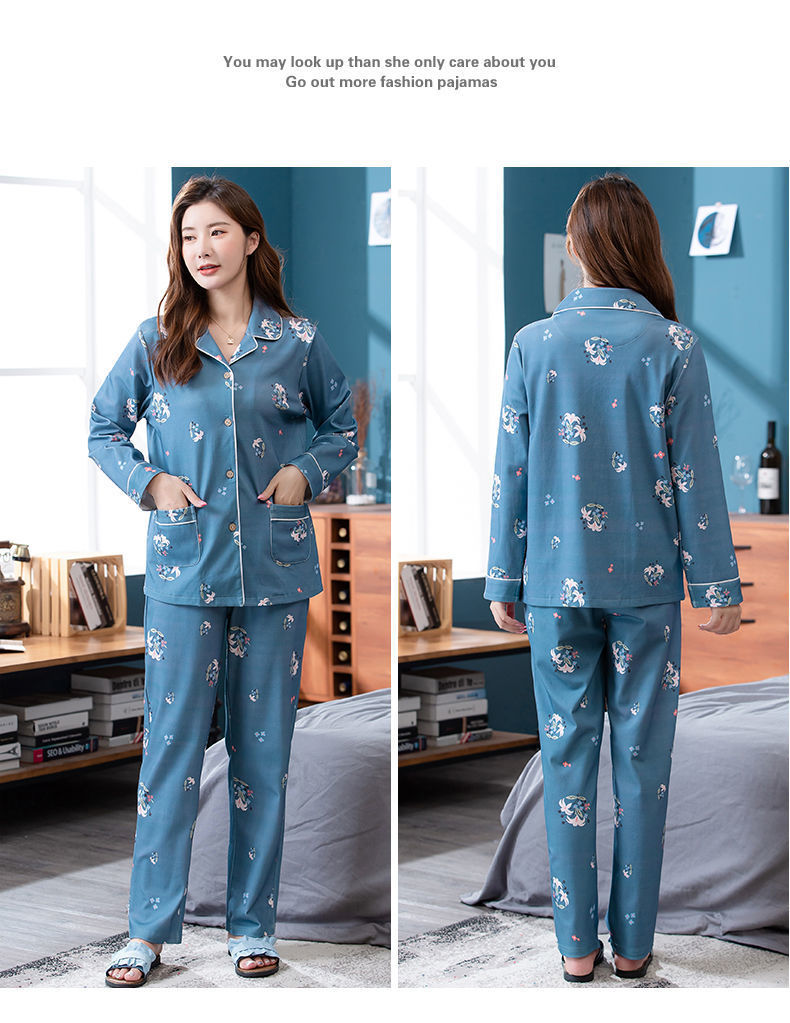 Pijamas de algodón para mujer Primavera y otoño Chaqueta de manga larga para mamás de mediana edad Traje de mediana edad y ancianos más tamaño ropa para el hogar invierno