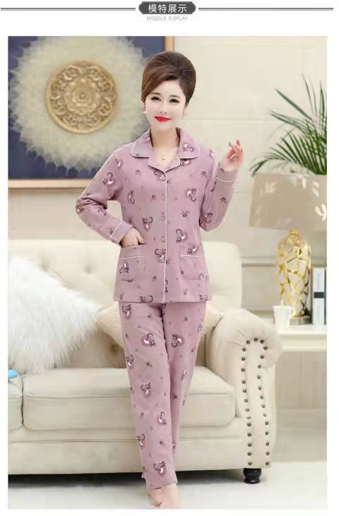 Pijamas de algodón para mujer primavera y otoño Rebeca de algodón suelta Otoño e Invierno solapa pequeña traje de desgaste casual para el hogar