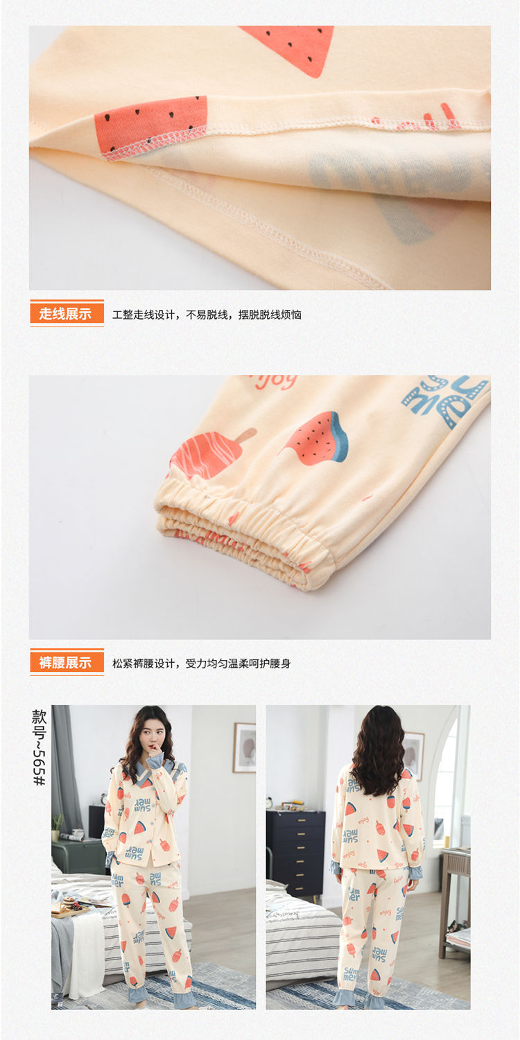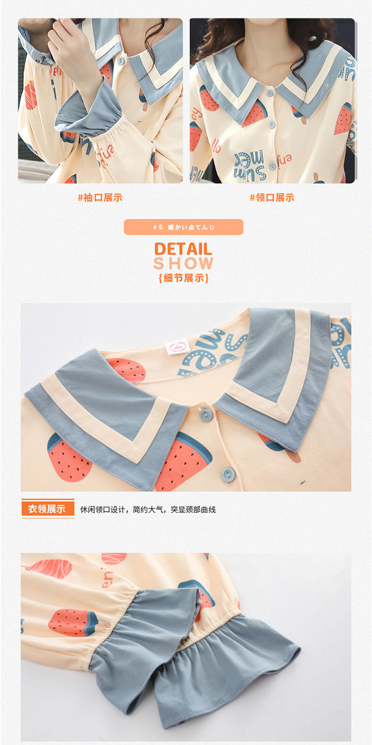 Pijama de estudiante de verano de las mujeres de algodón fino de dos piezas de manga larga más el tamaño de dibujos animados desgaste del hogar de las mujeres de primavera y otoño
