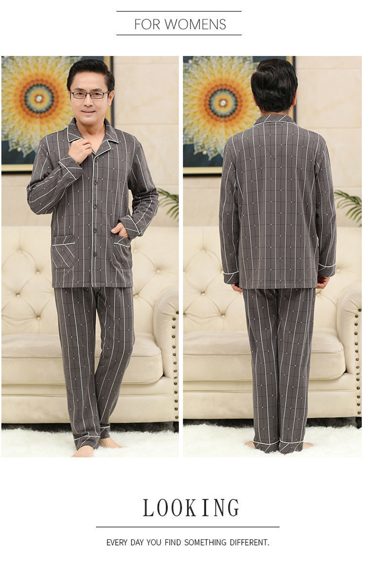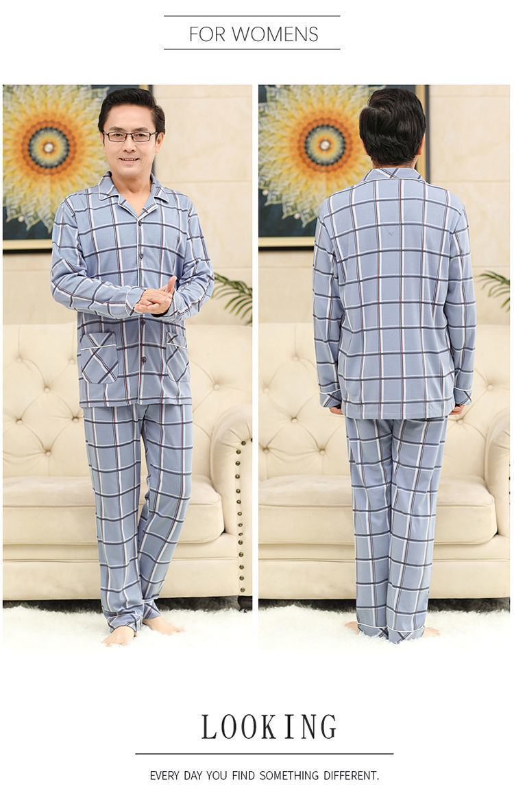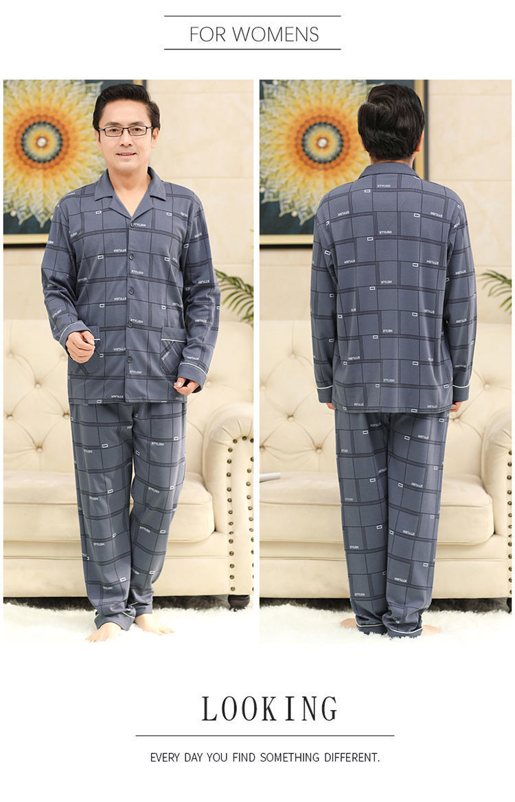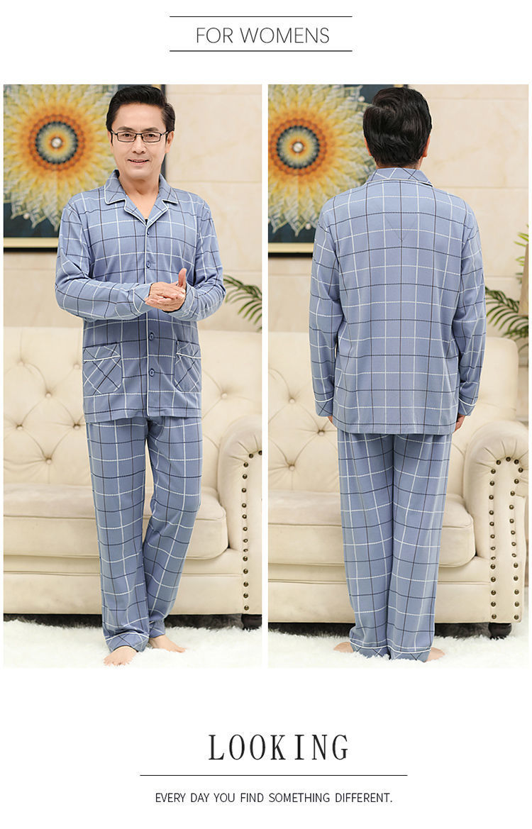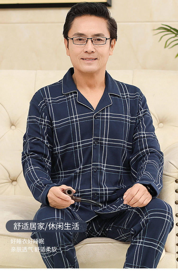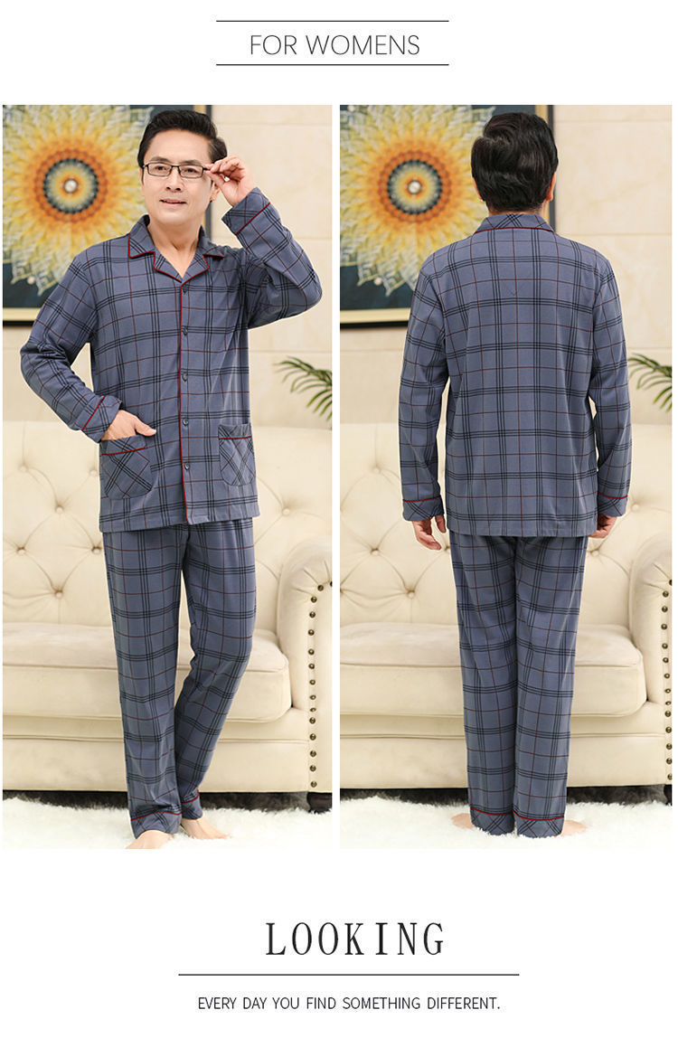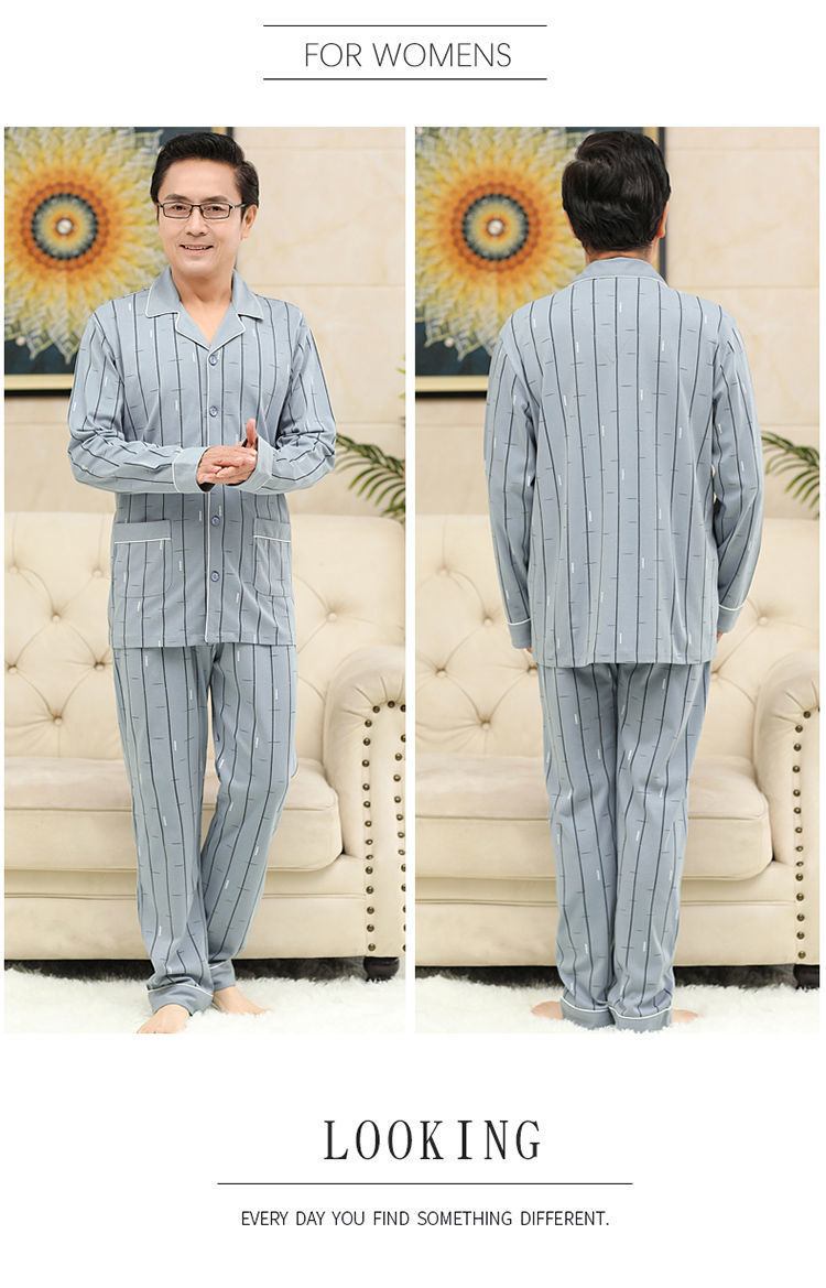 Pijamas de mediana edad y ancianos para hombres de primavera y verano 100% algodón de manga larga más tamaño cardigan Delgado traje de homewear
