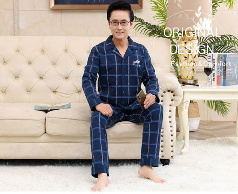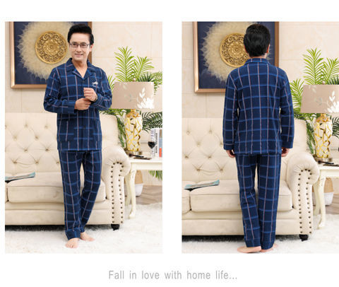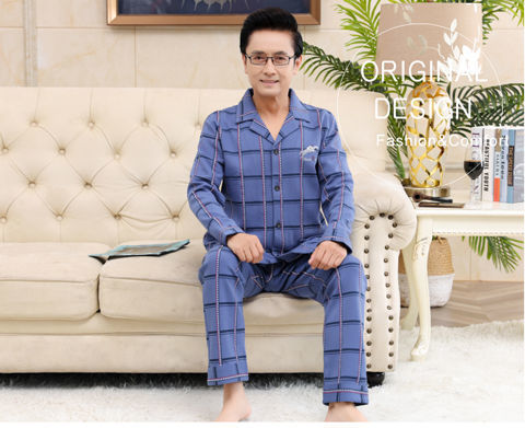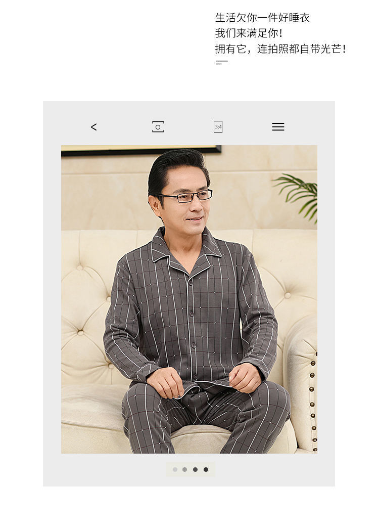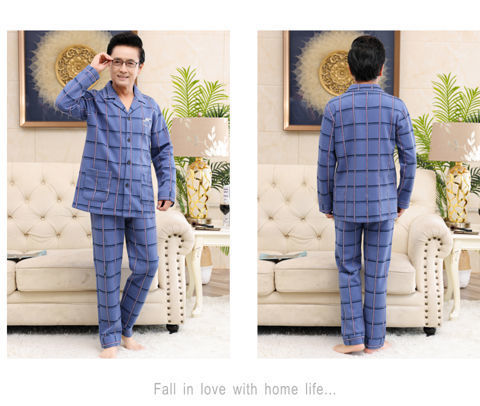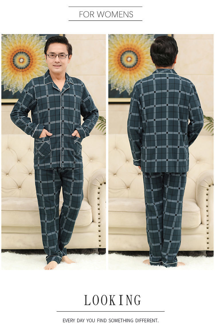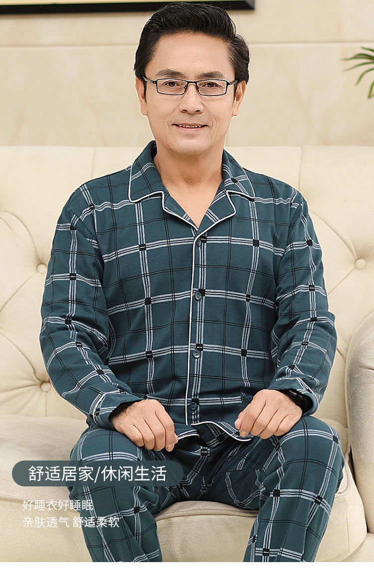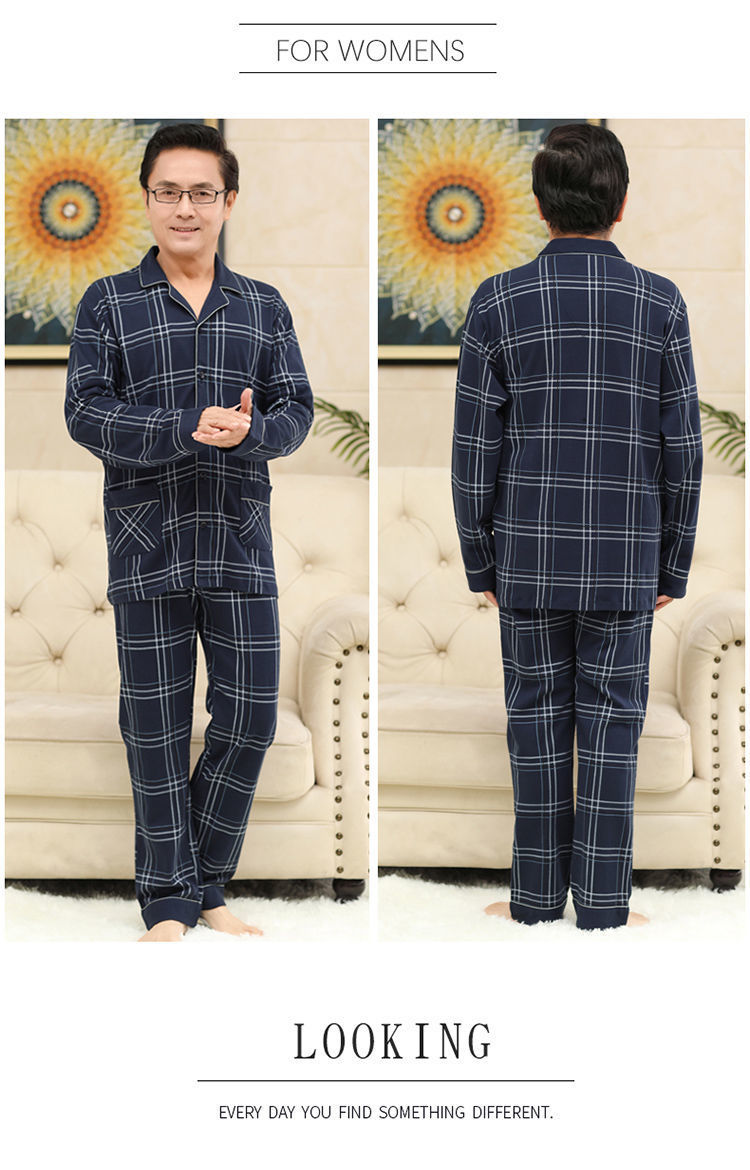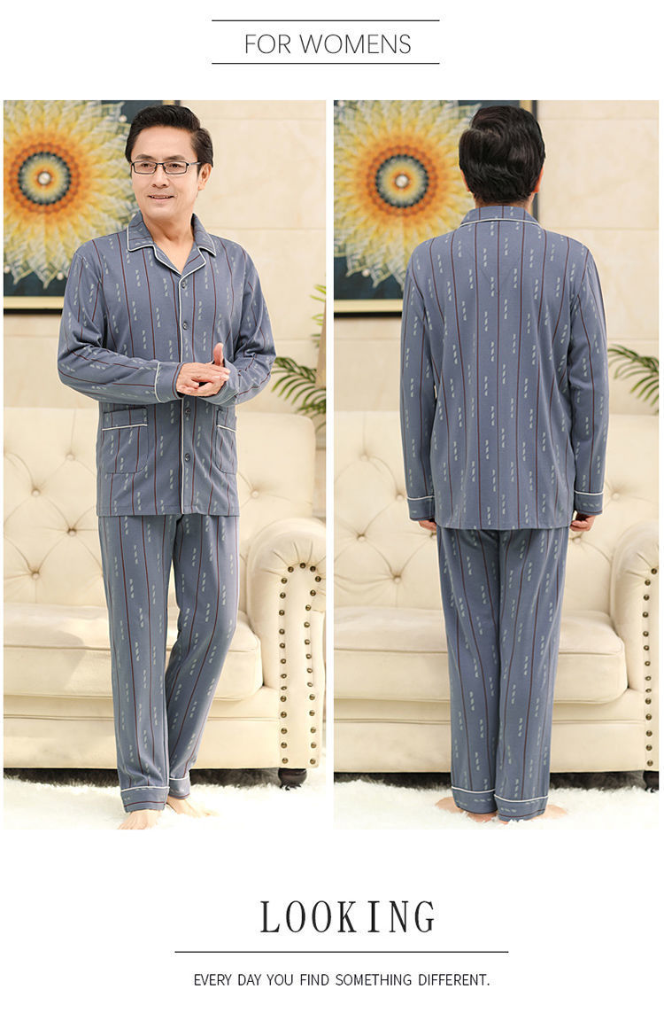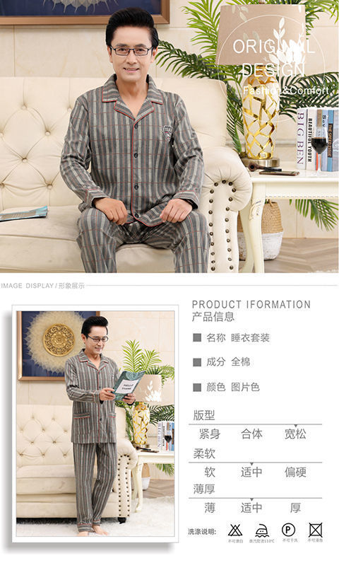 Pijamas de mediana edad y ancianos para hombres de primavera y verano 100% algodón de manga larga más tamaño cardigan Delgado traje de homewear