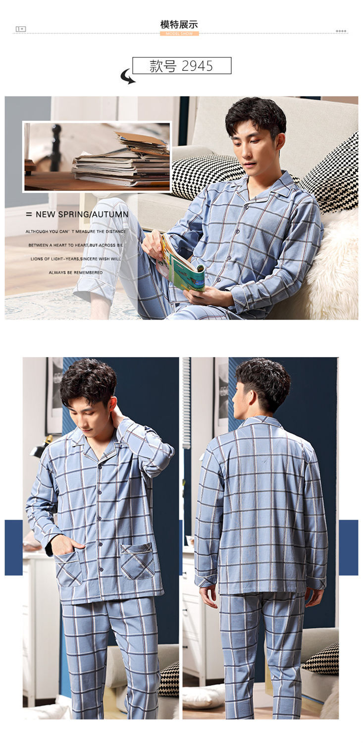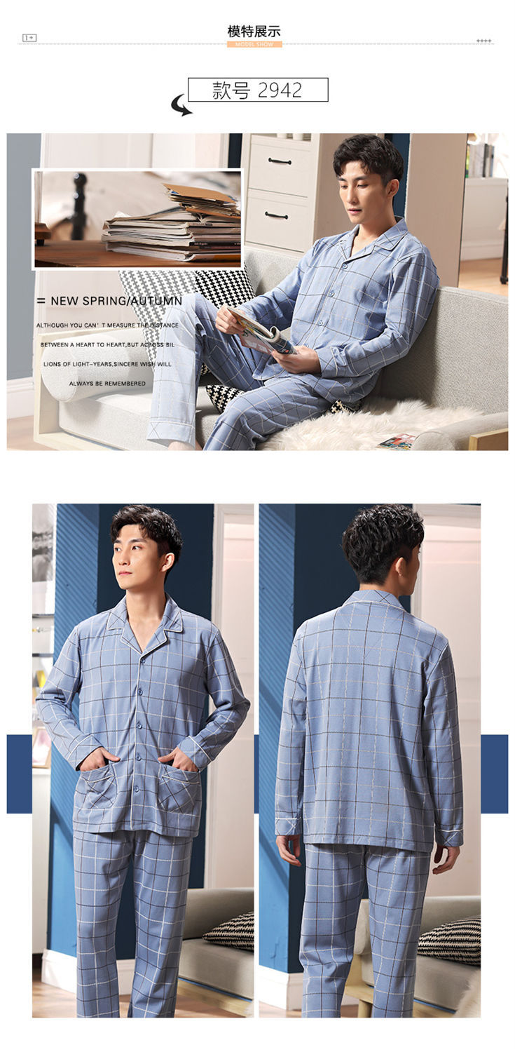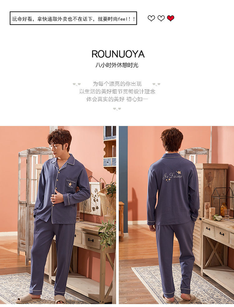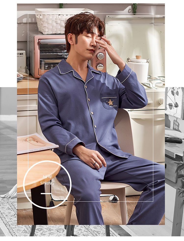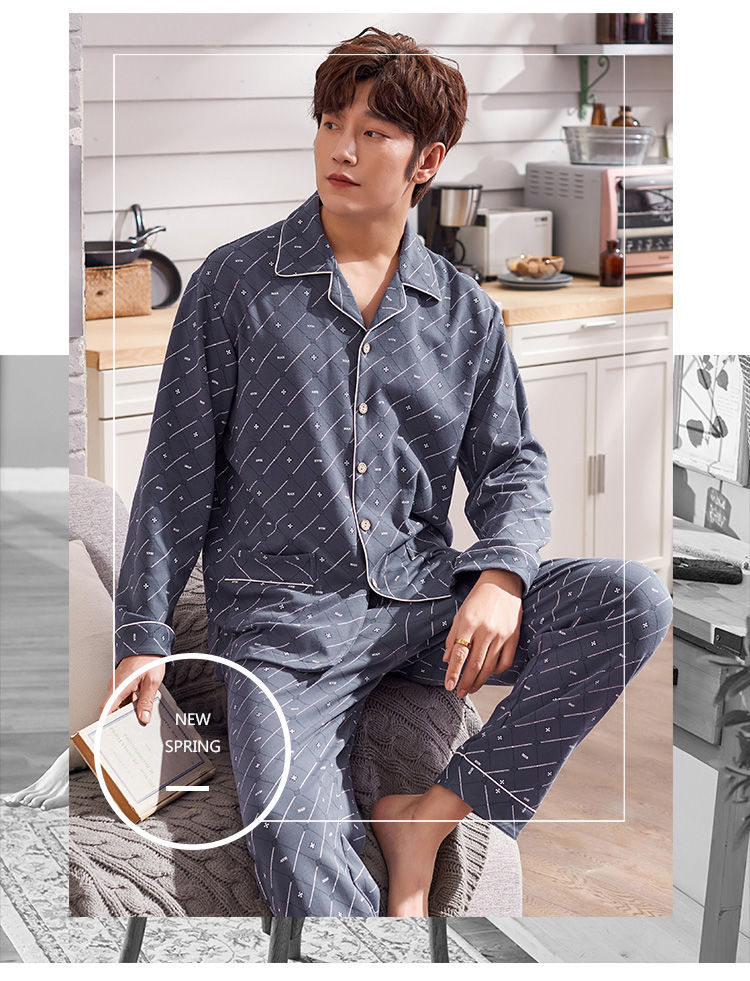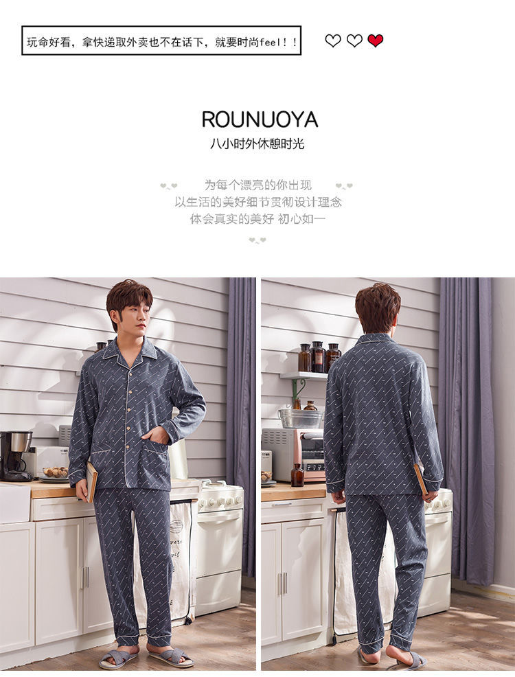Pijamas de los hombres de primavera y otoño 100% algodón de manga larga de otoño e invierno cardigan juvenil se puede usar fuera de ropa casual para el hogar