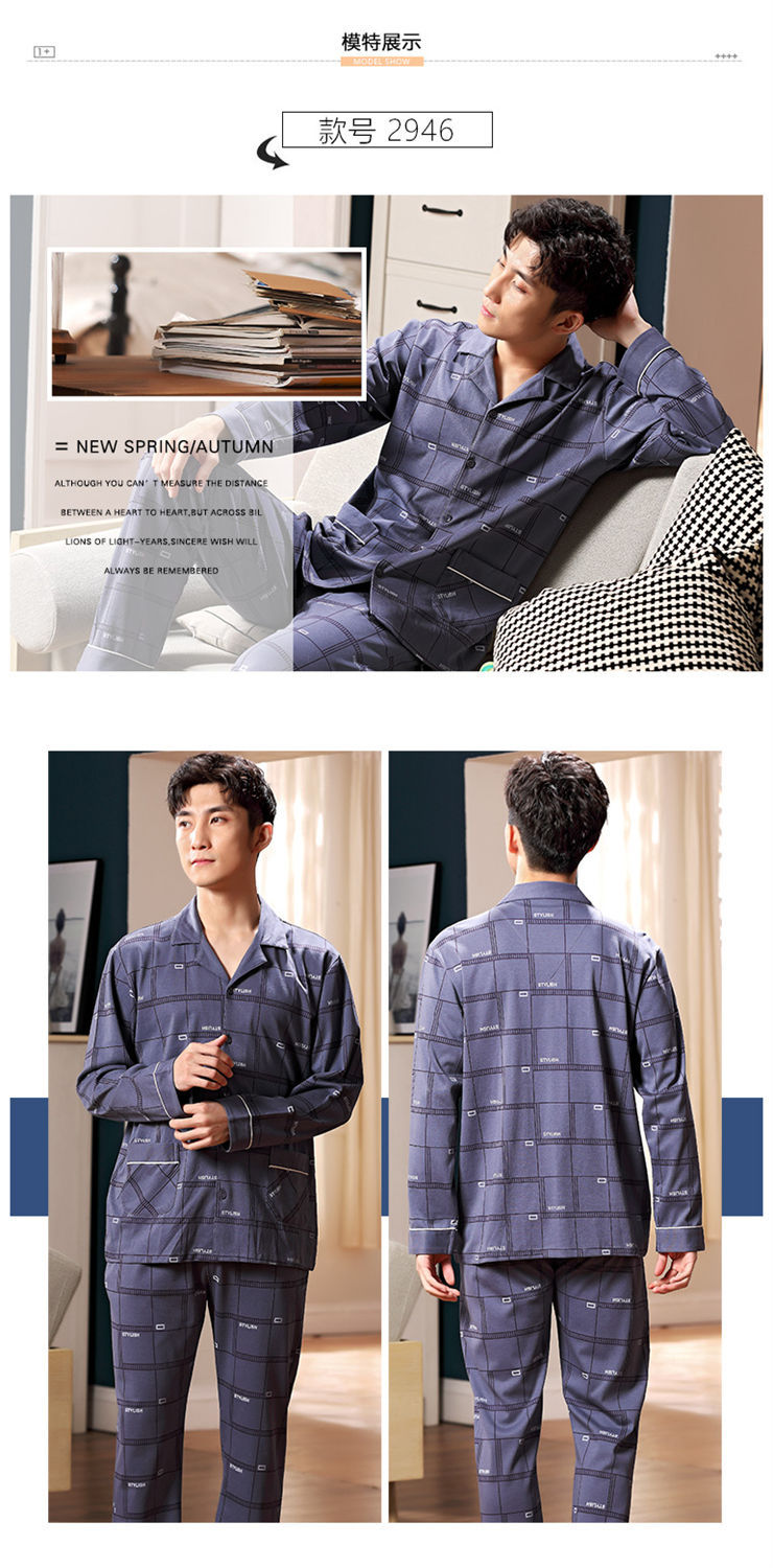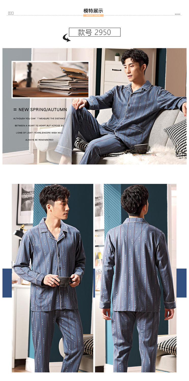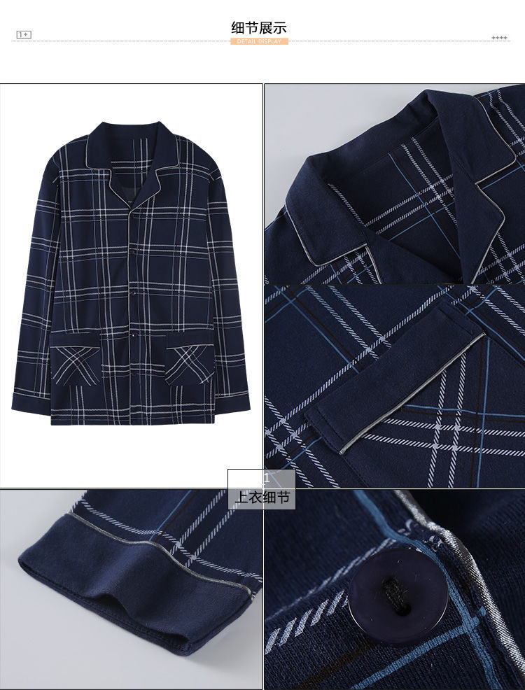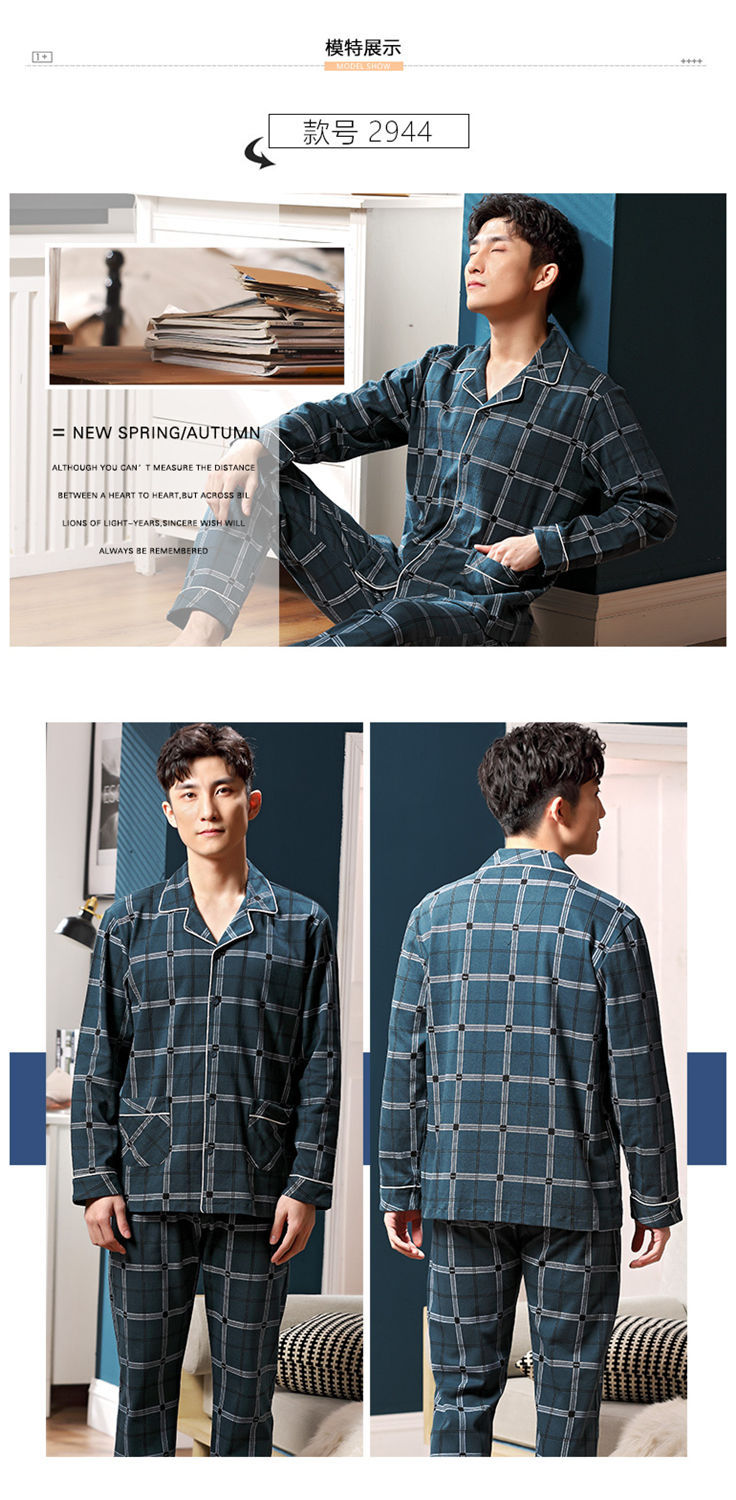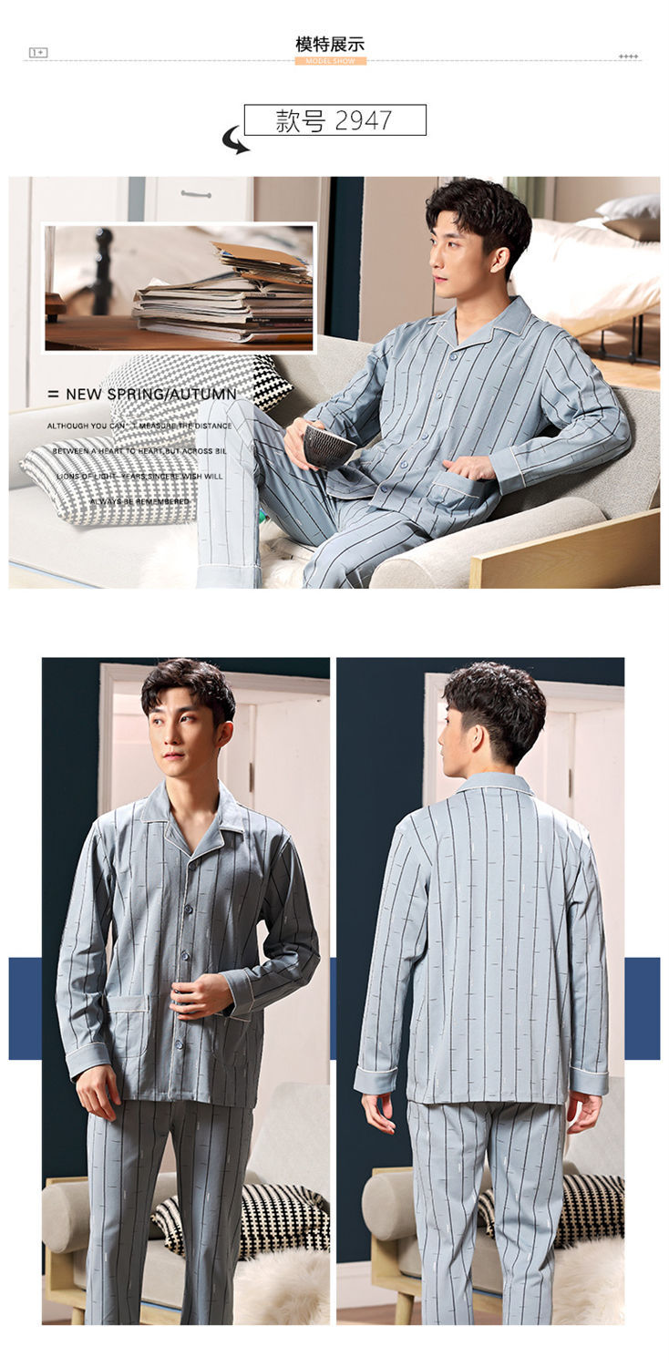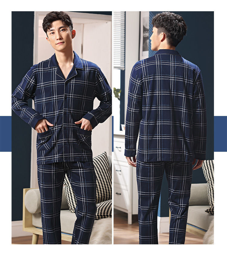Pijamas de los hombres de primavera y otoño 100% algodón de manga larga de otoño e invierno cardigan juvenil se puede usar fuera de ropa casual para el hogar