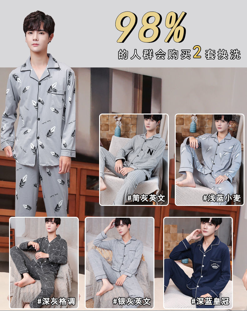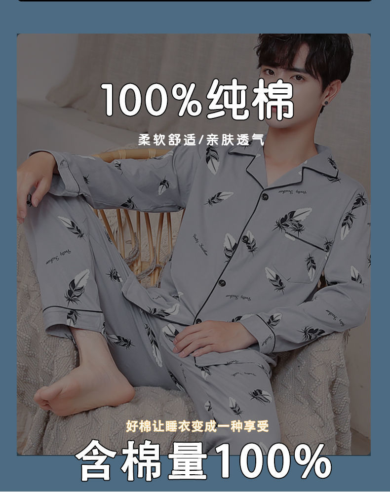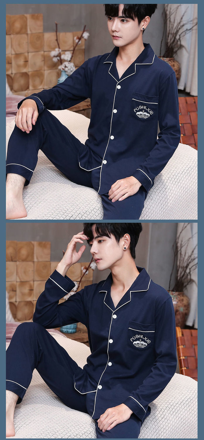 100% pijamas de algodón para hombres de manga larga de primavera, Otoño e Invierno para hombres ropa para el hogar de manga corta