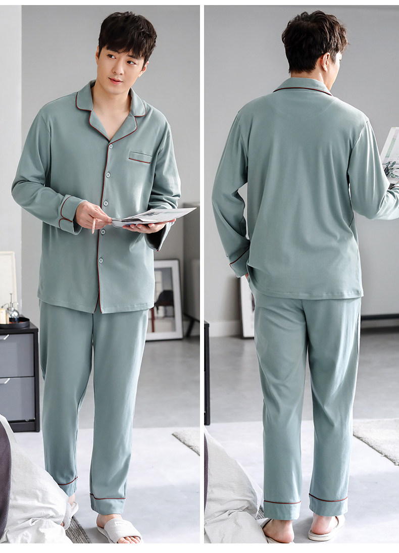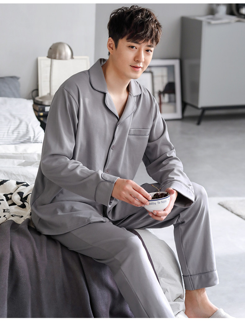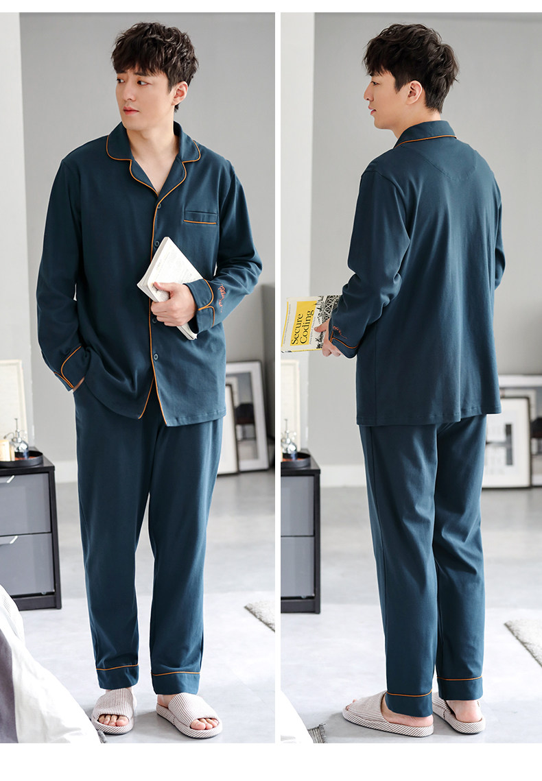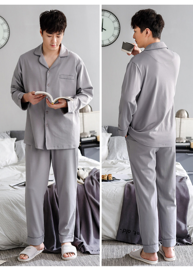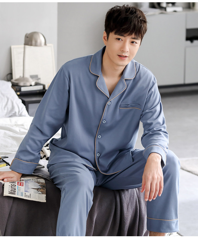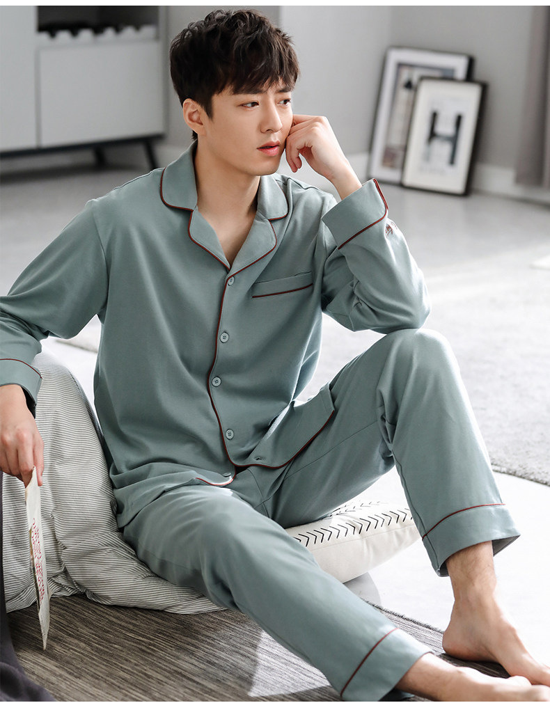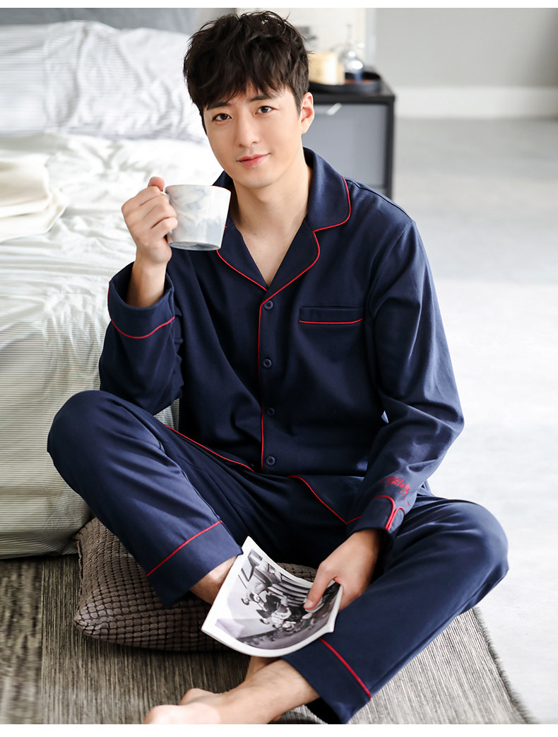 Pijamas de hombre Primavera y otoño Otoño 100% algodón de manga larga para el hogar traje de otoño e invierno