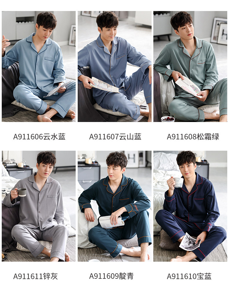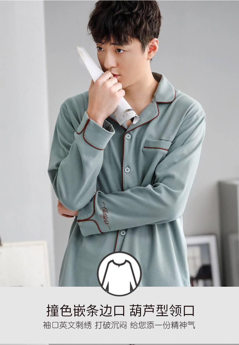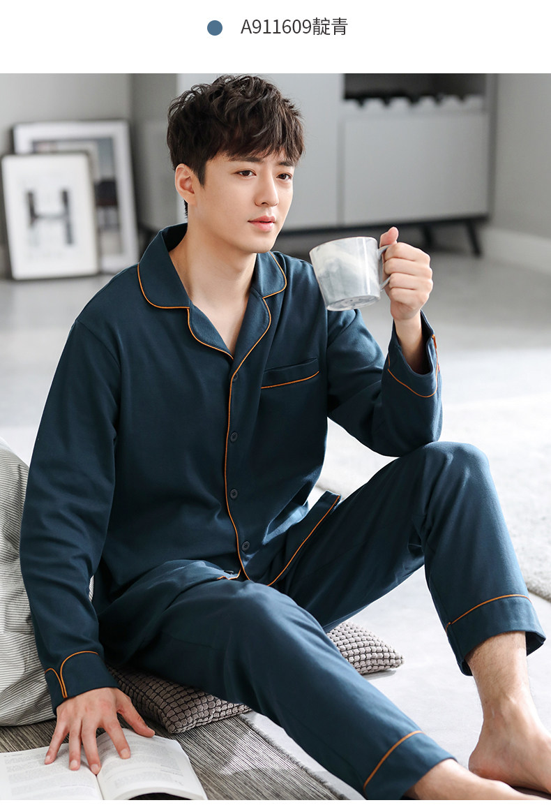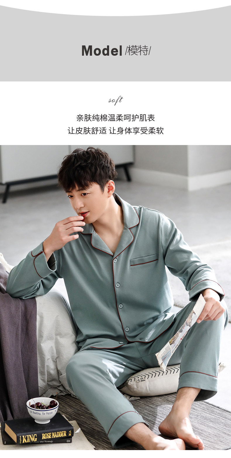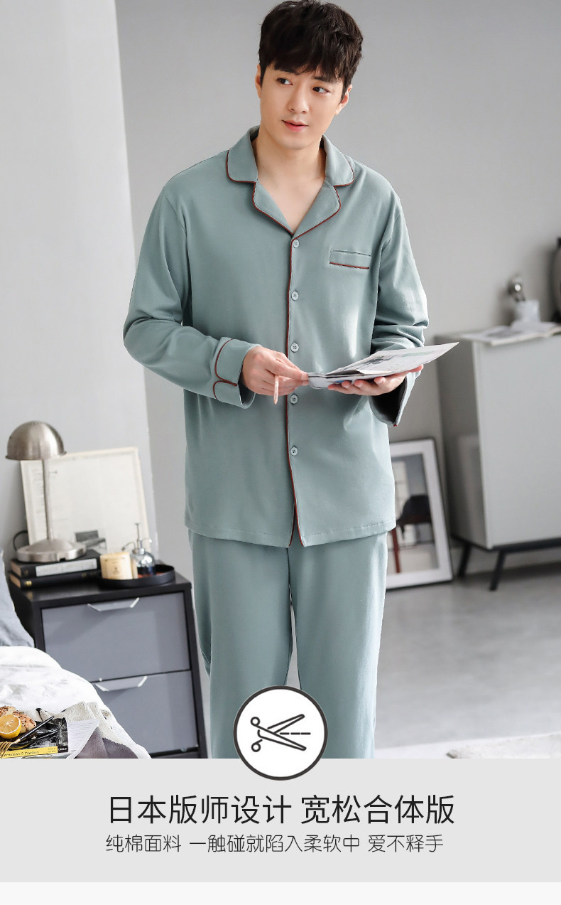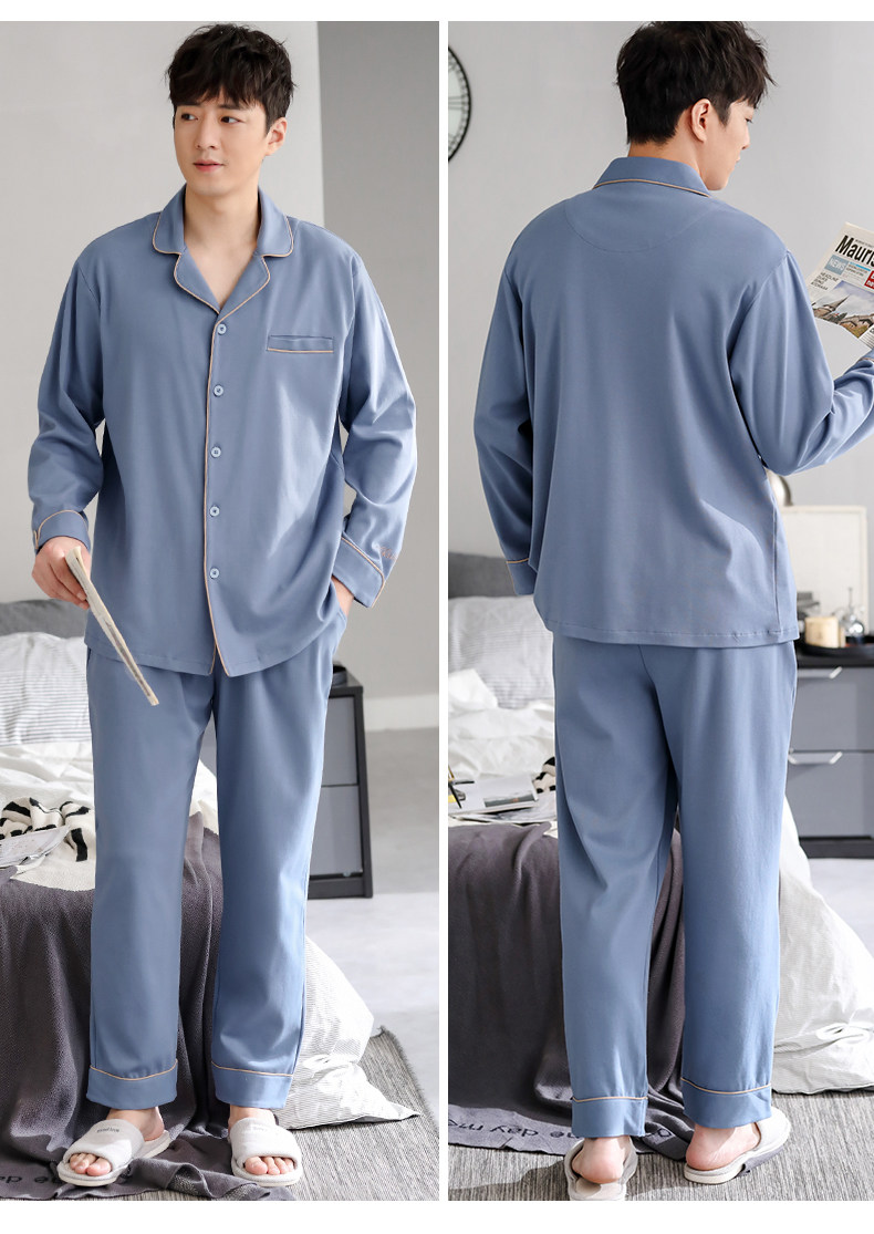 Pijamas de hombre Primavera y otoño Otoño 100% algodón de manga larga para el hogar traje de otoño e invierno