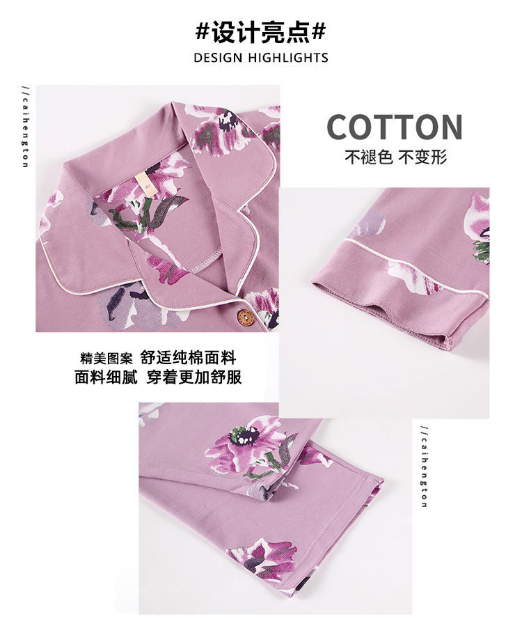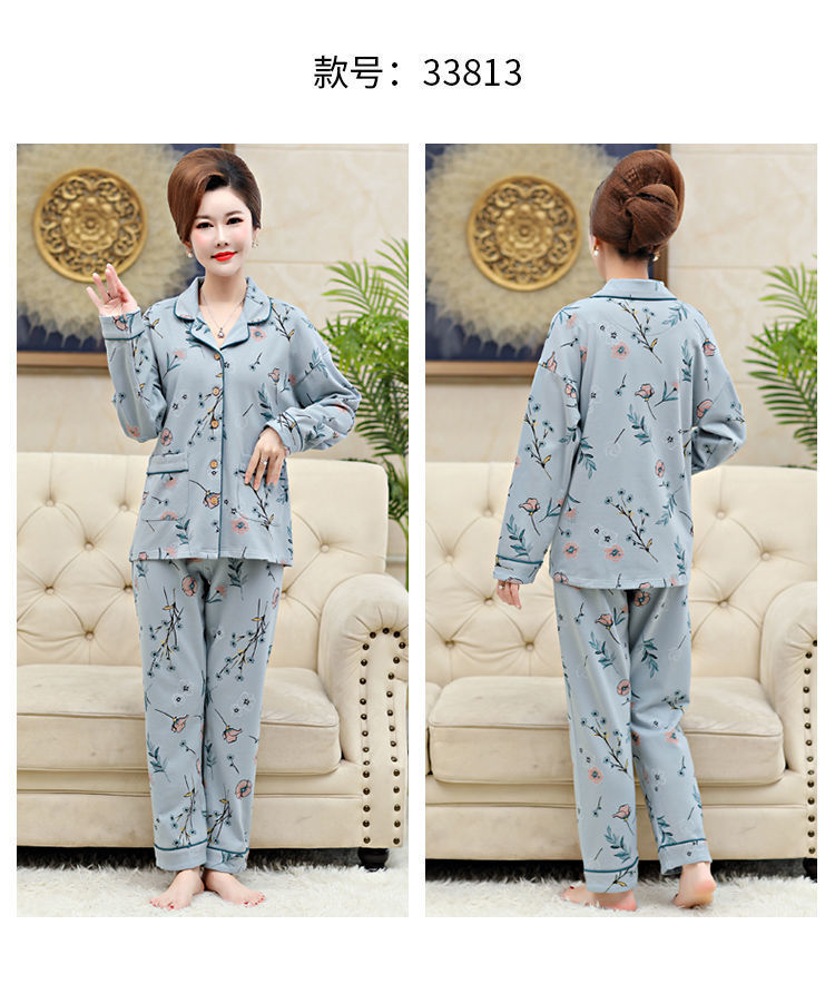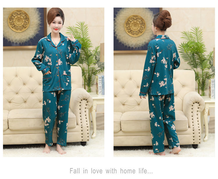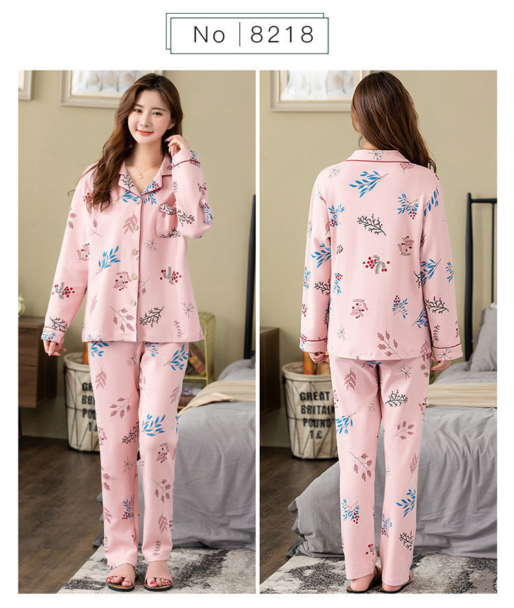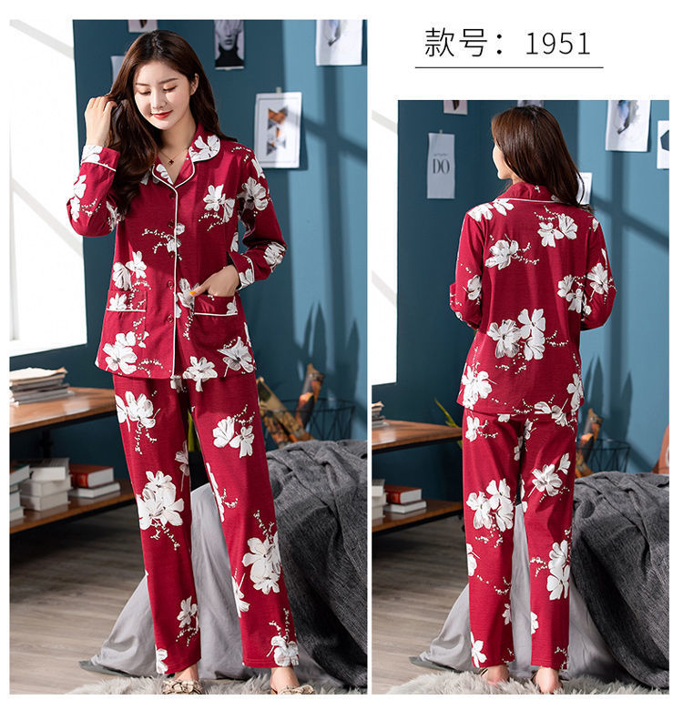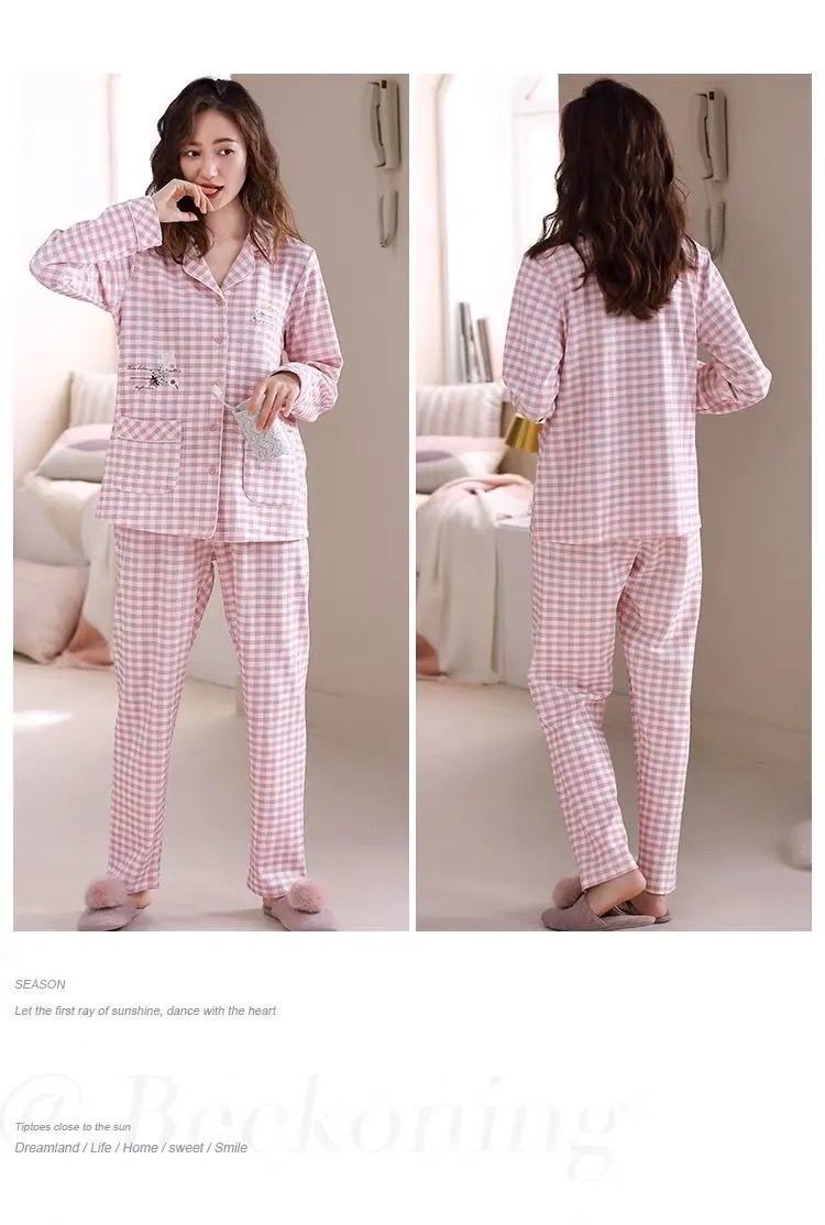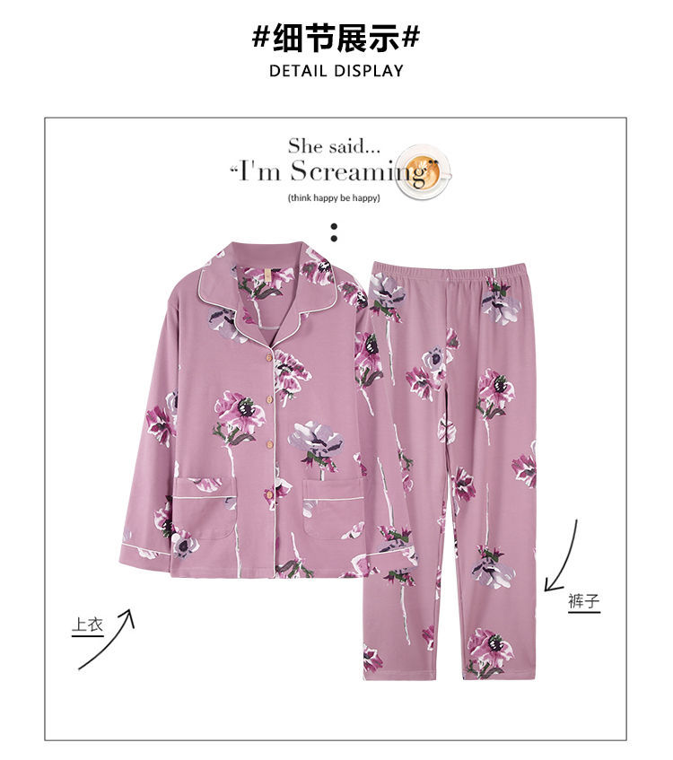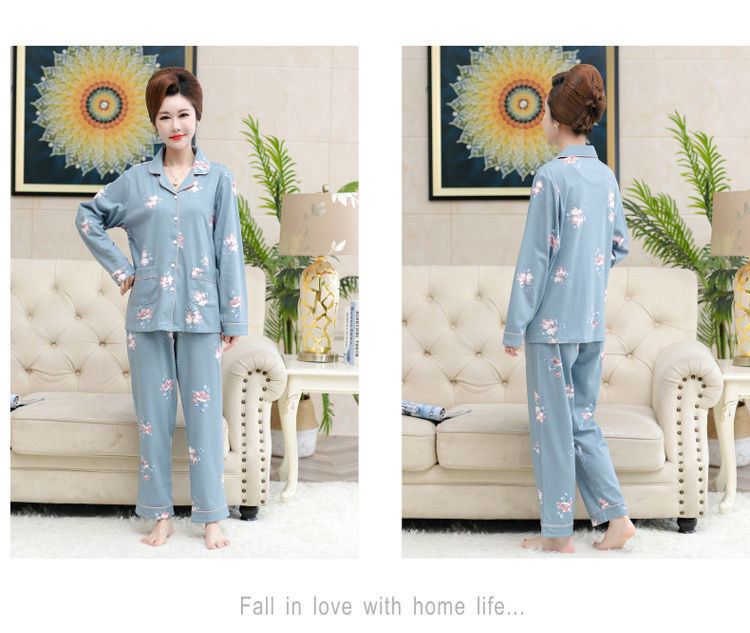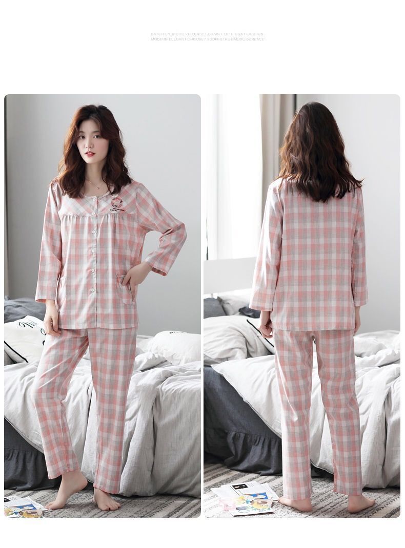 100% pijamas de algodón de manga larga de las mujeres más el tamaño de mediana edad estilo coreano cardigan desgaste del hogar traje de primavera y otoño