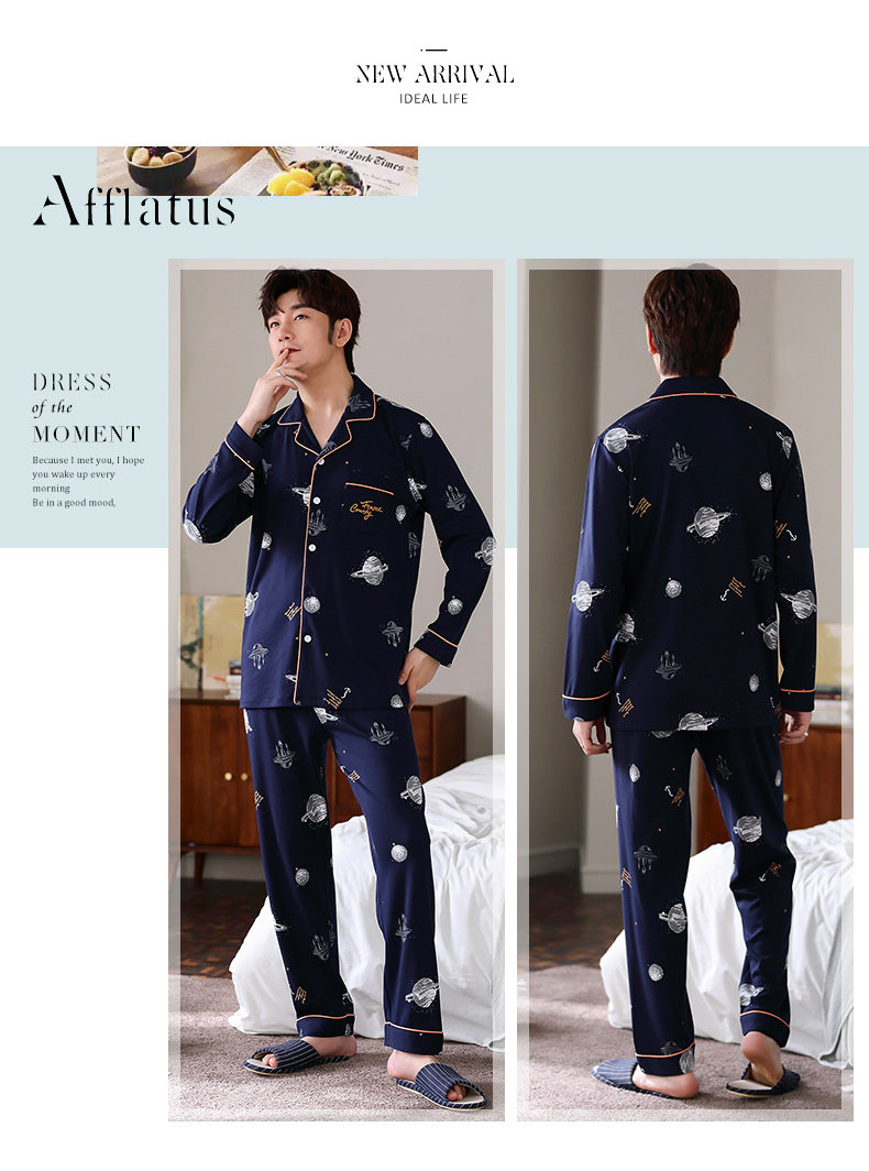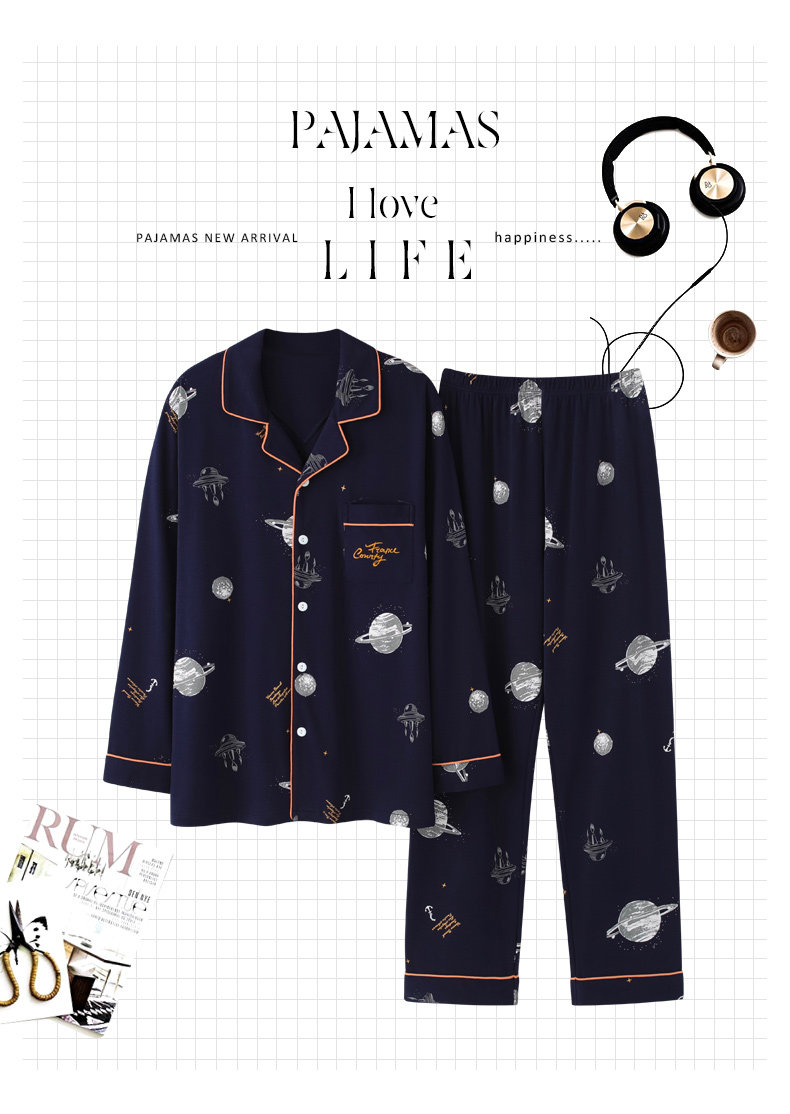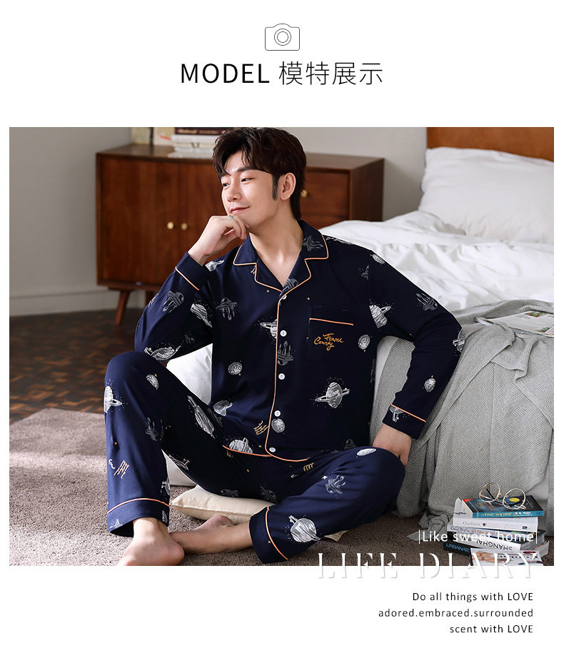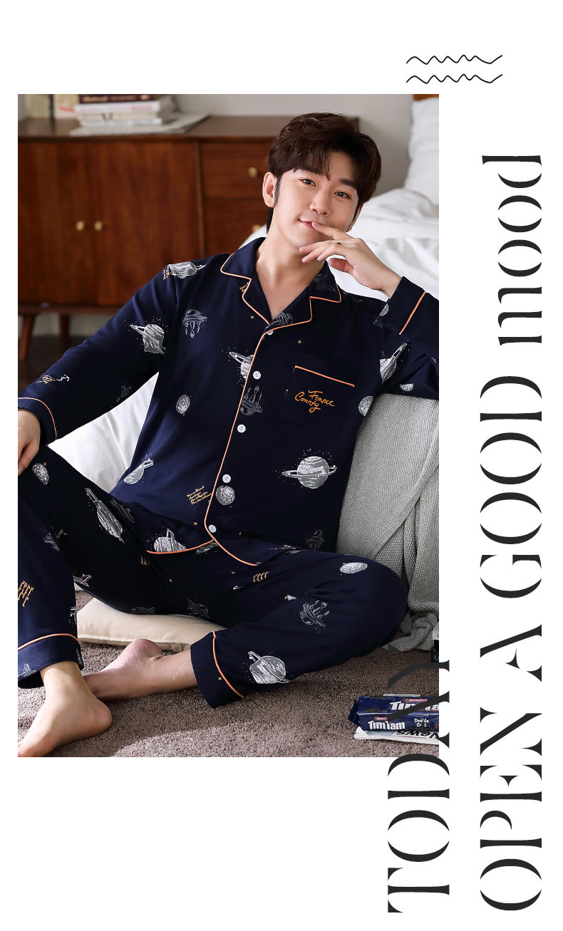Primavera y otoño 100% algodón de manga larga pijamas de los hombres pueden usar fuera de ocio desgaste del hogar de primavera y verano traje marea