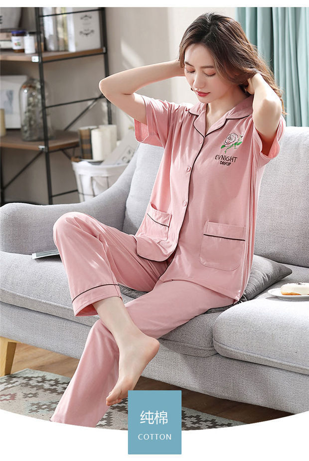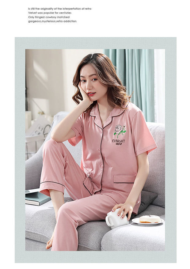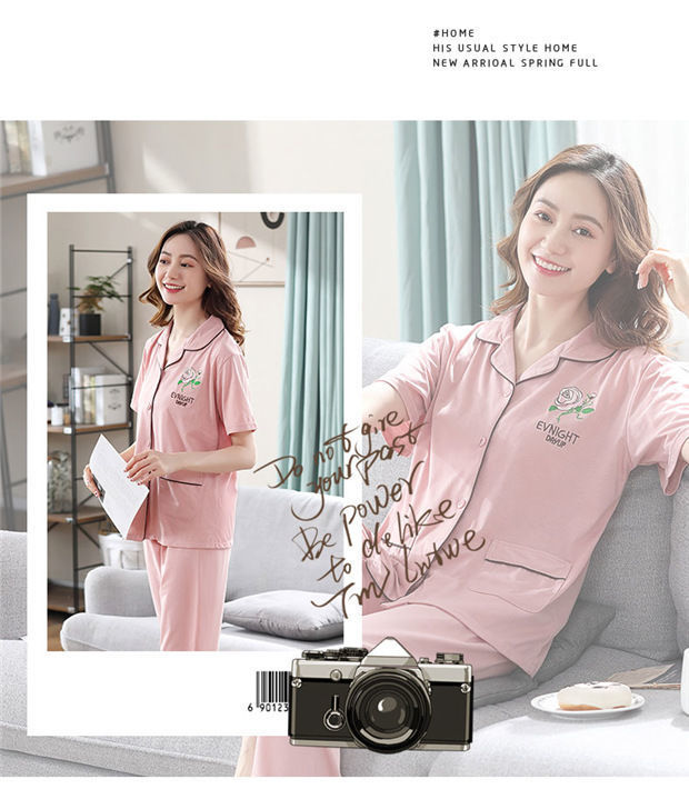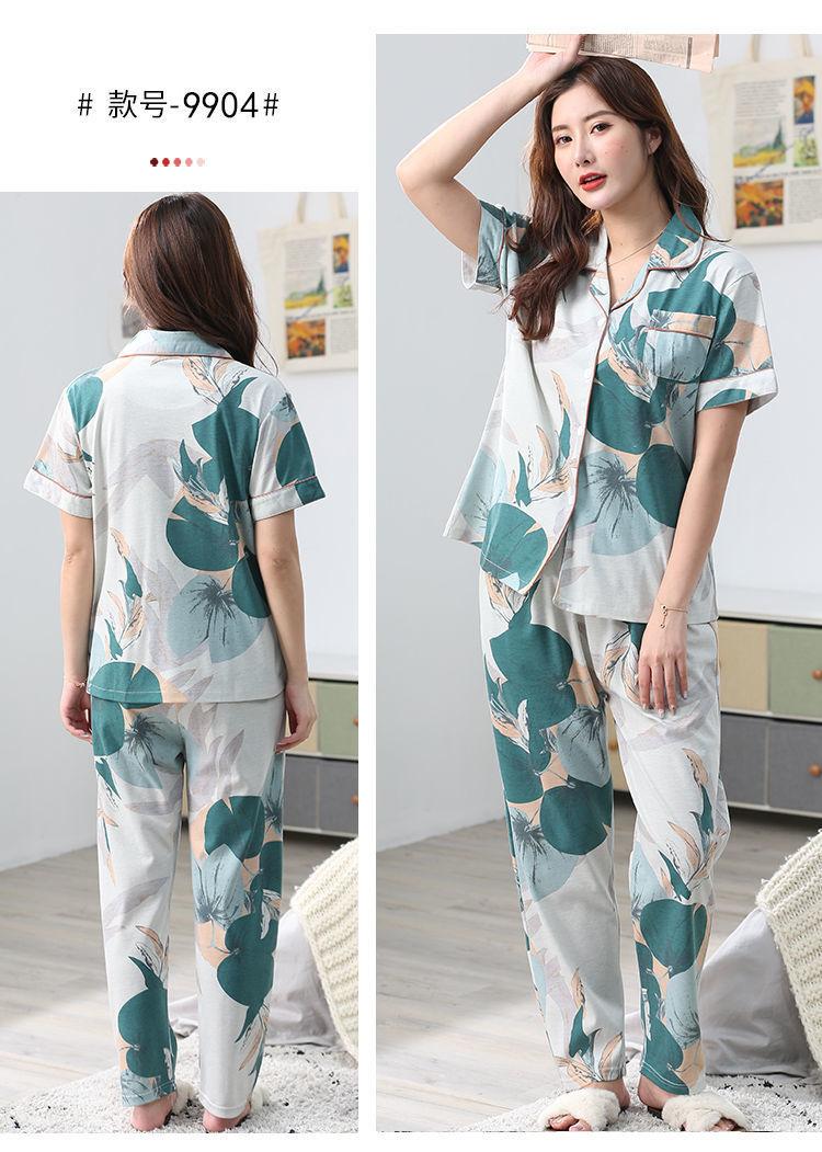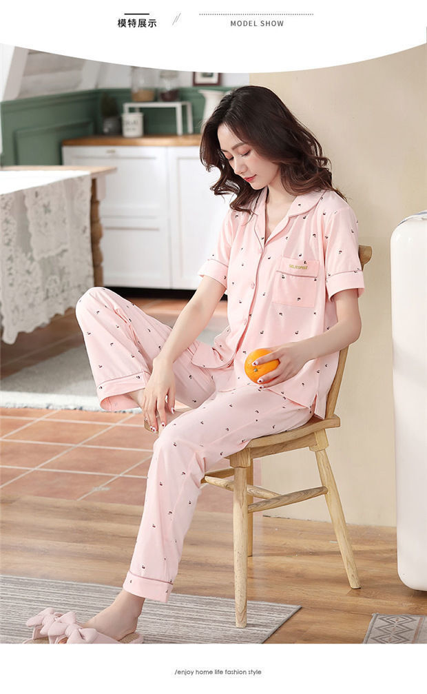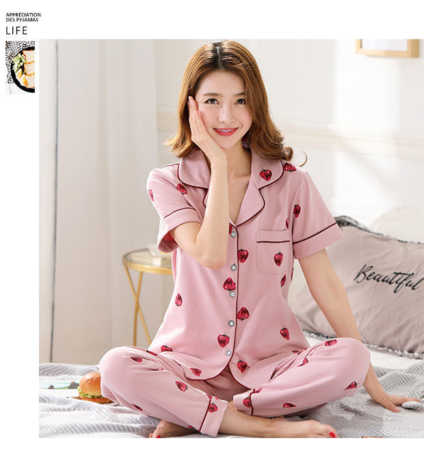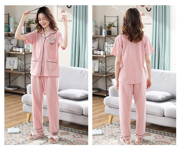 100% pijamas de algodón de las mujeres de verano de manga corta pantalones de dos piezas conjunto de ropa de casa de algodón coreano se puede usar