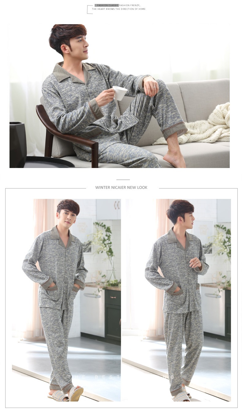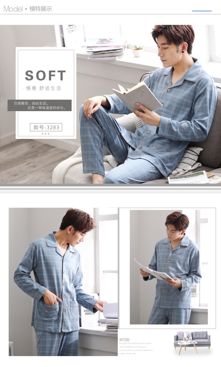 Pijamas de hombre primavera y otoño 100% algodón pantalones de manga larga chaqueta juvenil de los hombres más el tamaño traje homewear