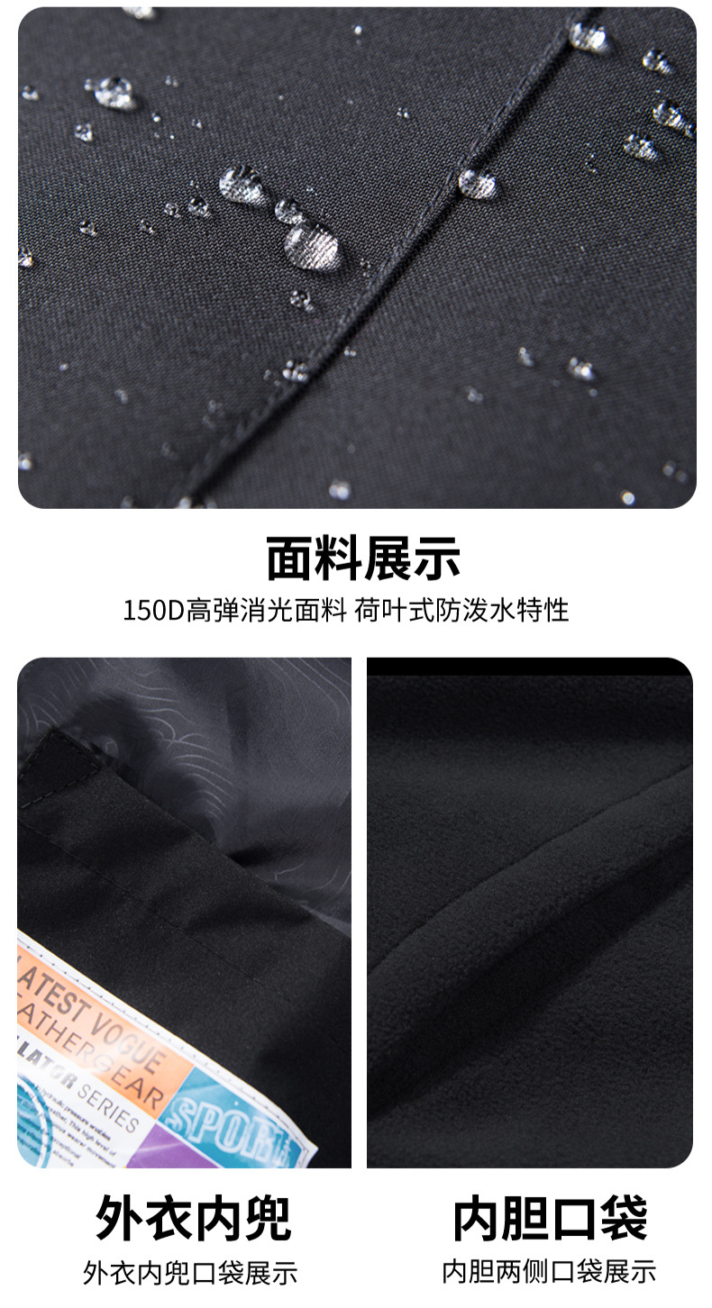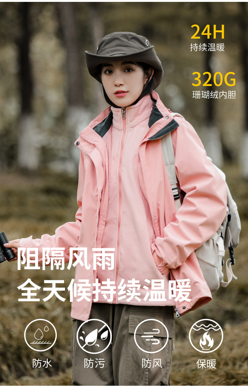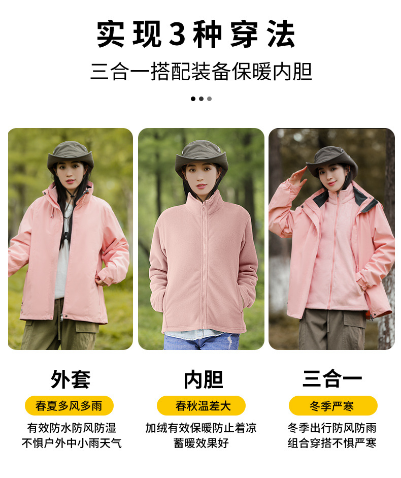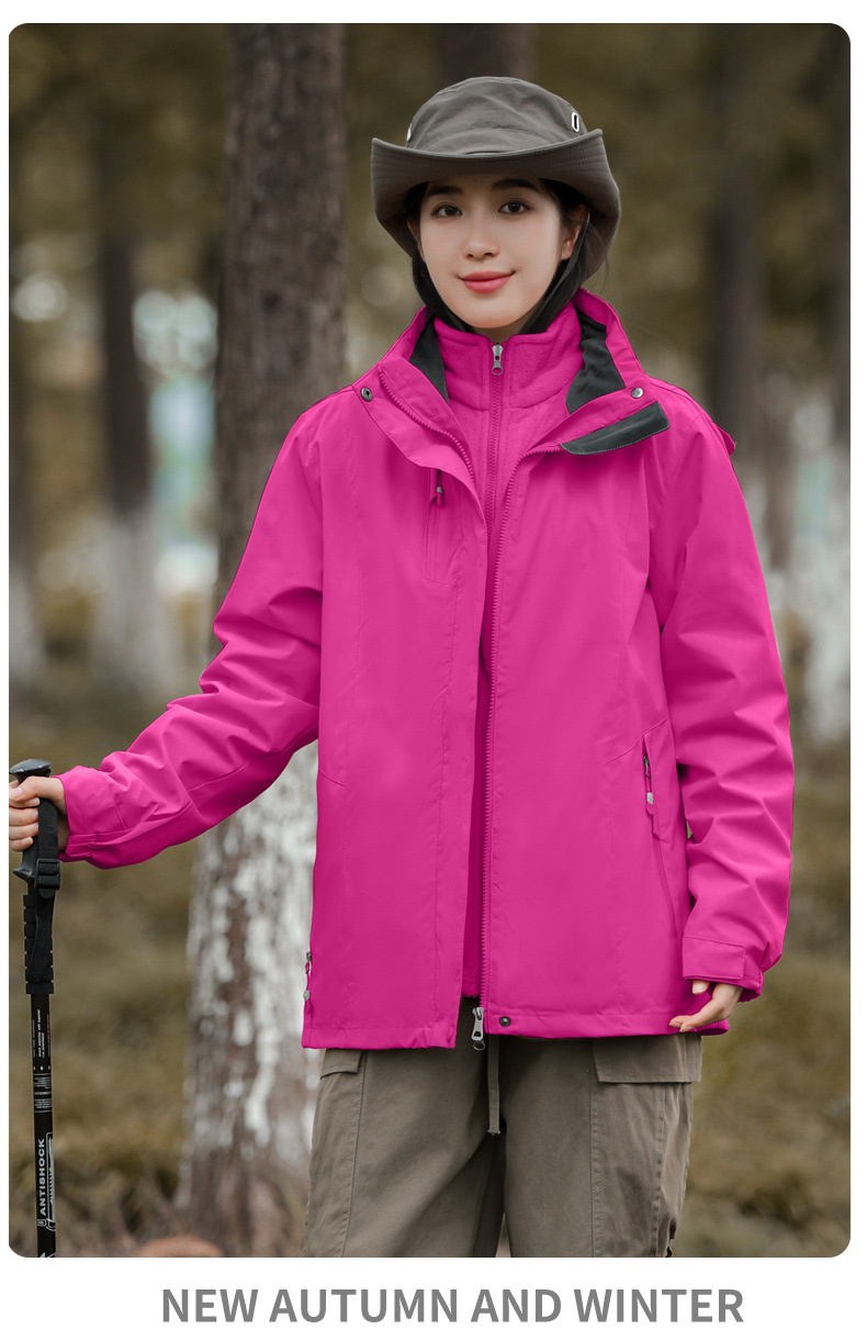 Chaqueta de dos piezas desmontable tres en uno transfronteriza para hombres y mujeres al aire libre impermeable a prueba de viento chaqueta de pareja con forro polar
