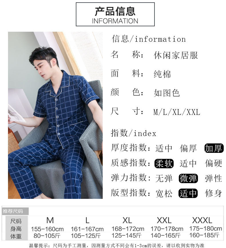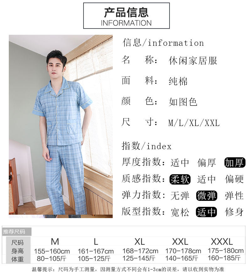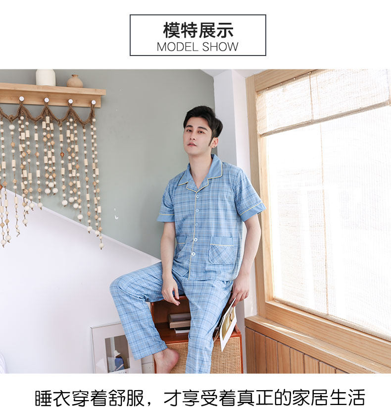 100% algodón de los hombres pijamas verano Pantalones de manga corta cardigan más el tamaño de los hombres jóvenes y de mediana edad papá traje de desgaste para el hogar