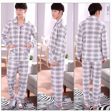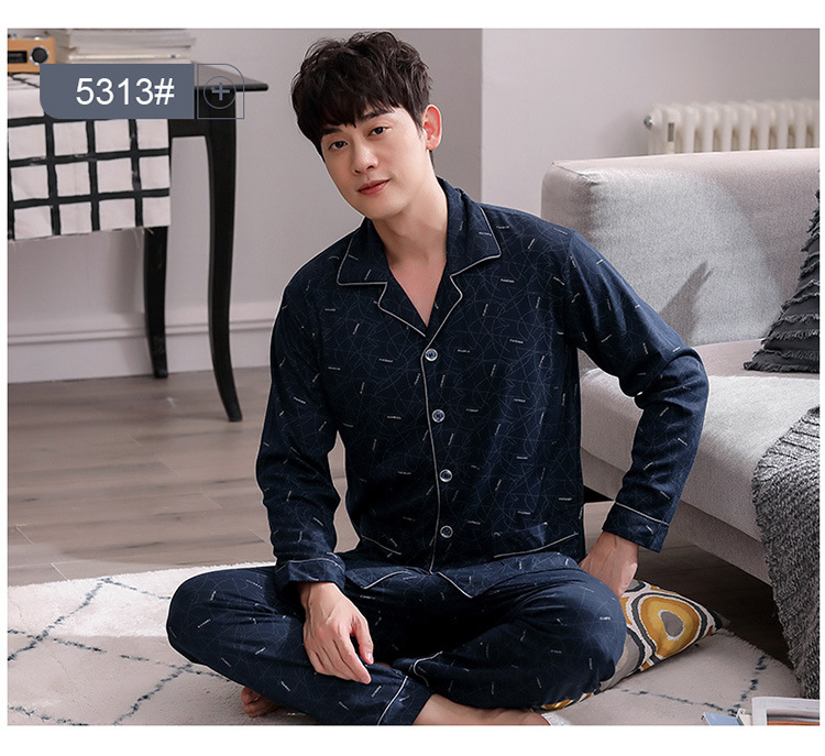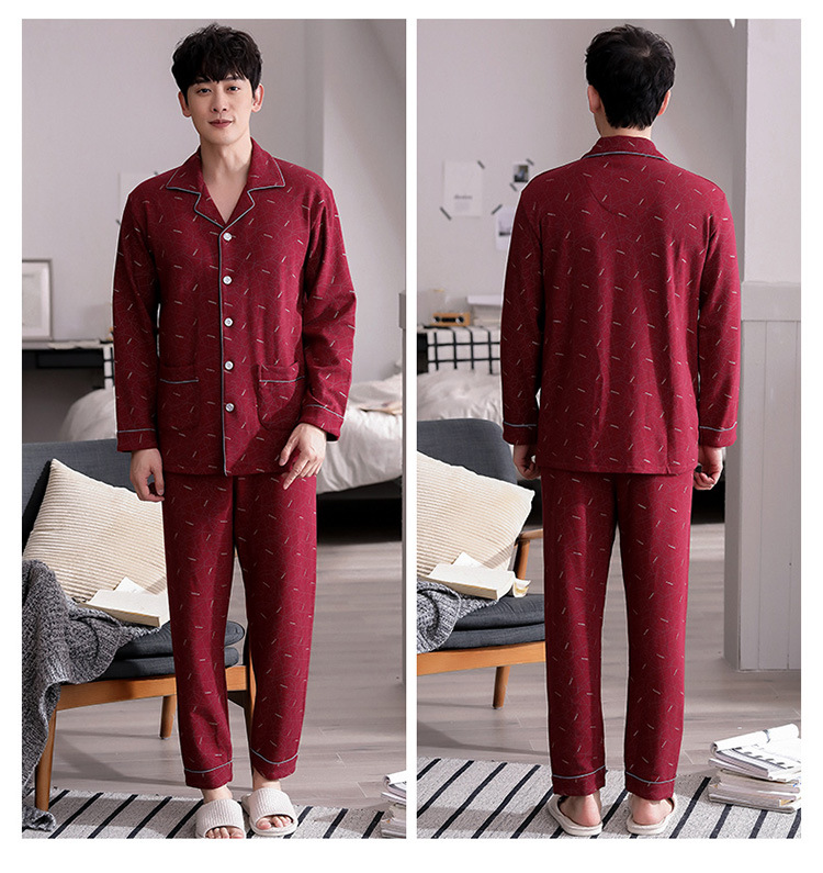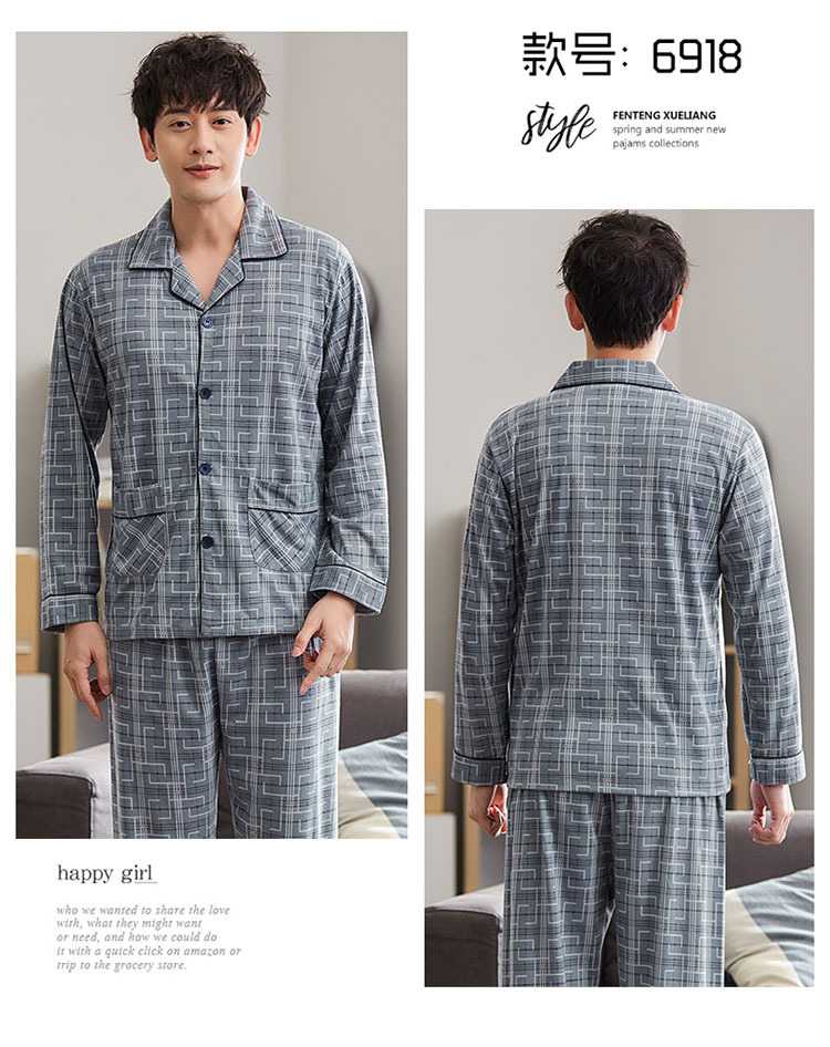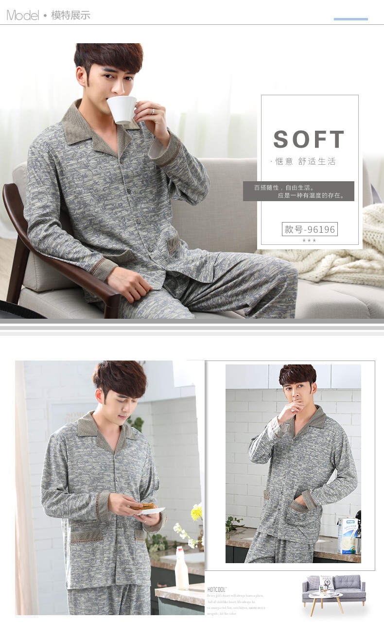 Pijamas de mediana edad y ancianos hombres 100% algodón de manga larga de primavera, Otoño e Invierno papá de mediana edad más tamaño traje de uso doméstico Suelto