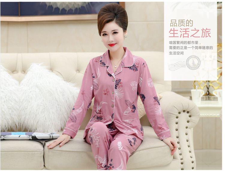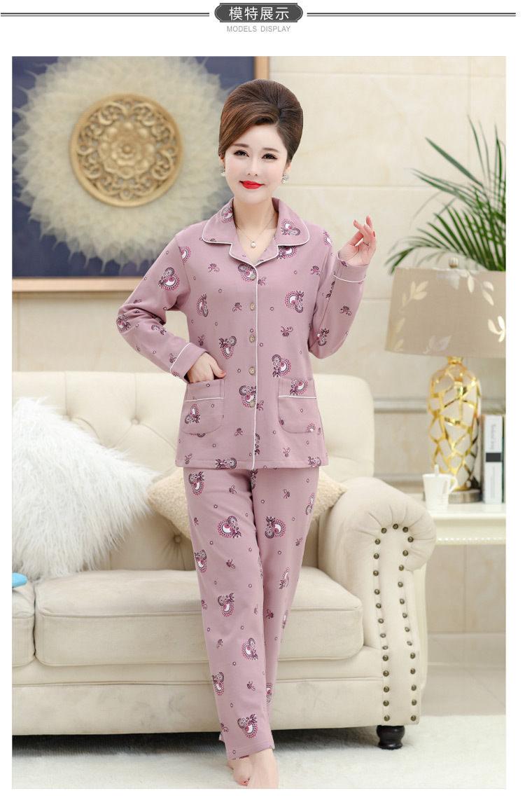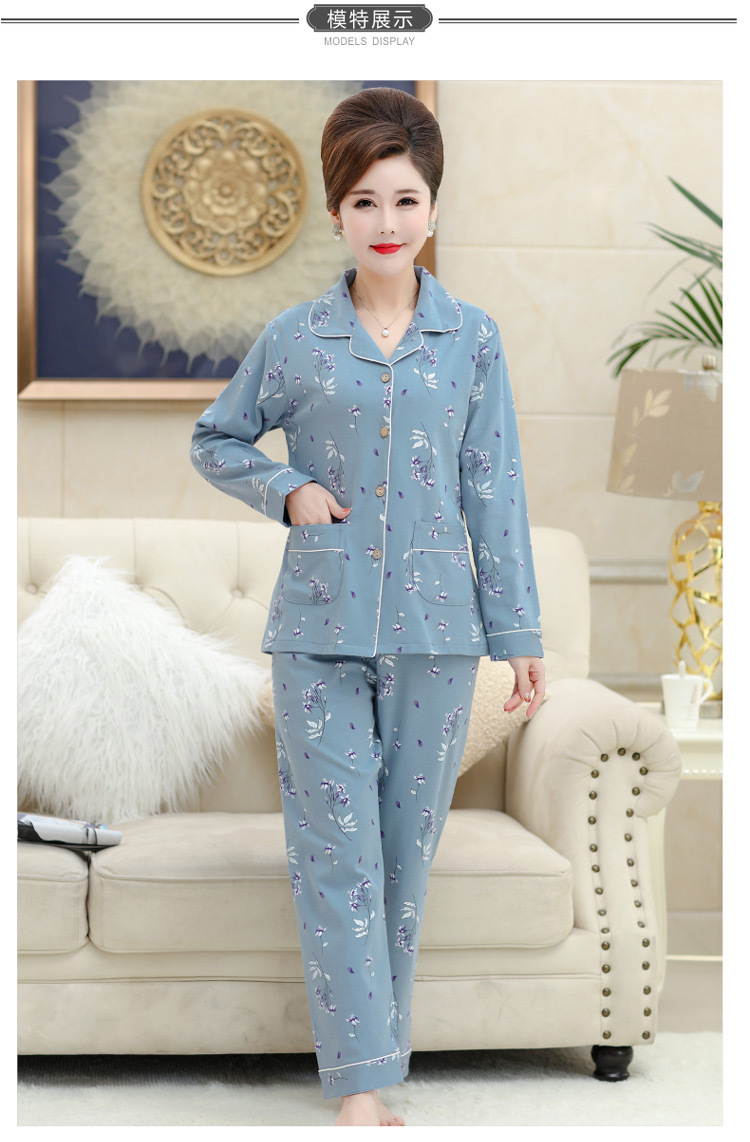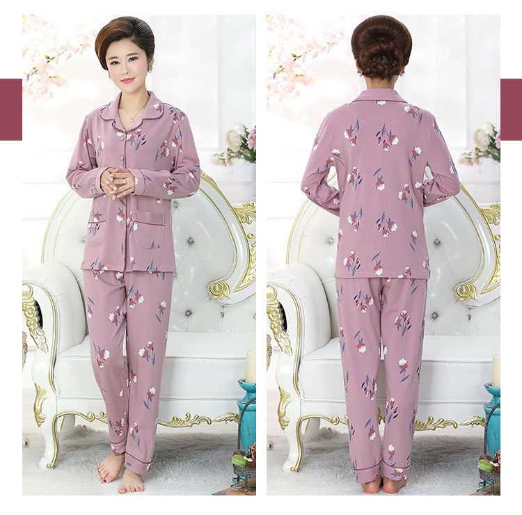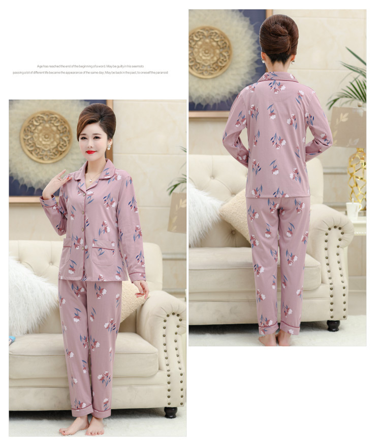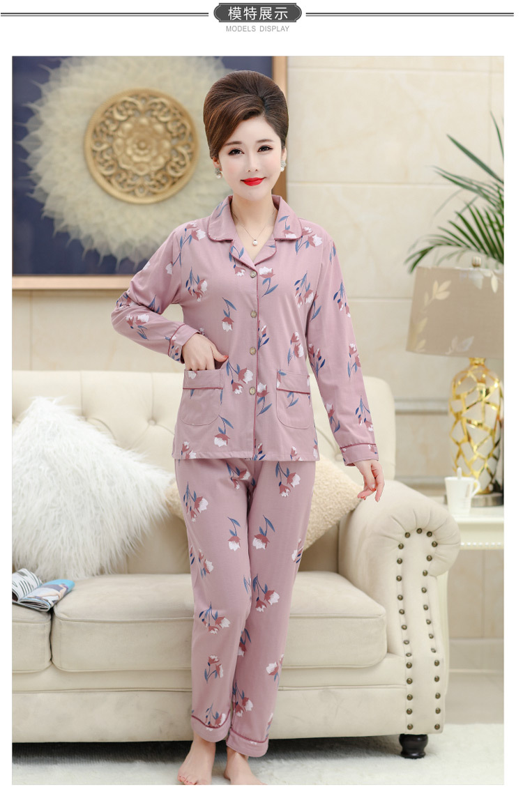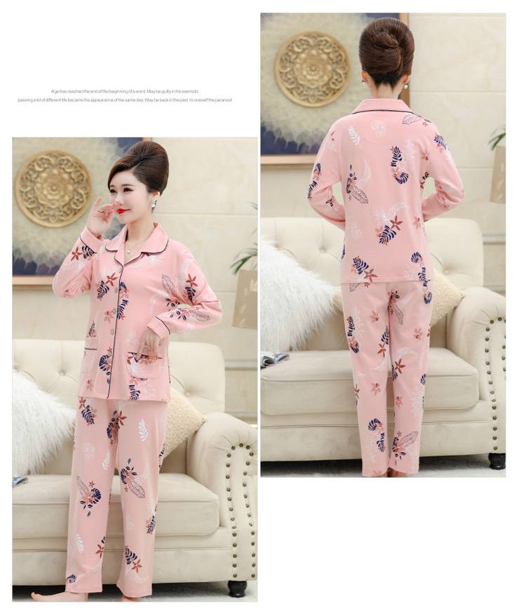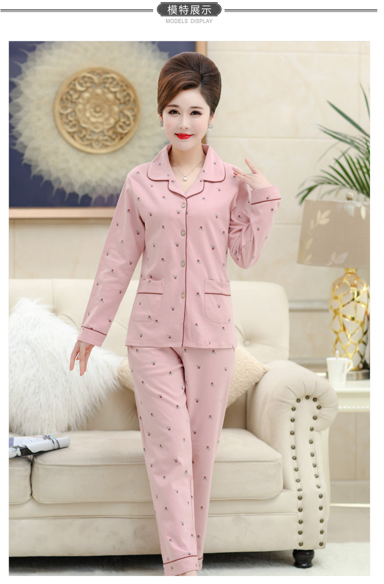 Pijamas mujer mamá PRIMAVERA/otoño e invierno de manga larga 100% algodón cardigan ropa para el hogar de mediana edad y ancianos traje de dos piezas