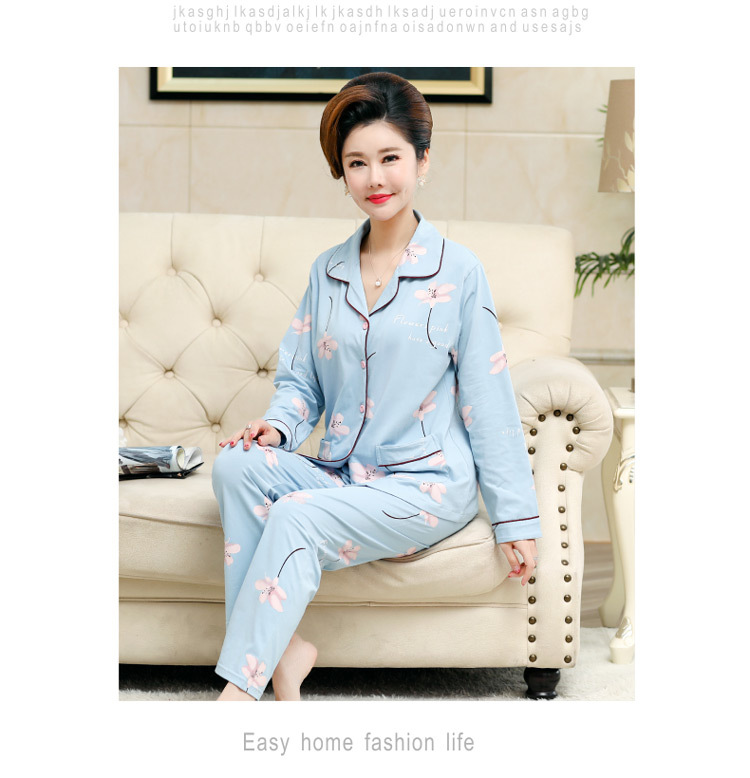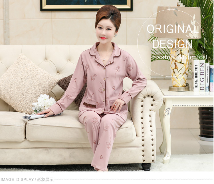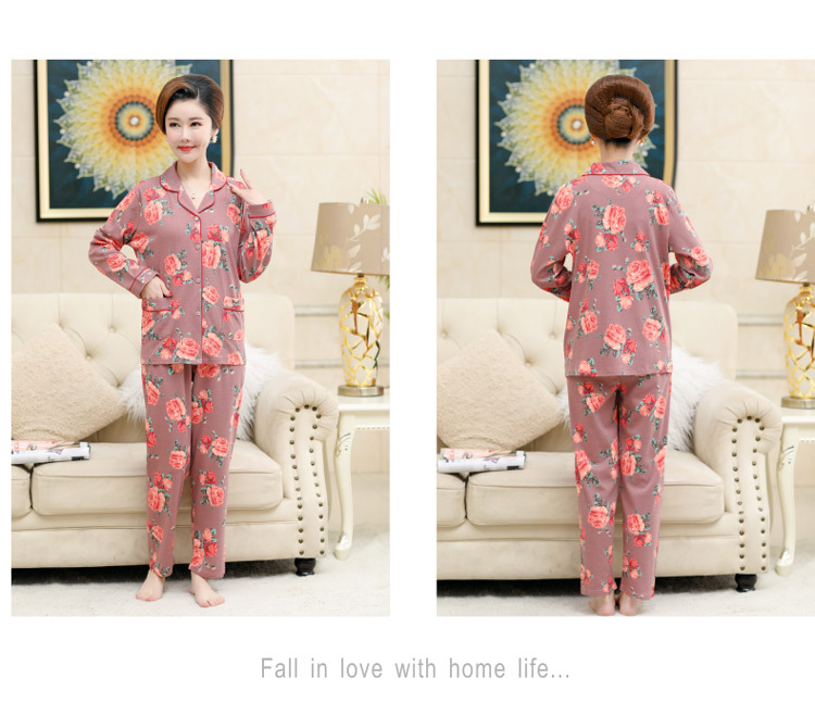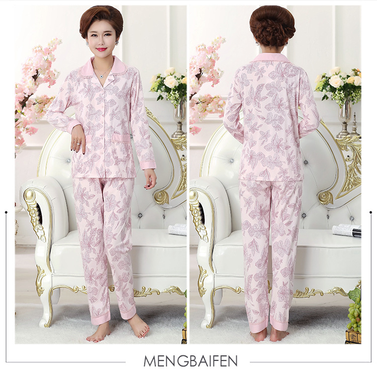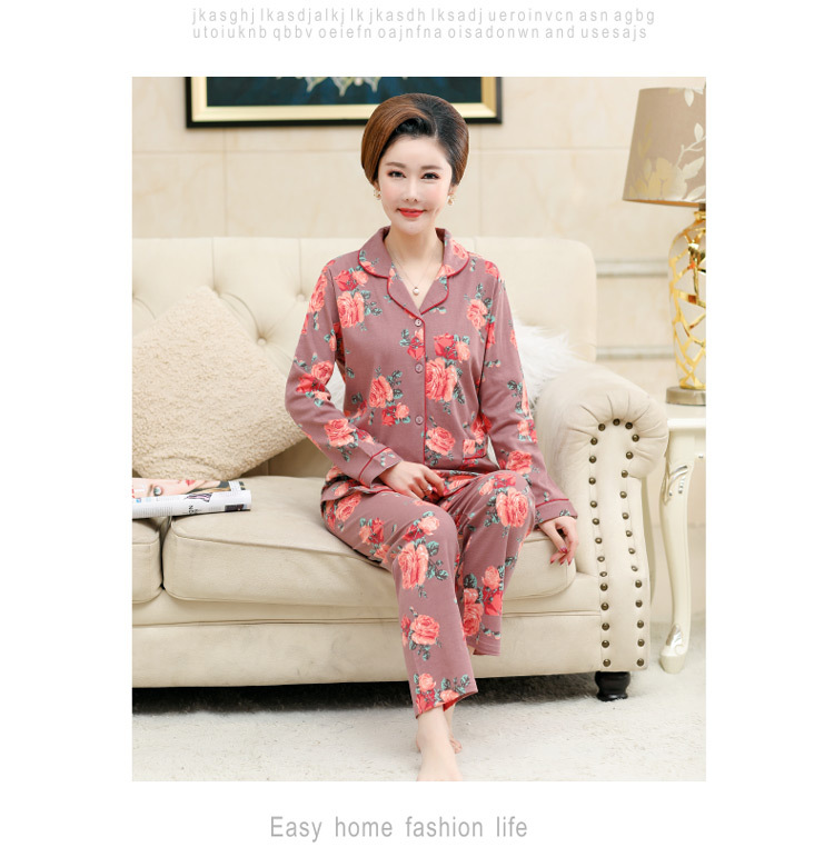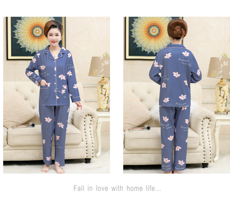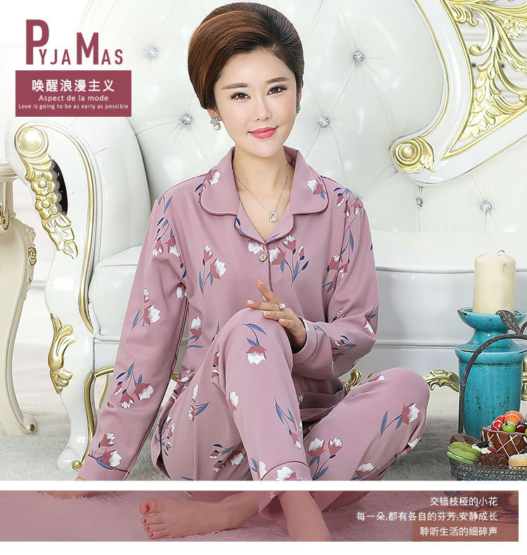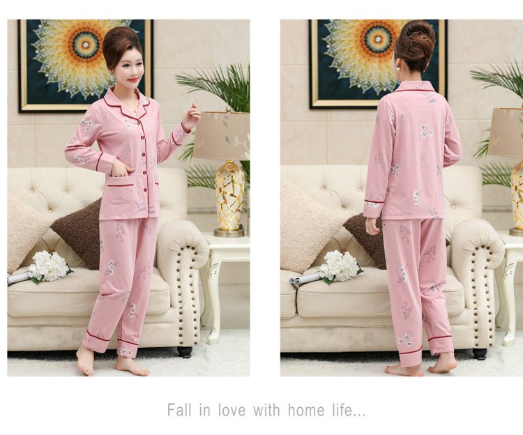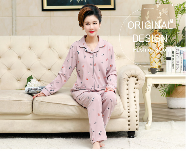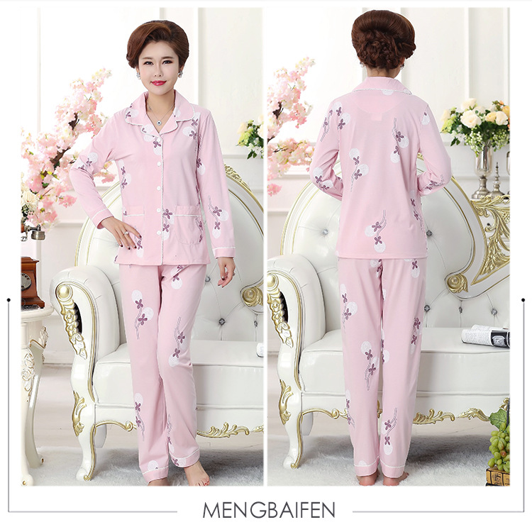 Pijamas mujer mamá PRIMAVERA/otoño e invierno de manga larga 100% algodón cardigan ropa para el hogar de mediana edad y ancianos traje de dos piezas