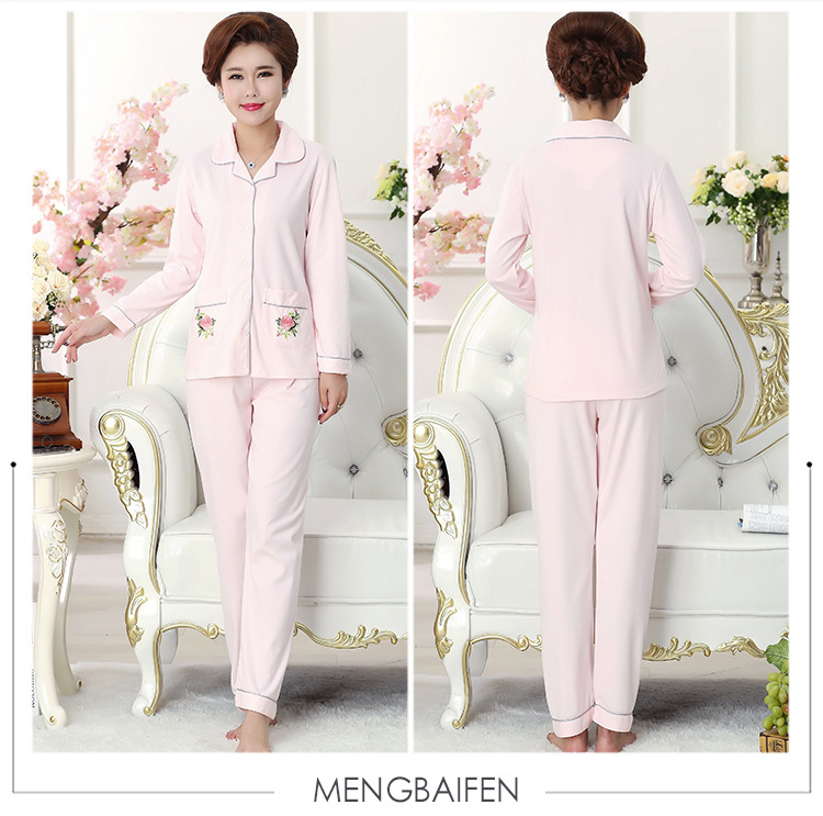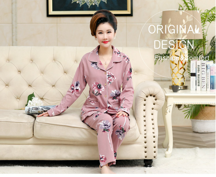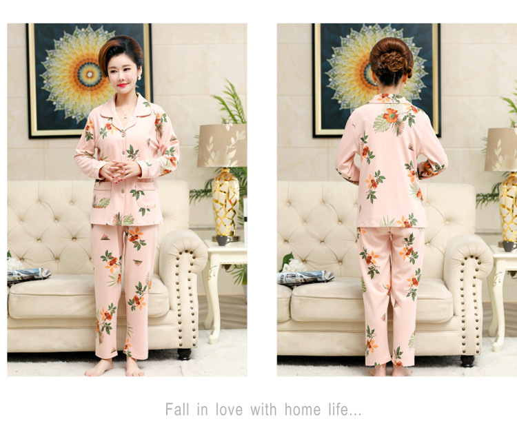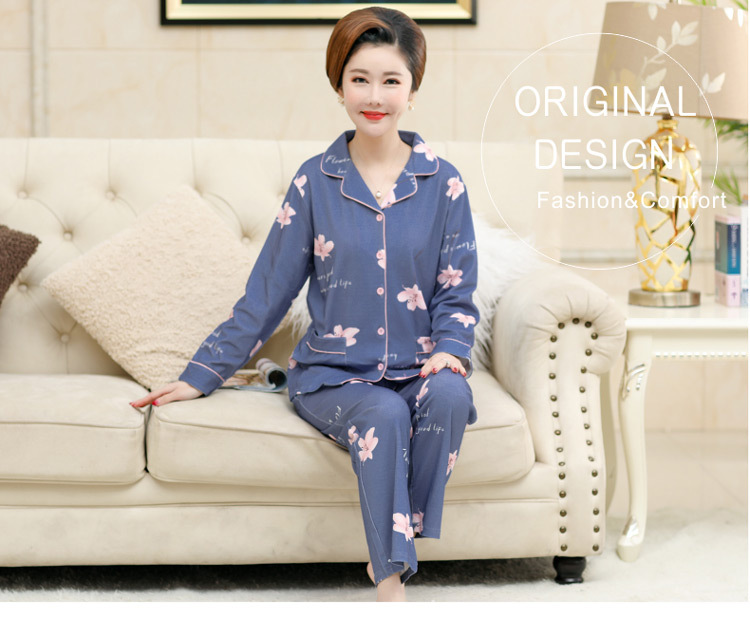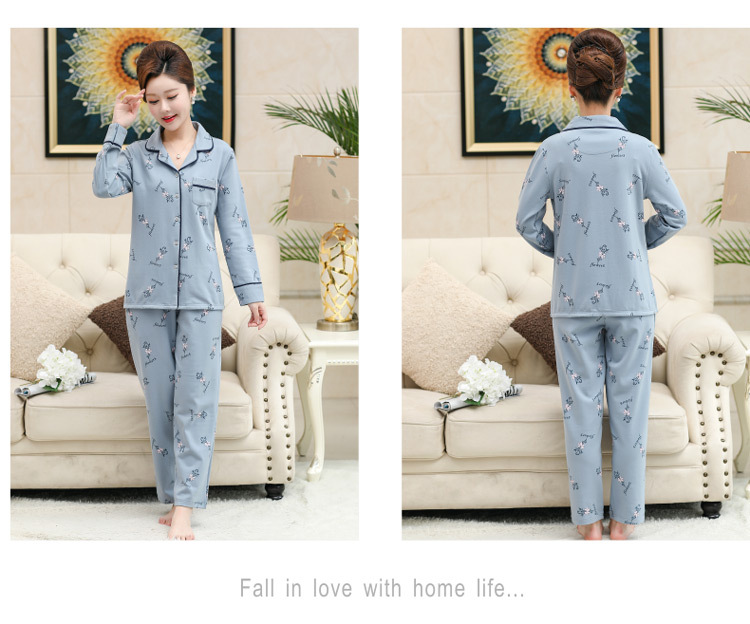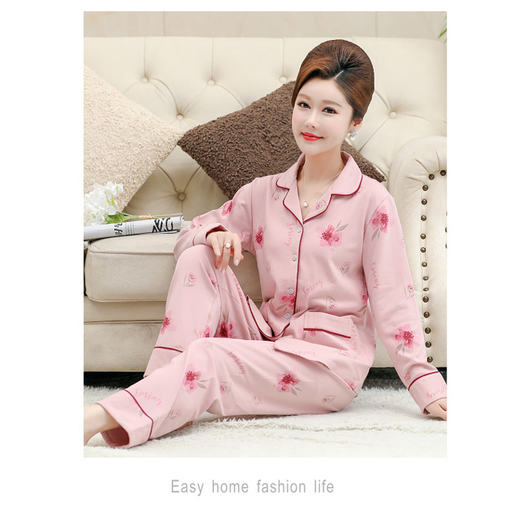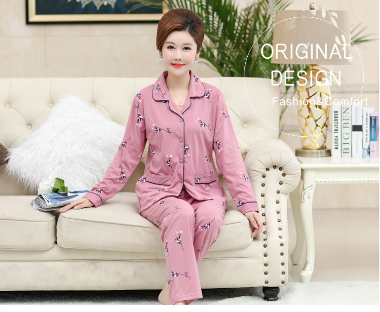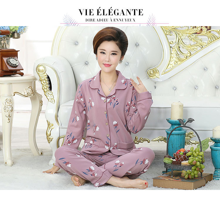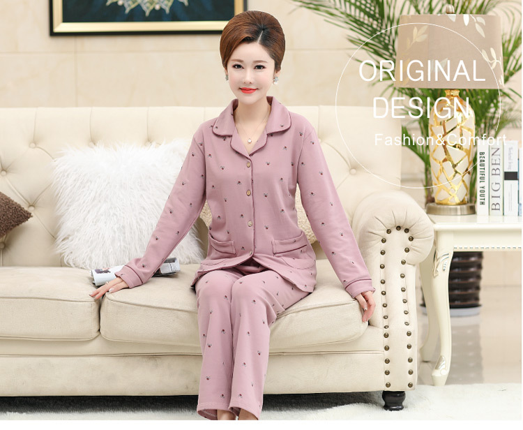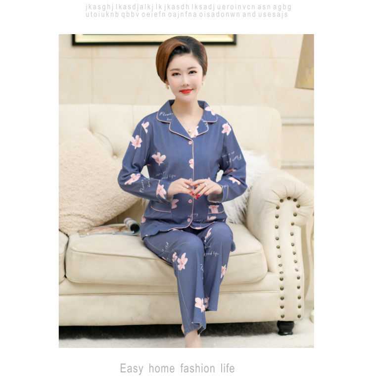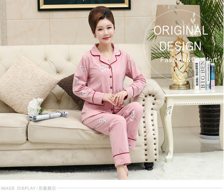 Pijamas mujer mamá PRIMAVERA/otoño e invierno de manga larga 100% algodón cardigan ropa para el hogar de mediana edad y ancianos traje de dos piezas