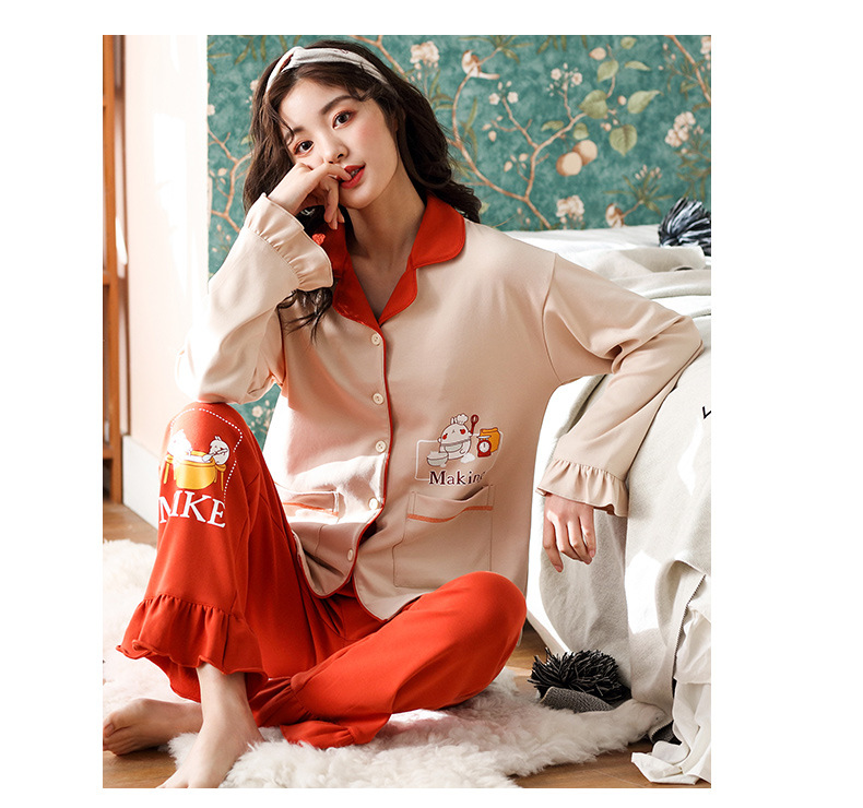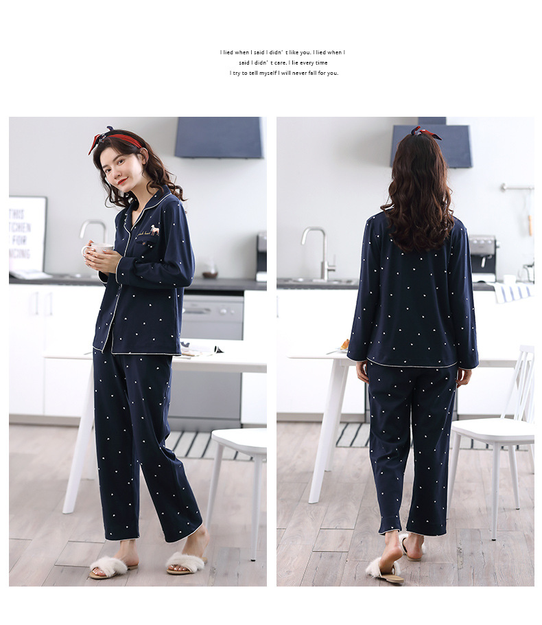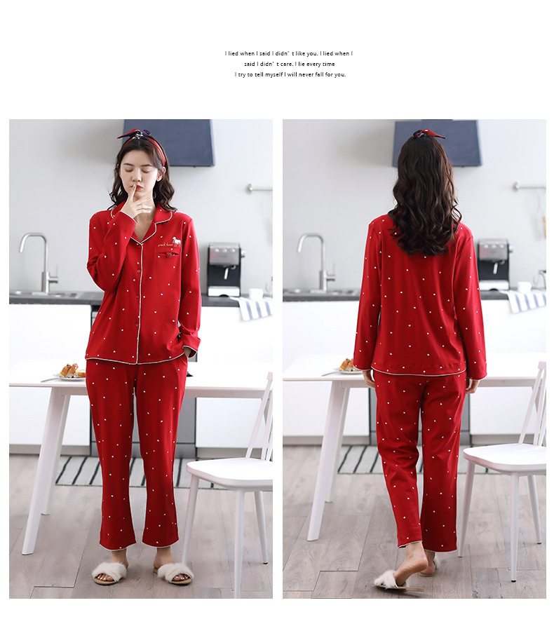 Pijamas de primavera y otoño 100% algodón de manga larga estilo coreano más tamaño cardigan ropa para el hogar Otoño e Invierno traje de dos piezas