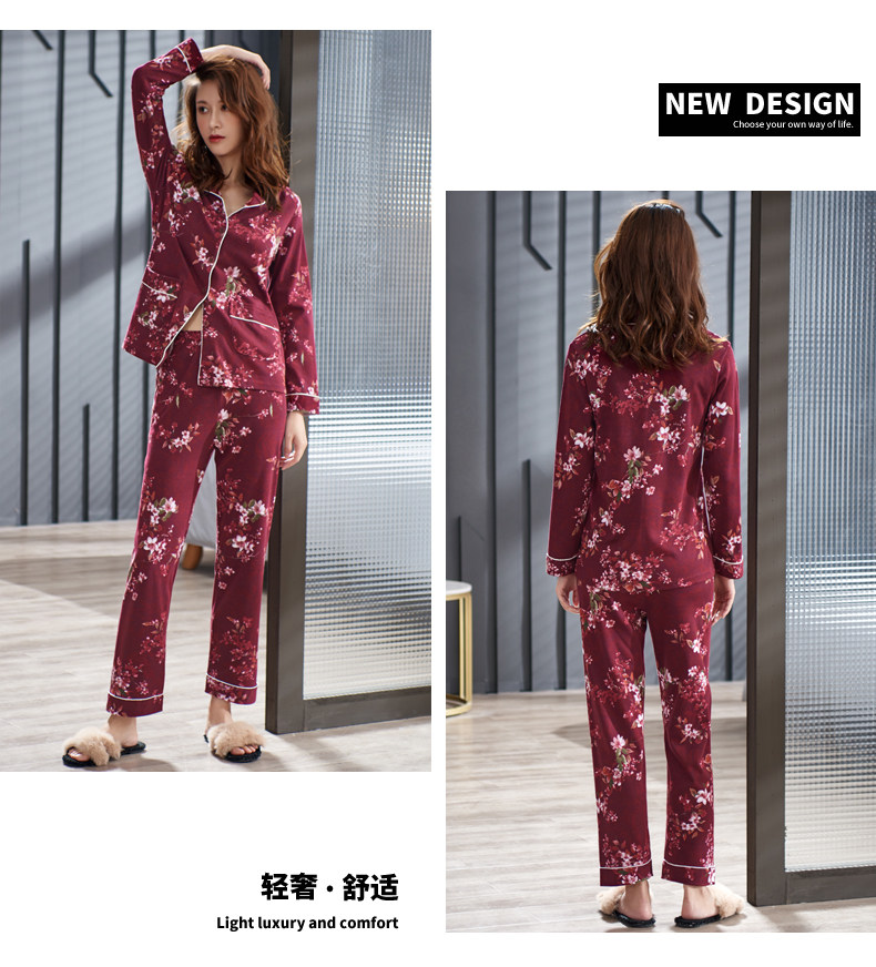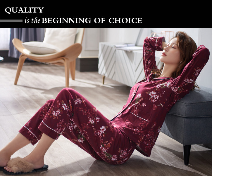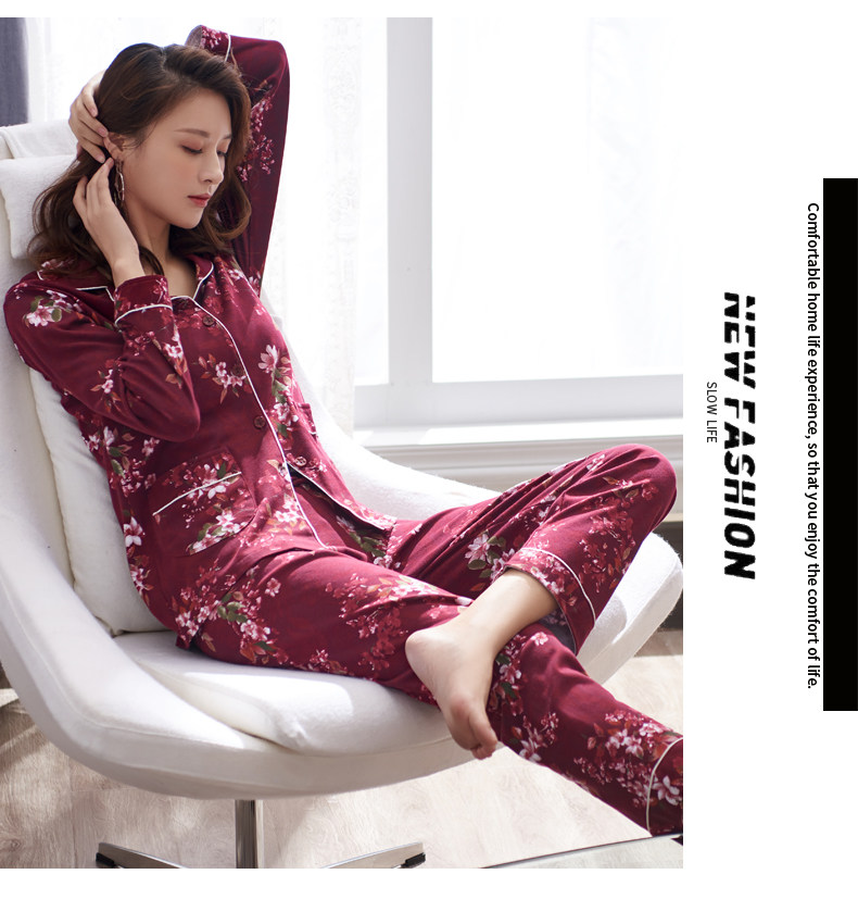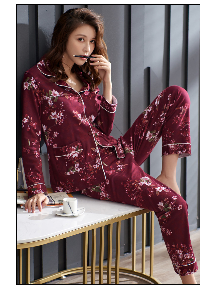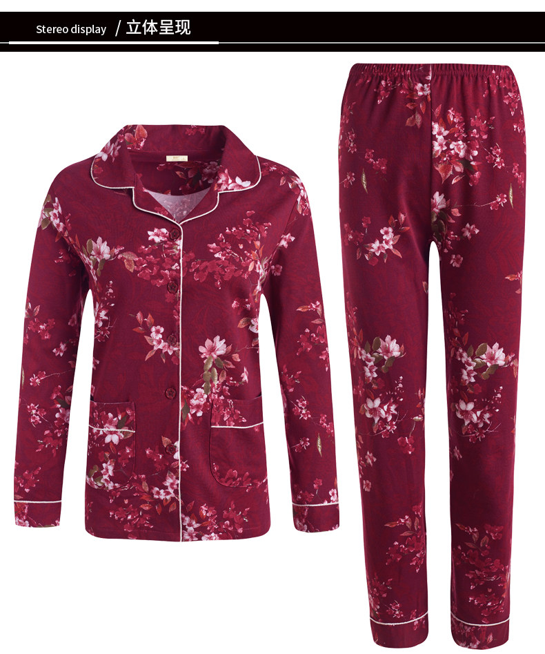 Pijamas mujer primavera y otoño 100% algodón ropa de abrigo de manga larga madre de mediana edad y ancianos Otoño e Invierno traje floral homewear