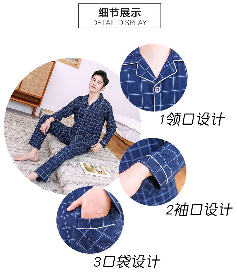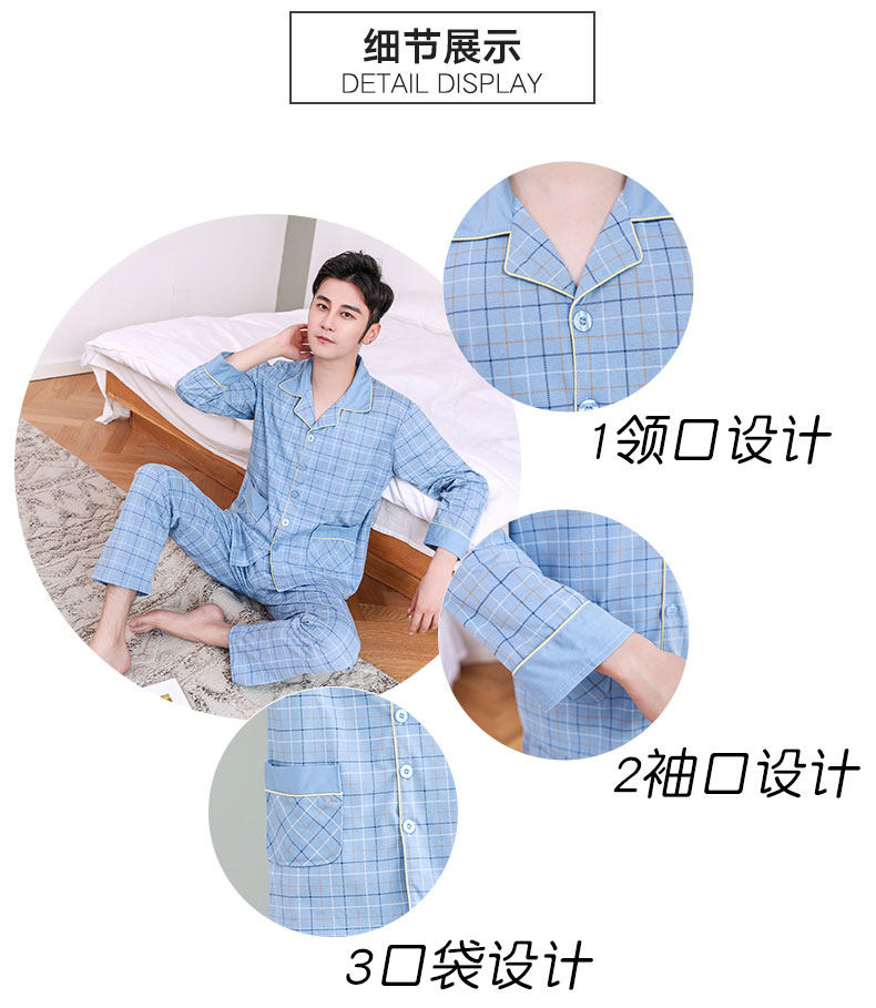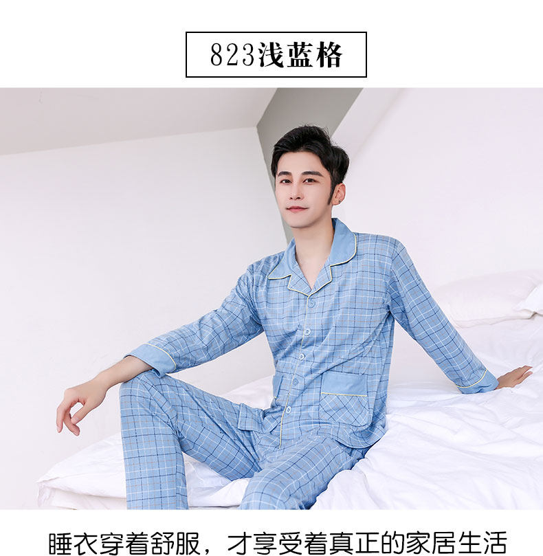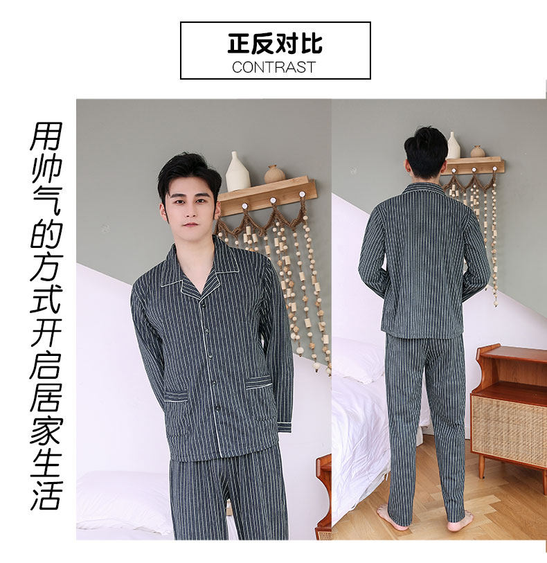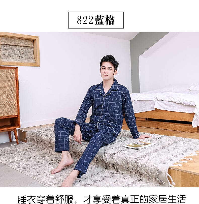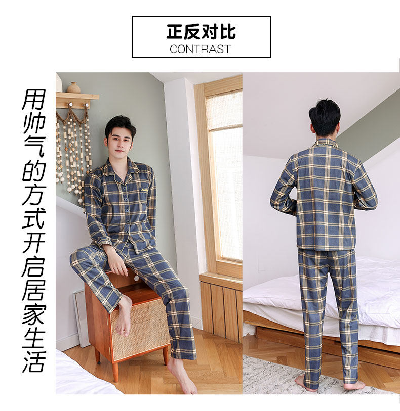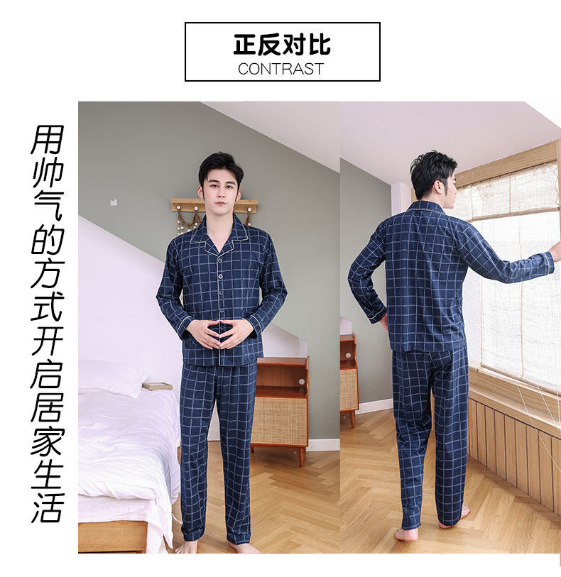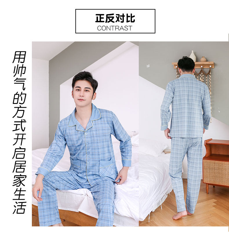 Pijamas hombres de manga larga 100% algodón primavera y otoño pijamas de algodón de los hombres traje de invierno homewear