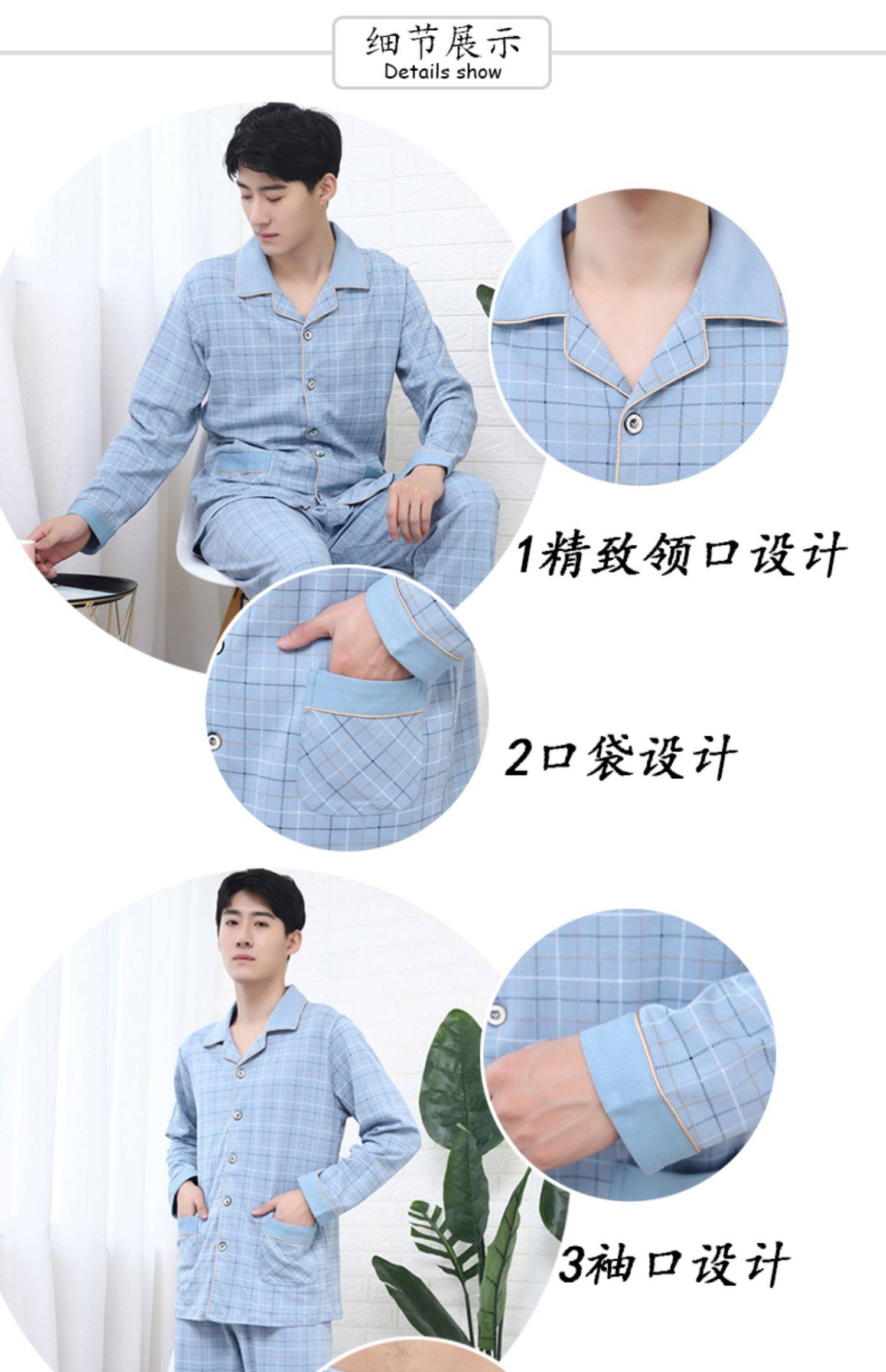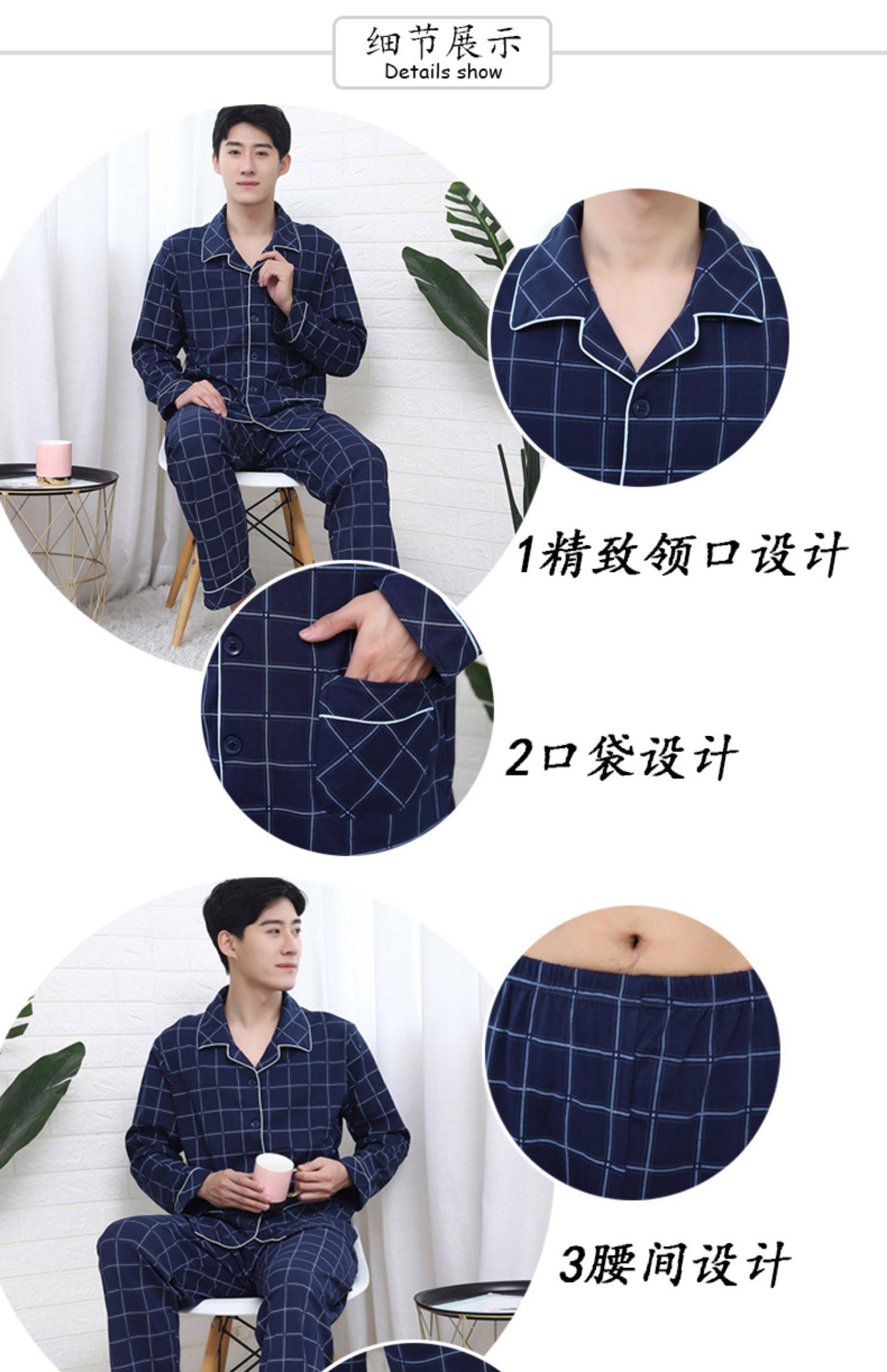 Primavera y otoño pijamas de los hombres de invierno 100% algodón de manga larga juventud simple suelta plaid más tamaño traje de desgaste para el hogar