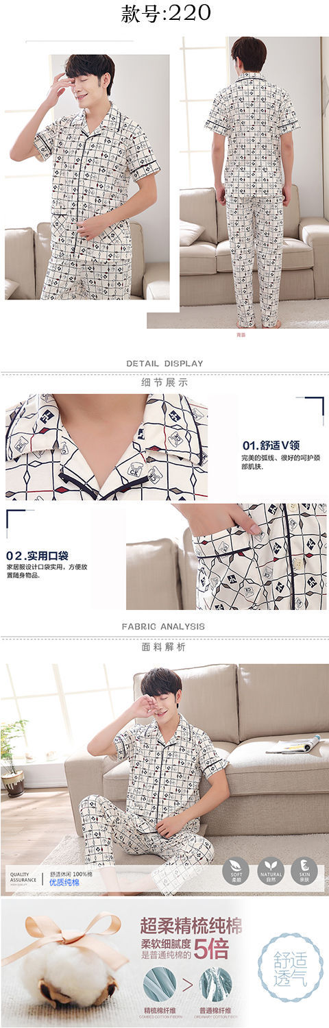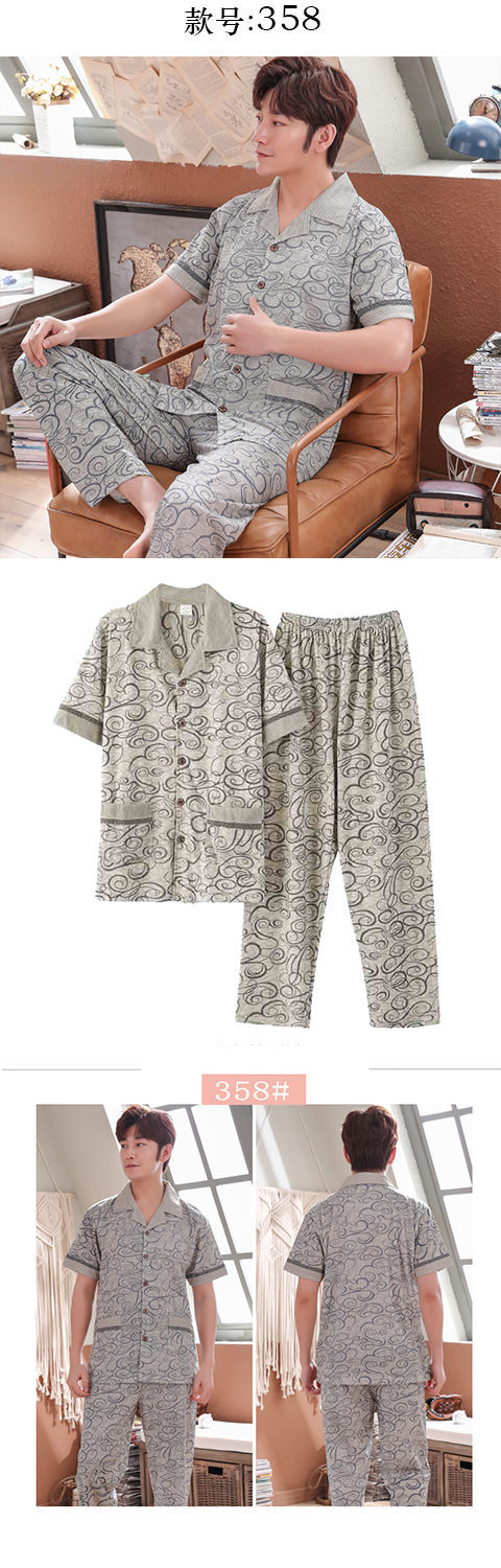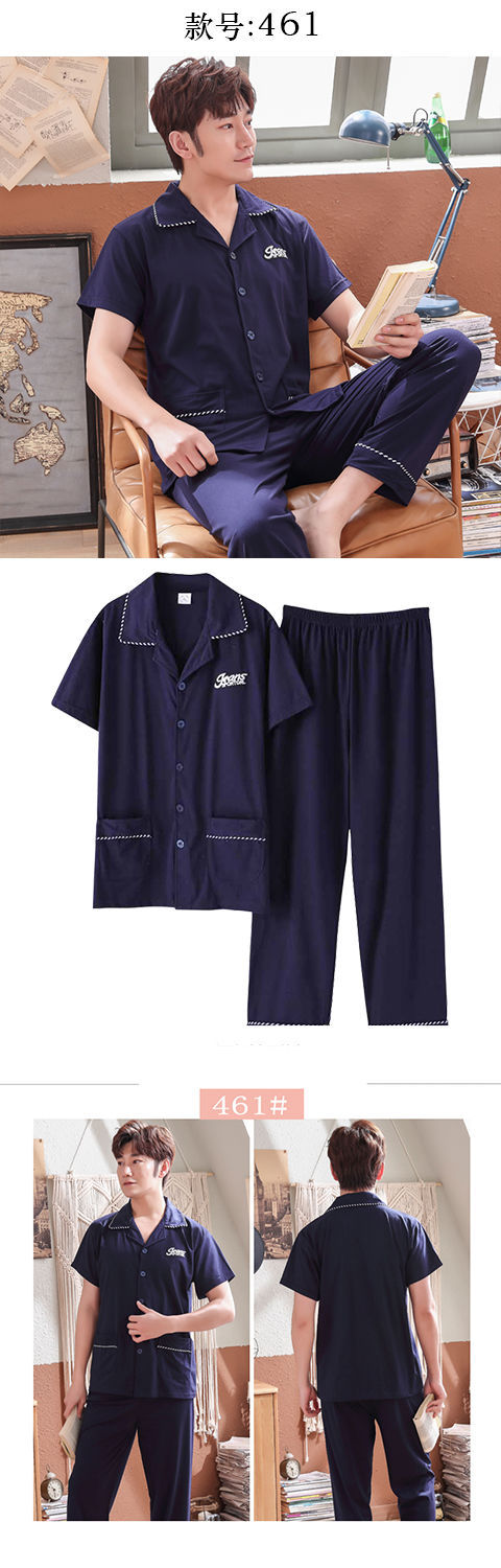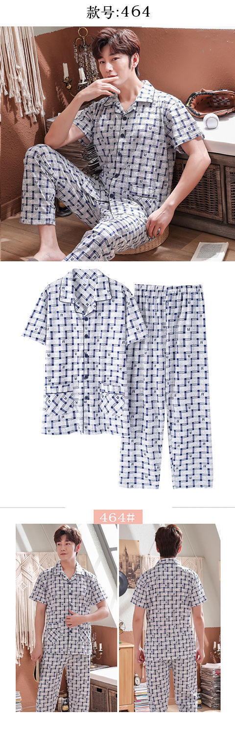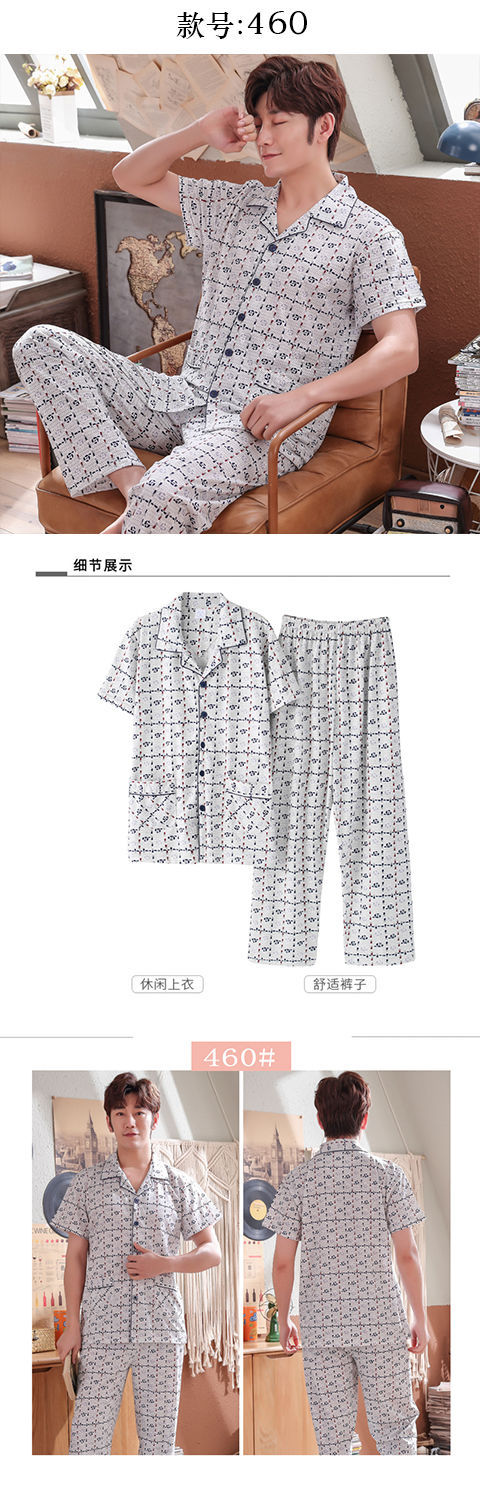 Pijamas de algodón para hombre primavera y verano pijamas de manga corta para hombre otoño fino algodón solapa ropa para el hogar conjunto