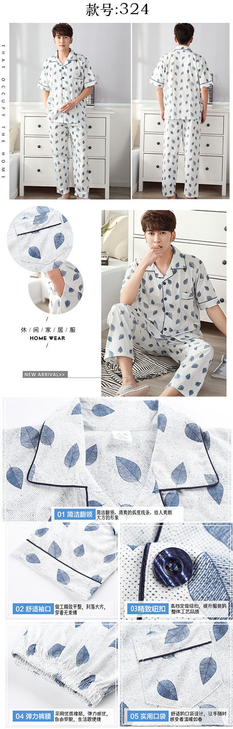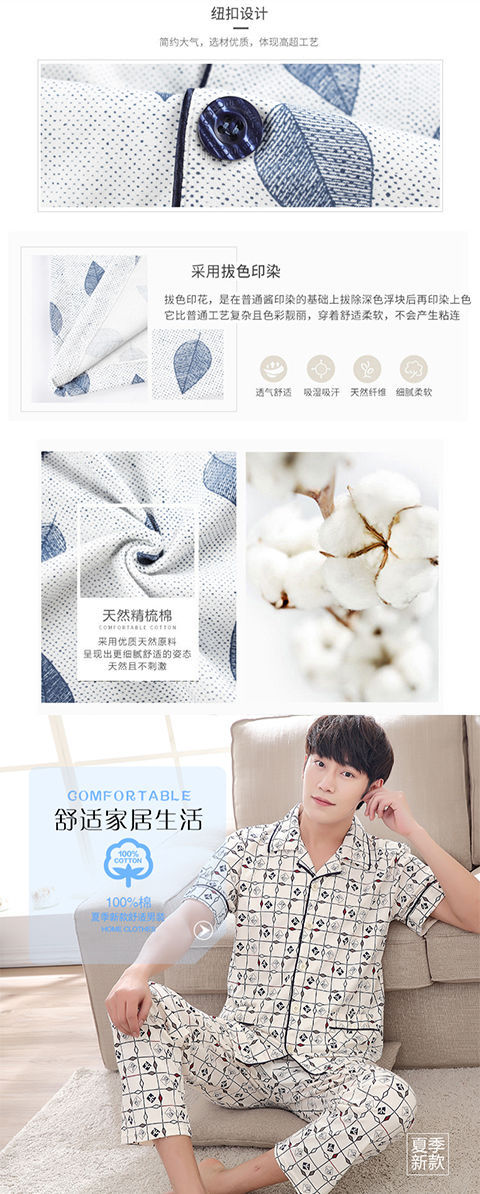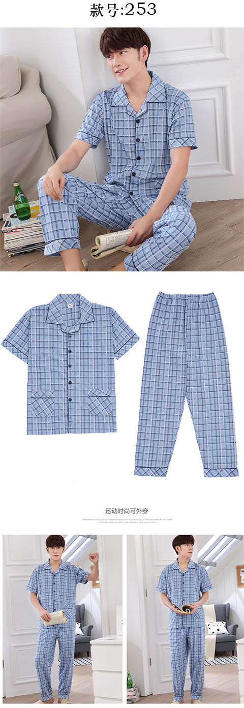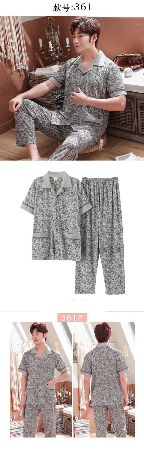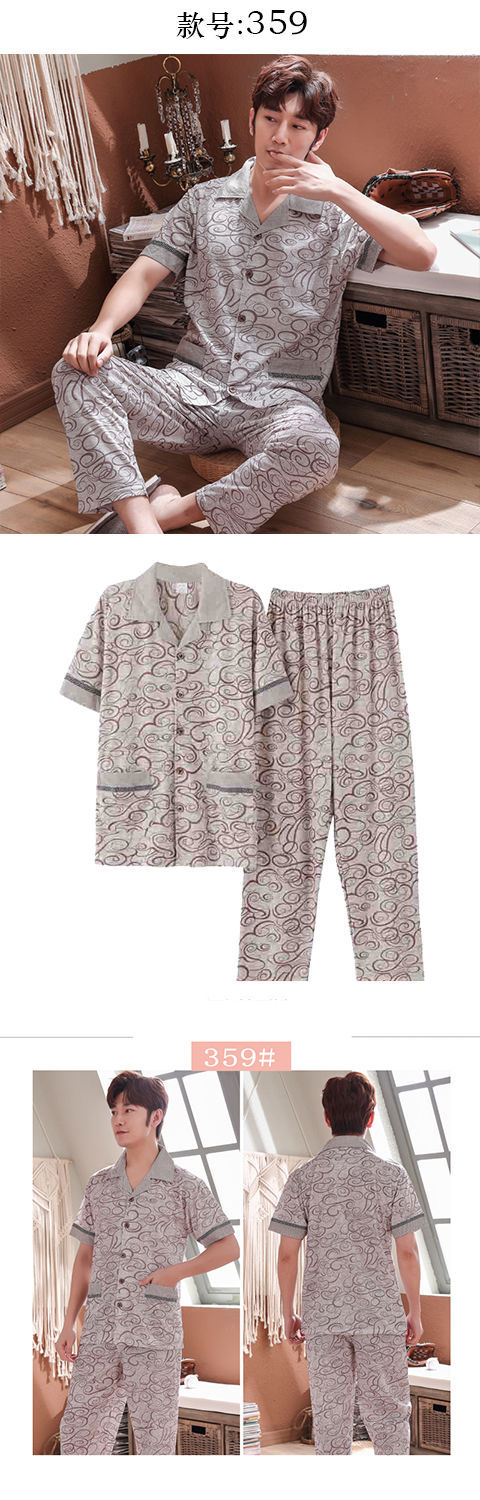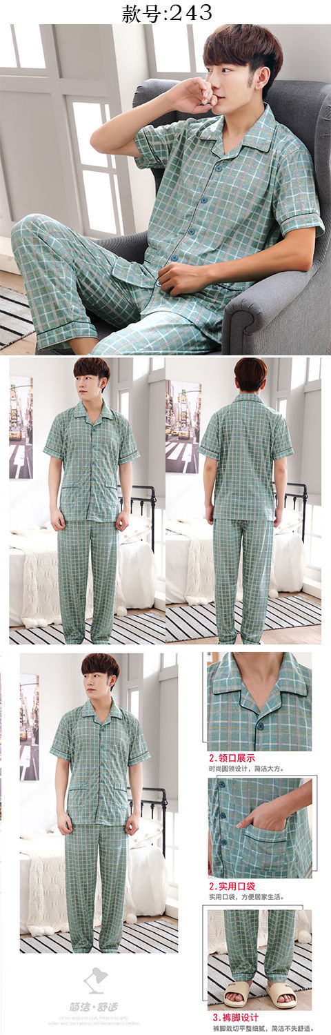 Pijamas de algodón para hombre primavera y verano pijamas de manga corta para hombre otoño fino algodón solapa ropa para el hogar conjunto
