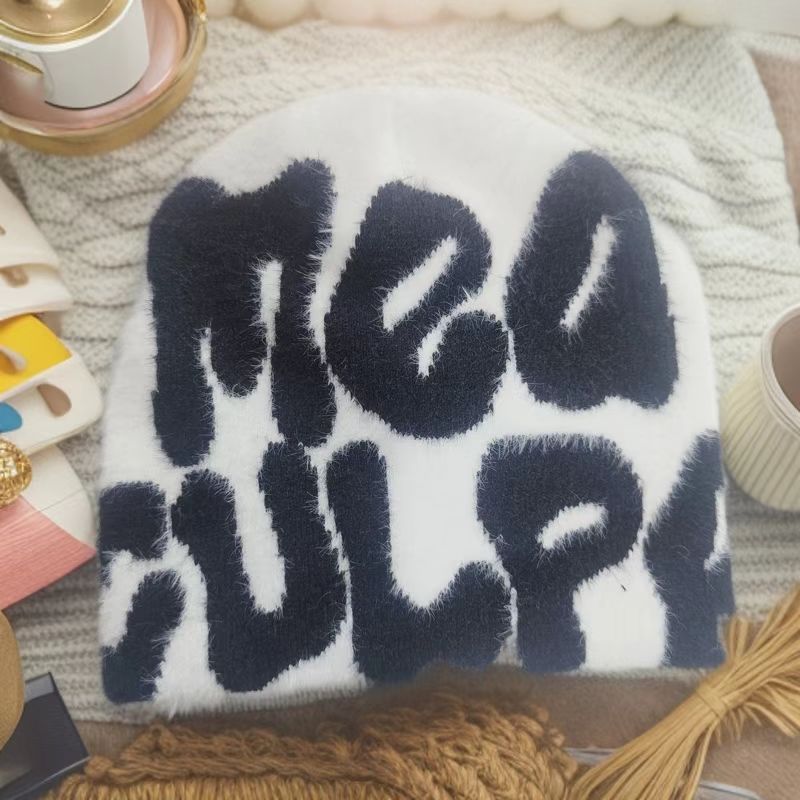 Transfronterizos nuevos puntos de imitación de visón sombrero de frijol sombrero de punto sombrero de invierno sombrero Jacquard sombrero de protección de orejas