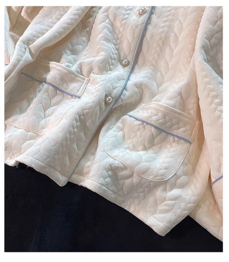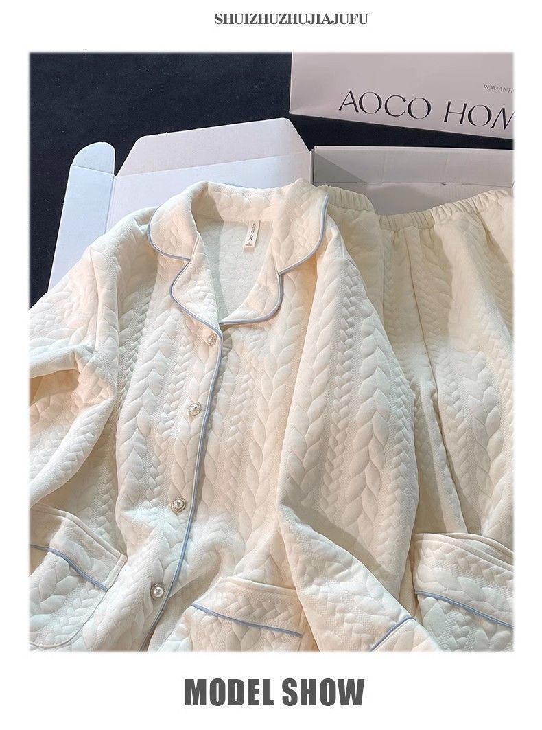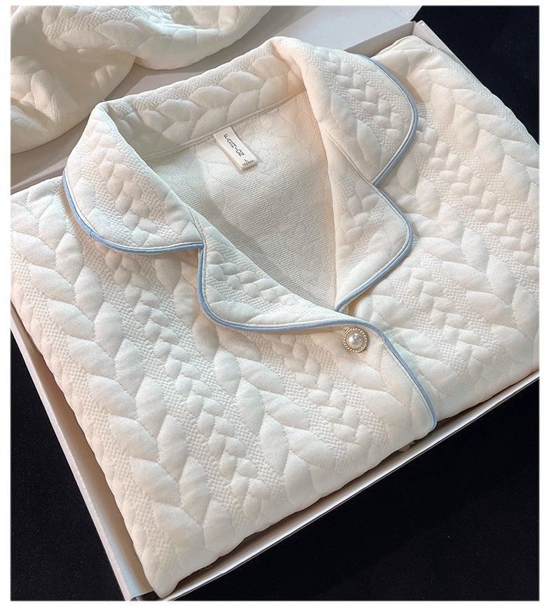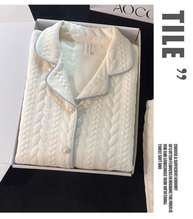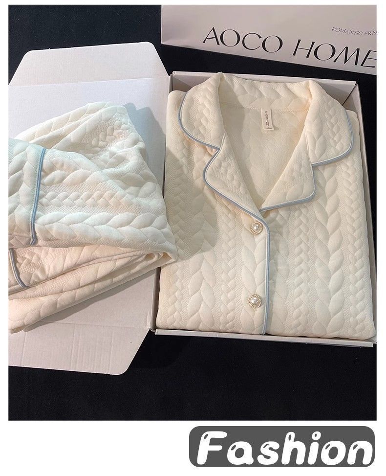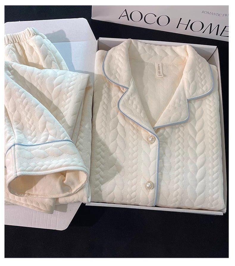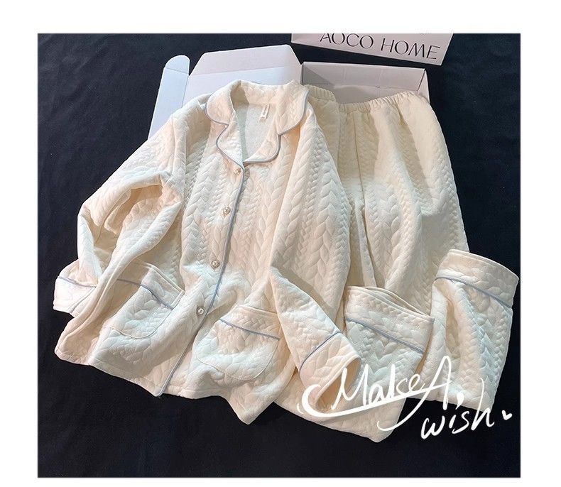 Pijamas de mujeres otoño y invierno engrosado aire caliente algodón intercalado manga larga set japonés simple ropa de estilo de invierno