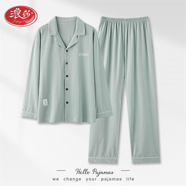 Pijamas de algodón para hombres primavera y otoño delgados de manga larga juveniles simple color sólido ropa de hogar grande