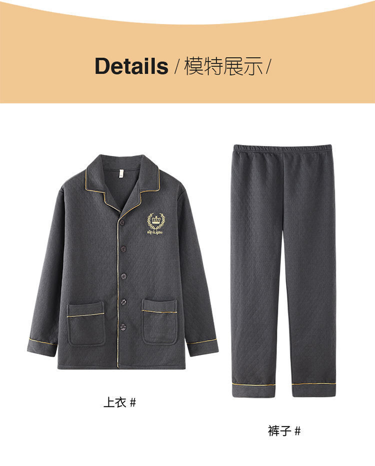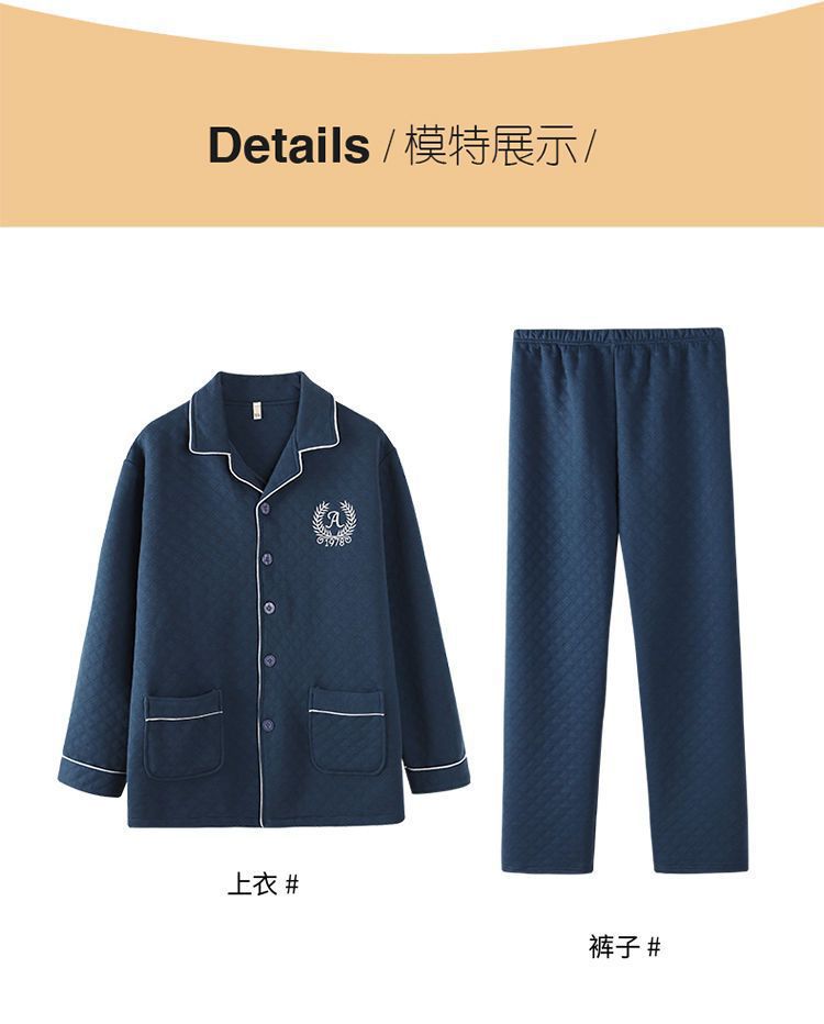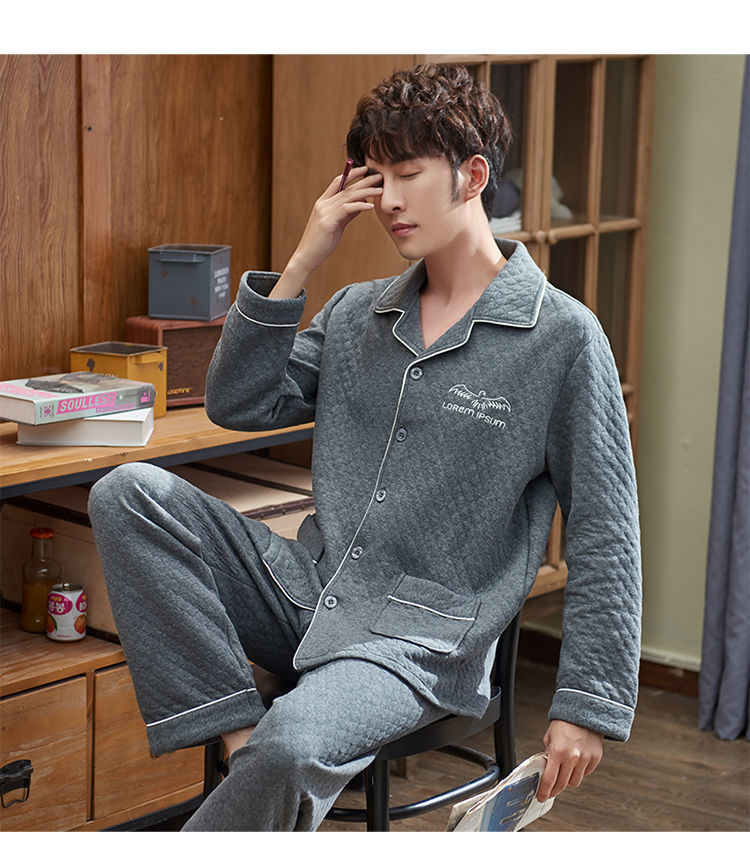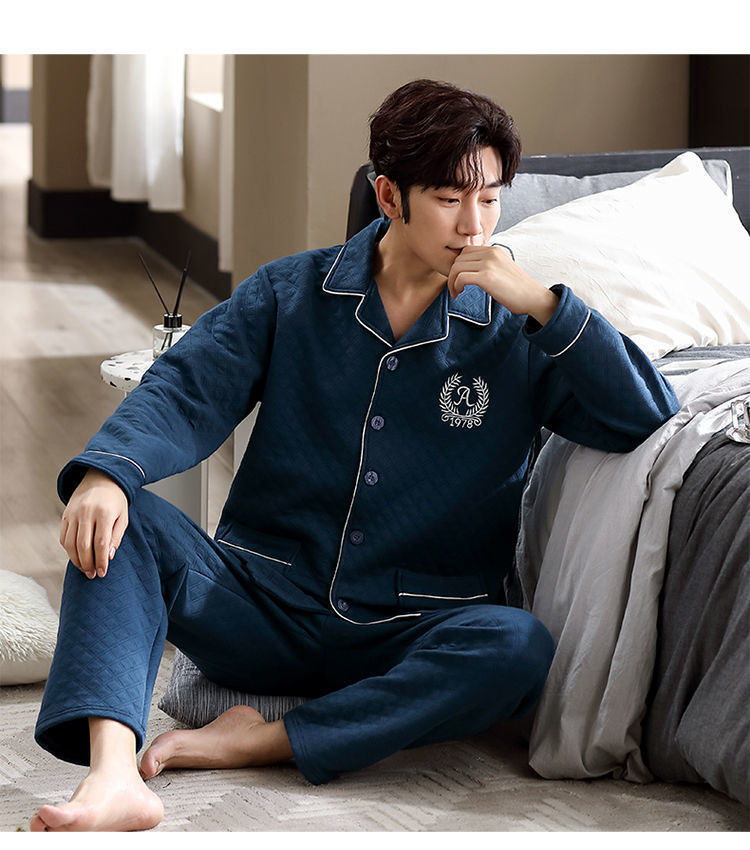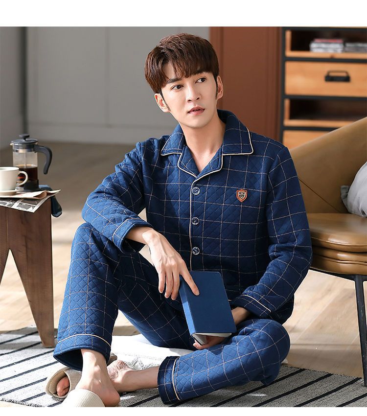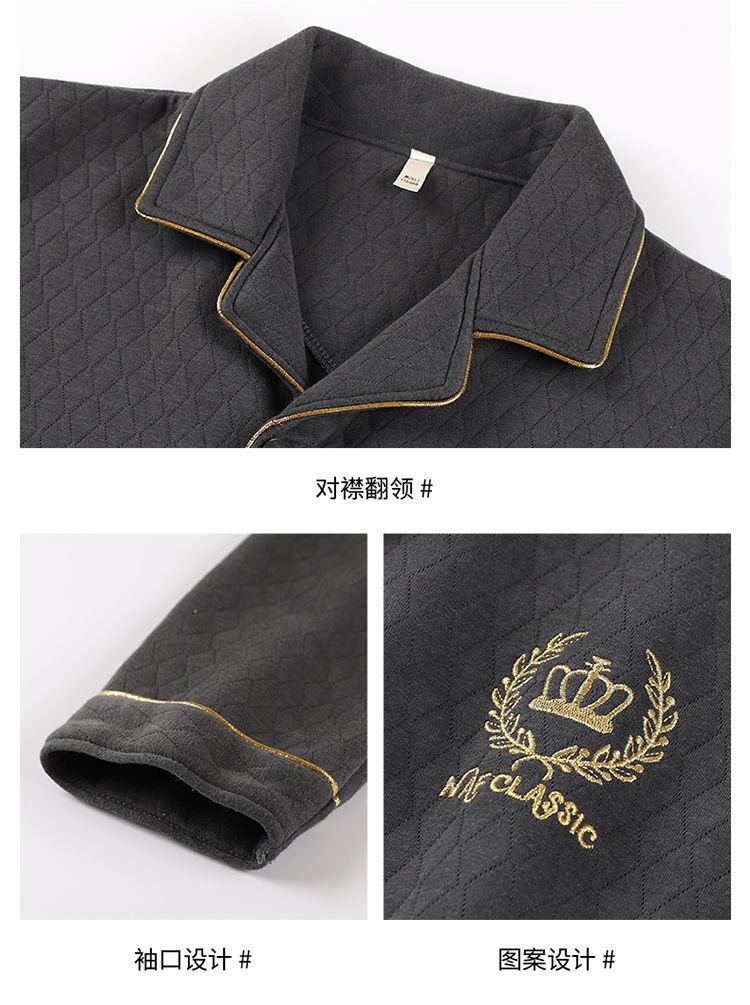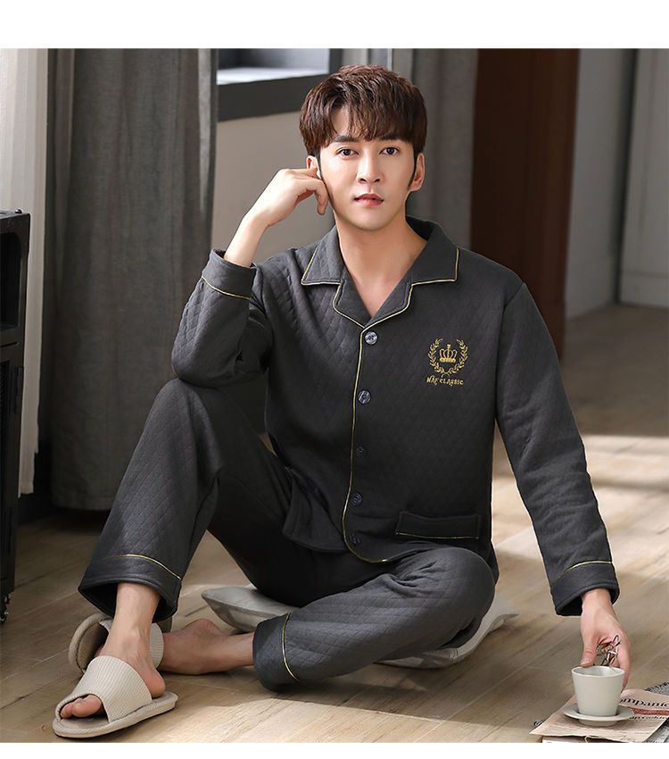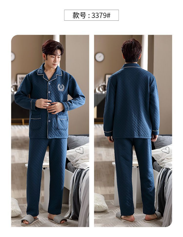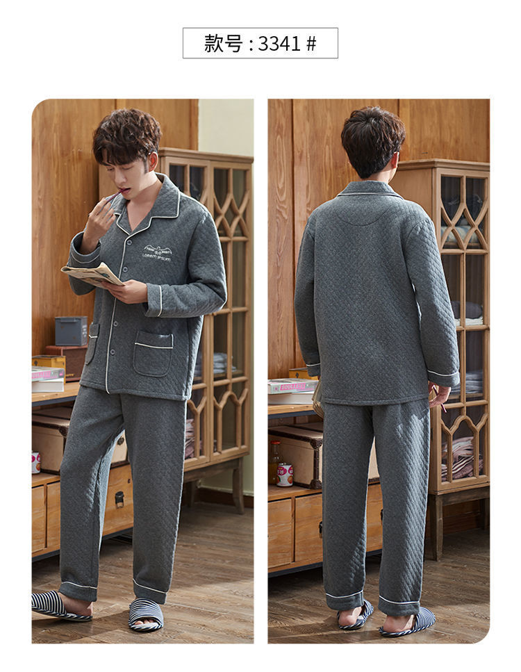 Pijamas hombres 100% algodón Otoño e Invierno Nuevo más tamaño joven y de mediana edad intercalar espesado cálido traje de primavera y otoño