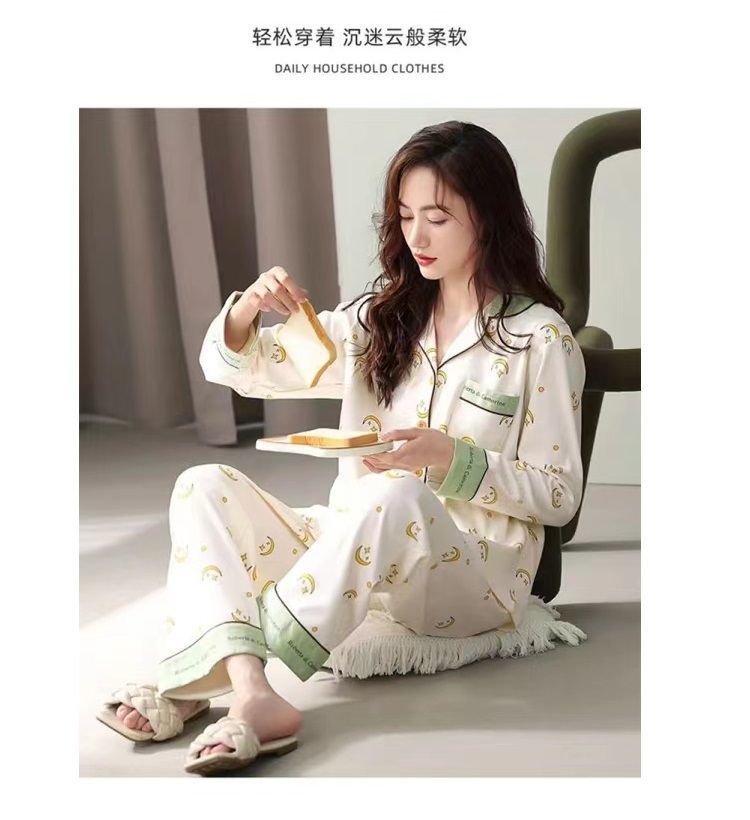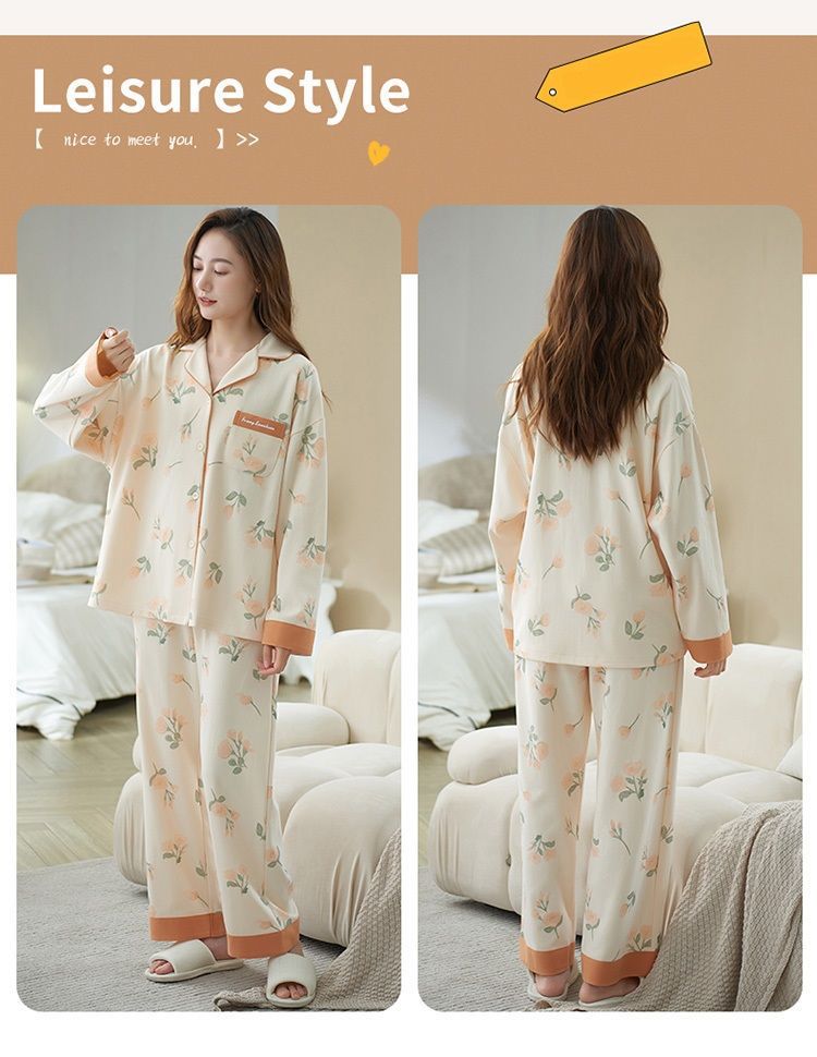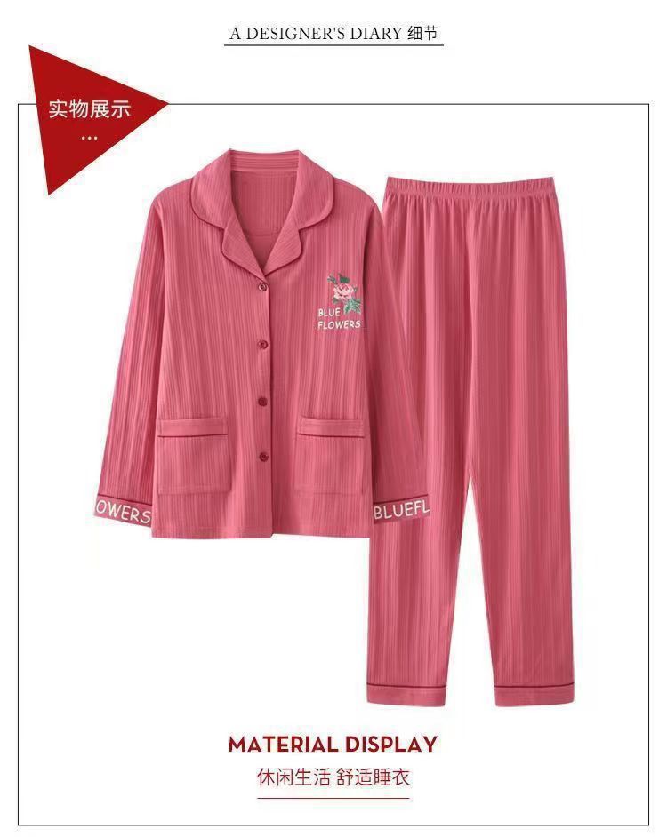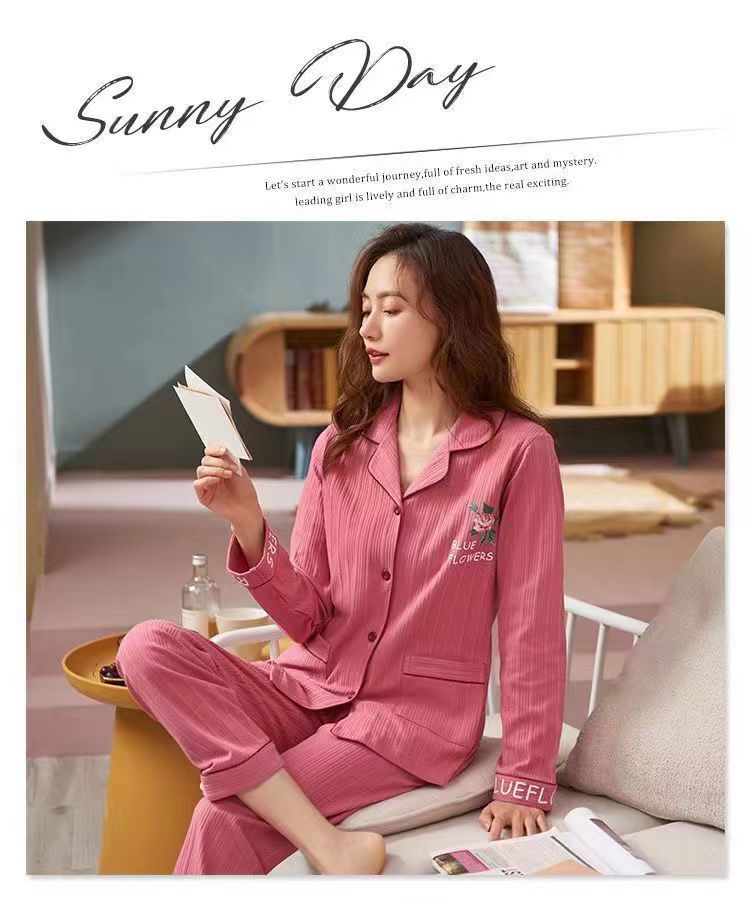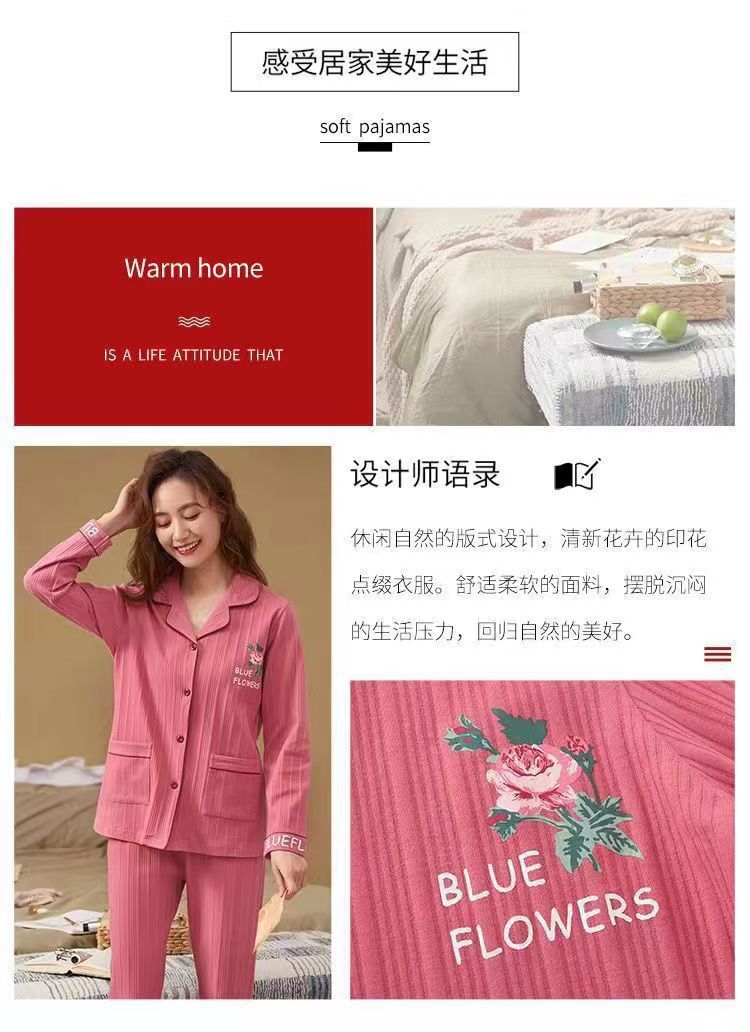 Otoño 100% pijamas de algodón puro para mujeres primavera y otoño con almohadilla en el pecho anti-Bump pantalones de manga larga ropa de abrigo de alta gama homewear