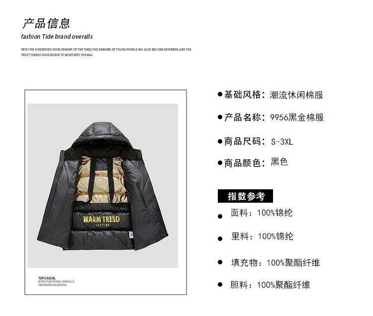 Chaqueta acolchada de algodón negro y dorado transfronteriza chaqueta acolchada de algodón de invierno para hombres jóvenes y de mediana edad más abrigo de talla gruesa chaqueta acolchada de algodón al por mayor