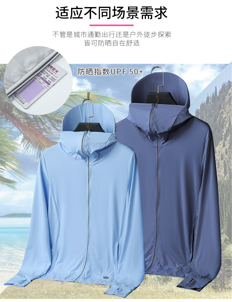 Pareja de seda de hielo fresco de alta potencia abrigo de hombres y mujeres de verano al aire libre transpirable de ala desmontable abrigo de piel al por mayor