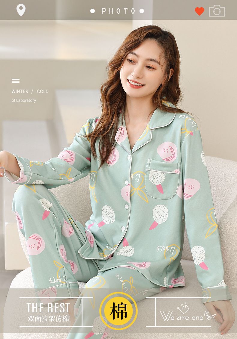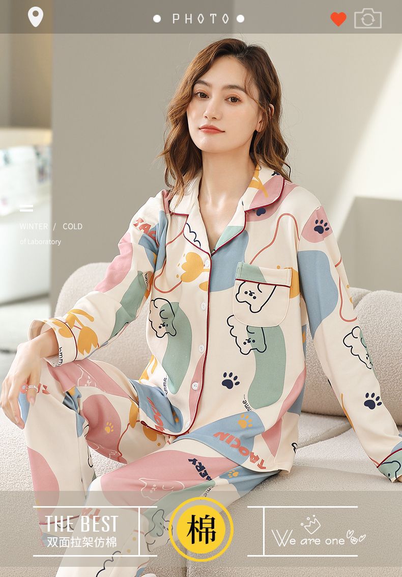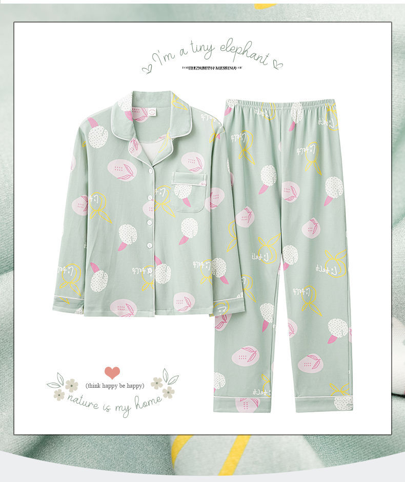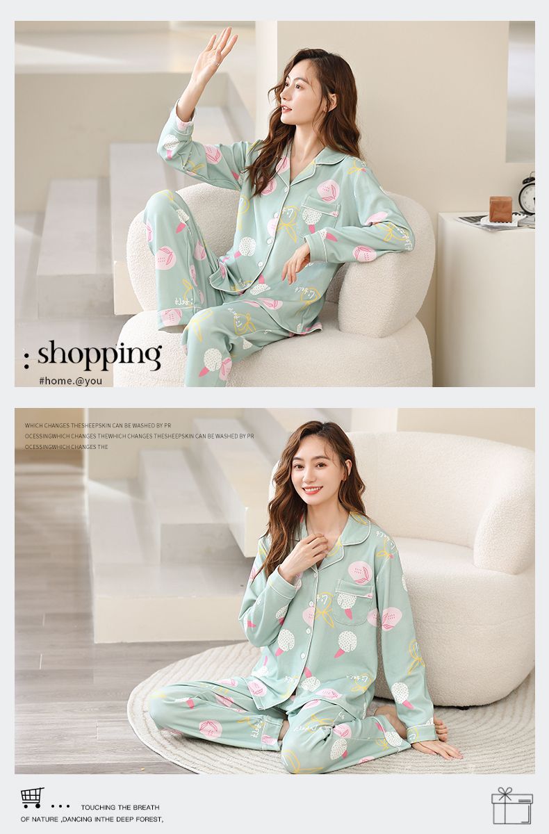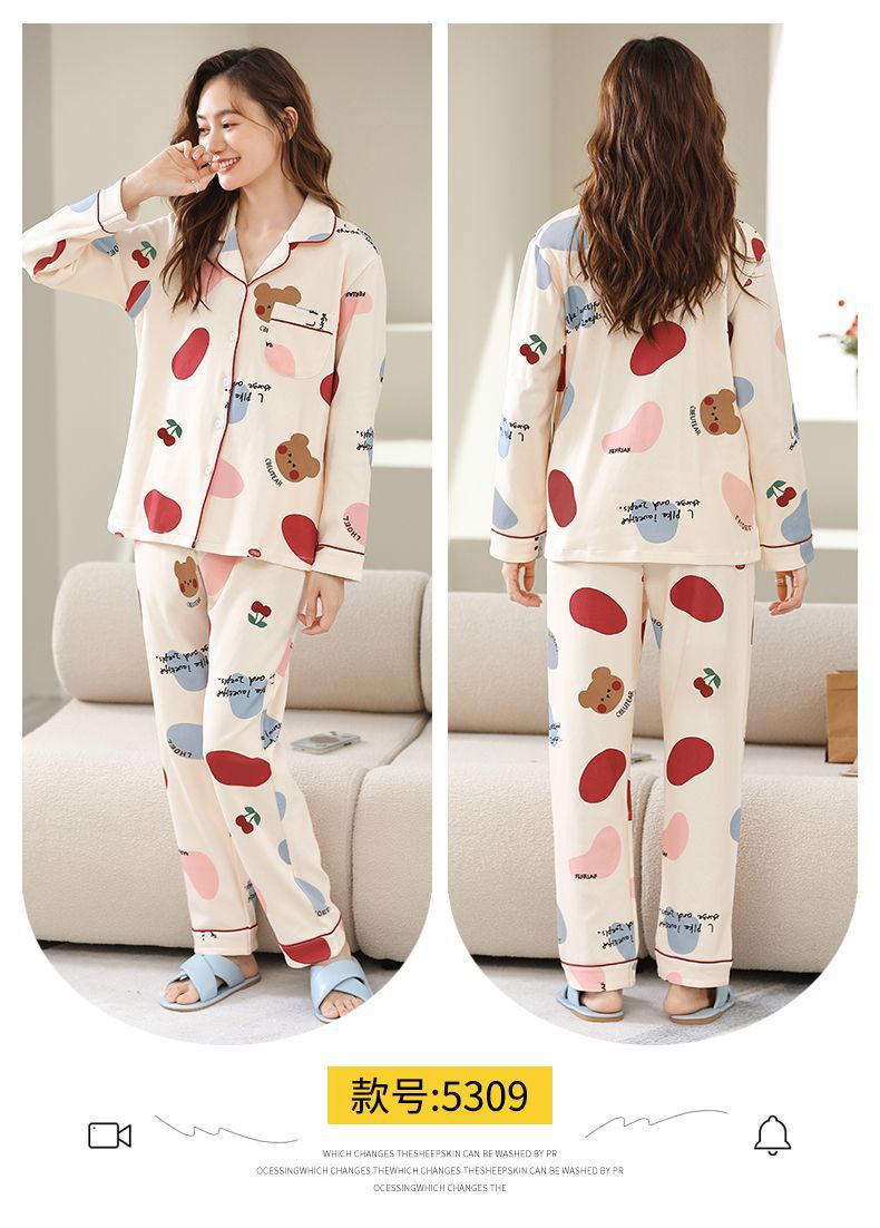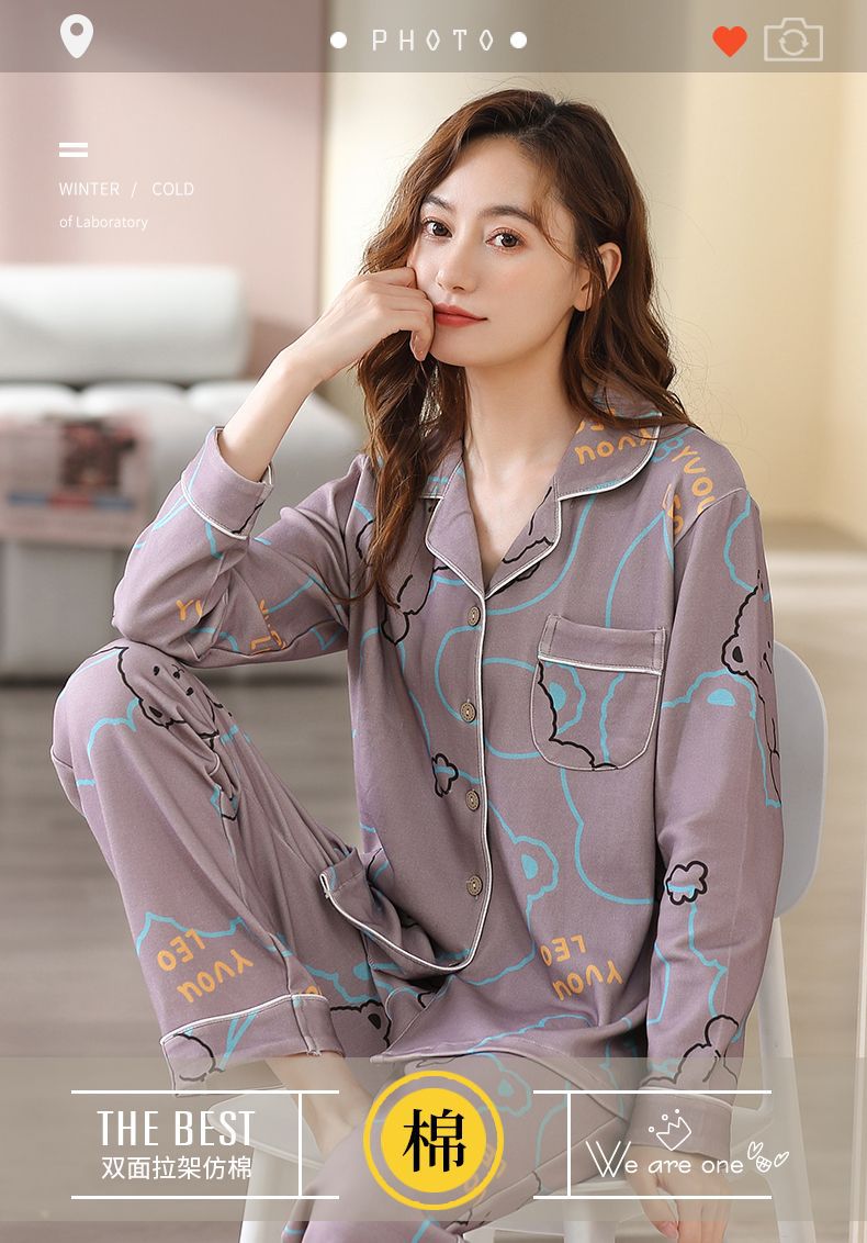 Nuevo traje % pijamas de algodón de las mujeres de primavera y otoño de manga larga de estilo coreano Chaqueta de punto de la muchacha ropa para el hogar al aire libre de invierno