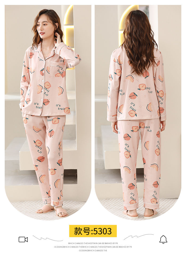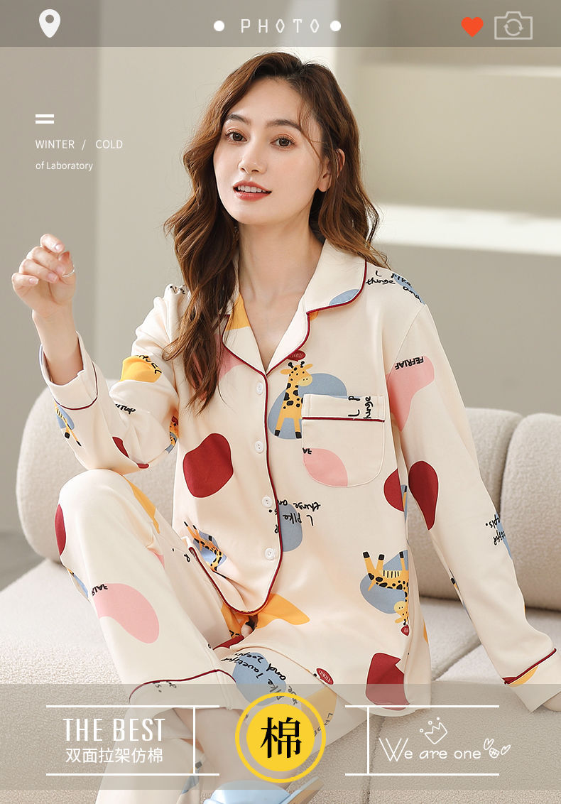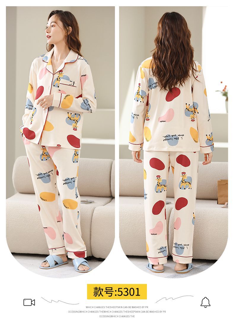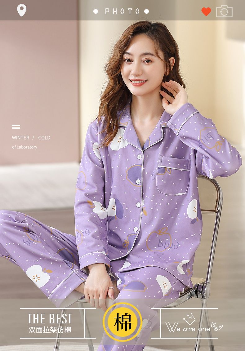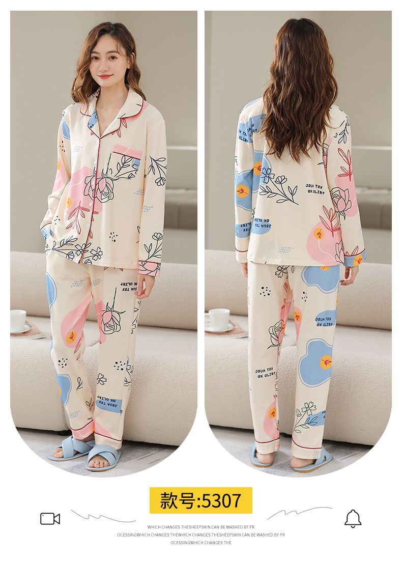 Nuevo traje % pijamas de algodón de las mujeres de primavera y otoño de manga larga de estilo coreano Chaqueta de punto de la muchacha ropa para el hogar al aire libre de invierno