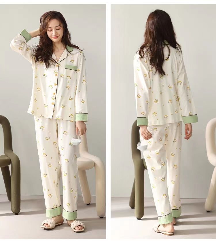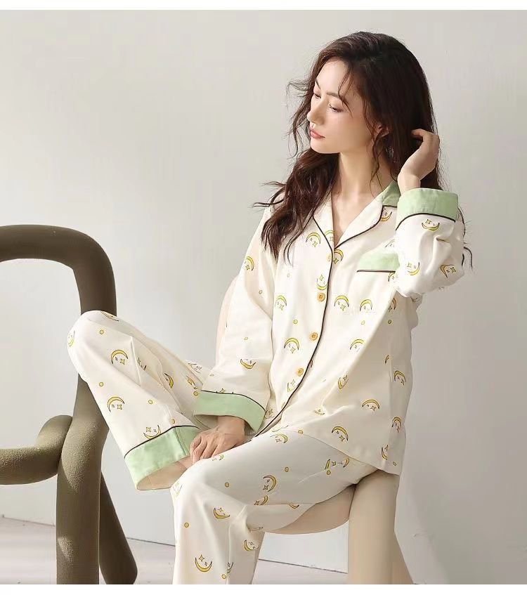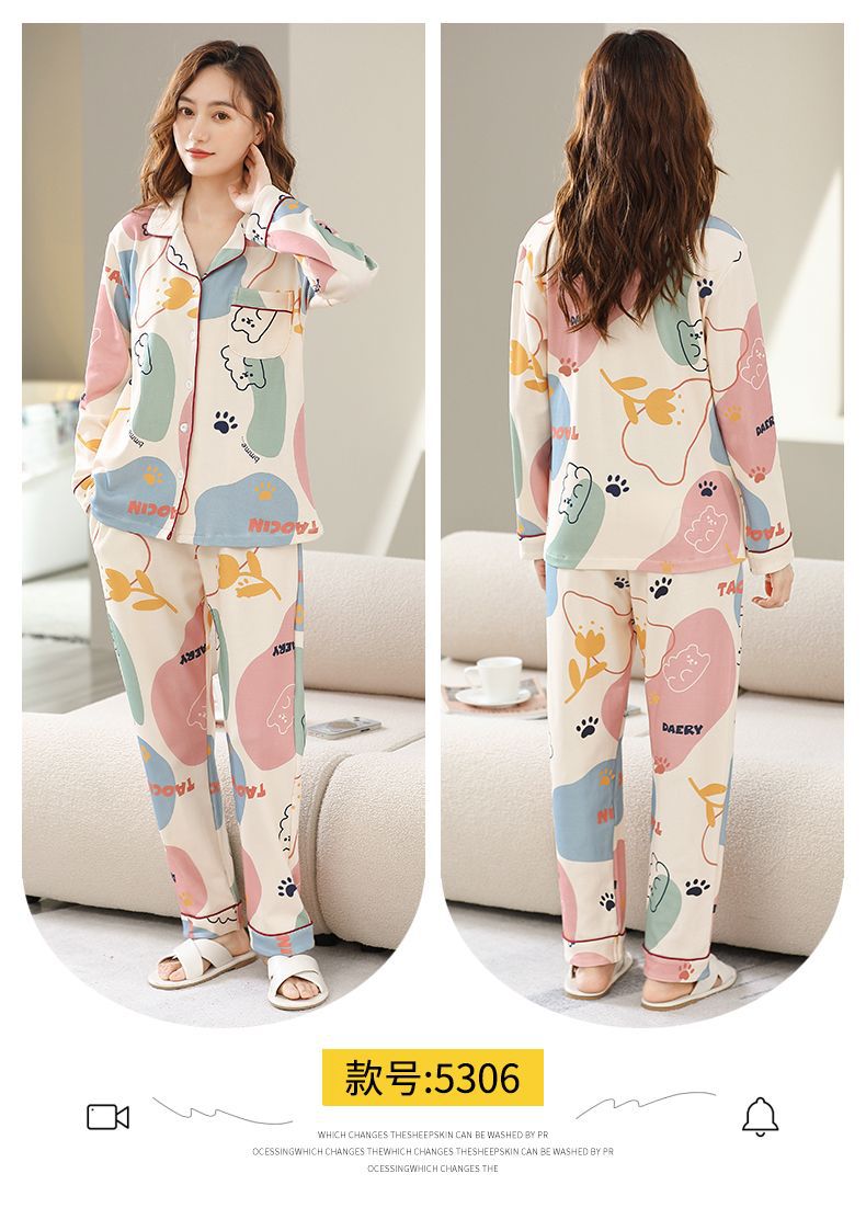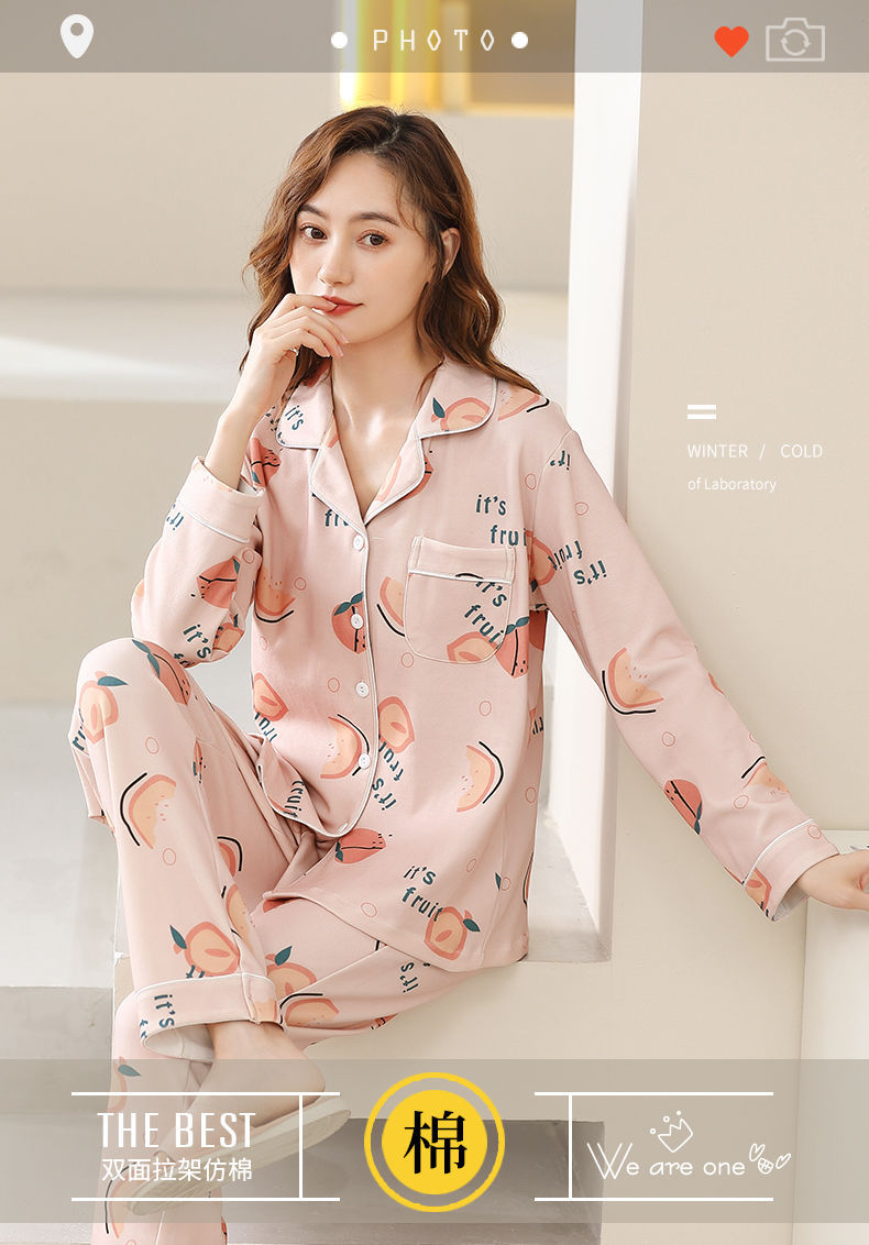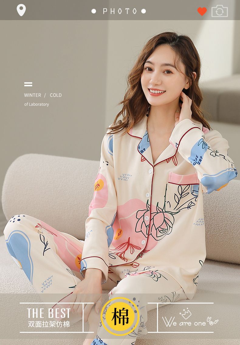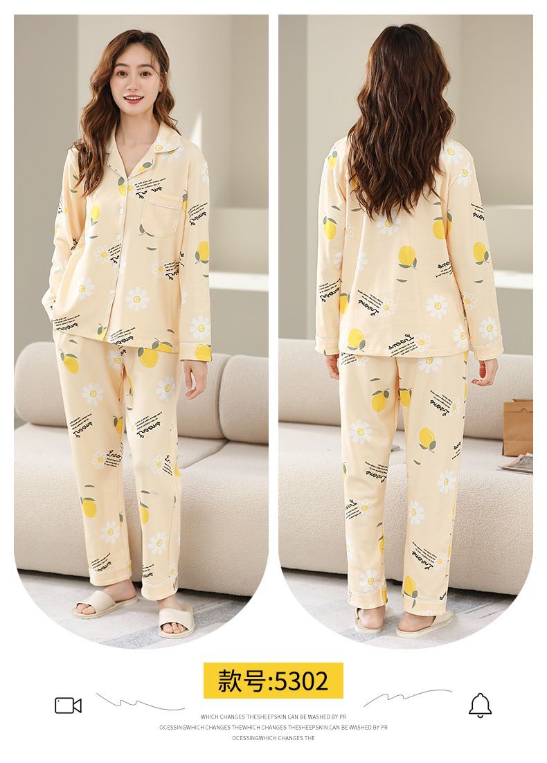 Nuevo traje % pijamas de algodón de las mujeres de primavera y otoño de manga larga de estilo coreano Chaqueta de punto de la muchacha ropa para el hogar al aire libre de invierno