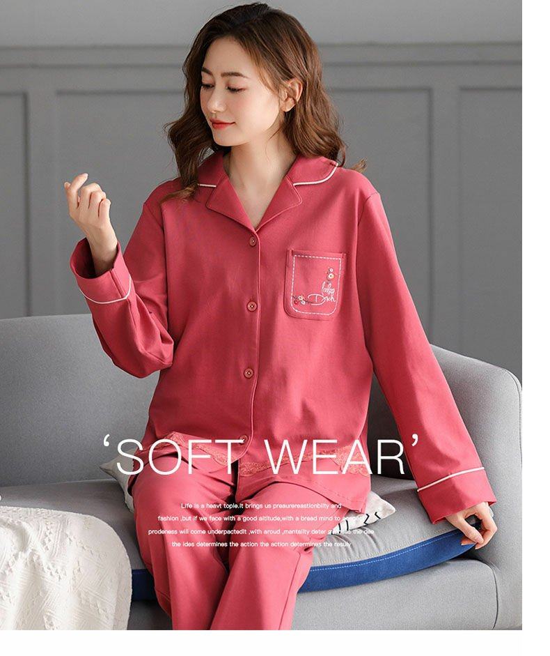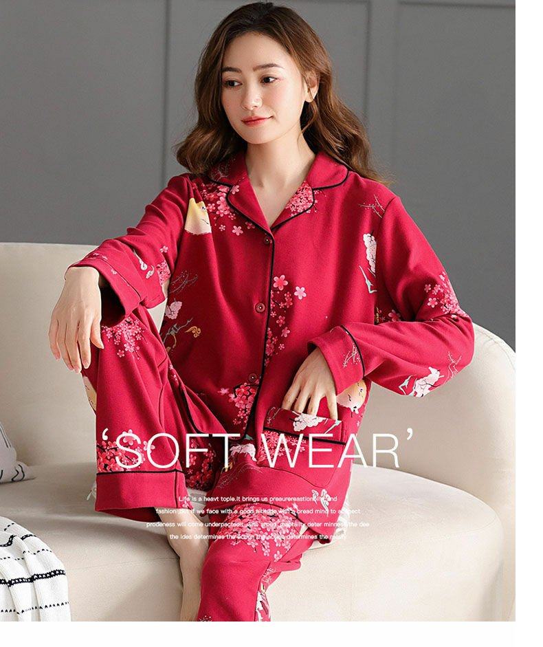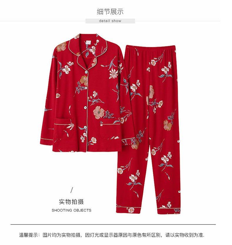 100% pijamas de algodón de las mujeres Primavera, Otoño e Invierno manga larga rojo año madre más tamaño cardigan traje de algodón