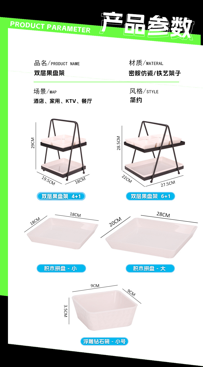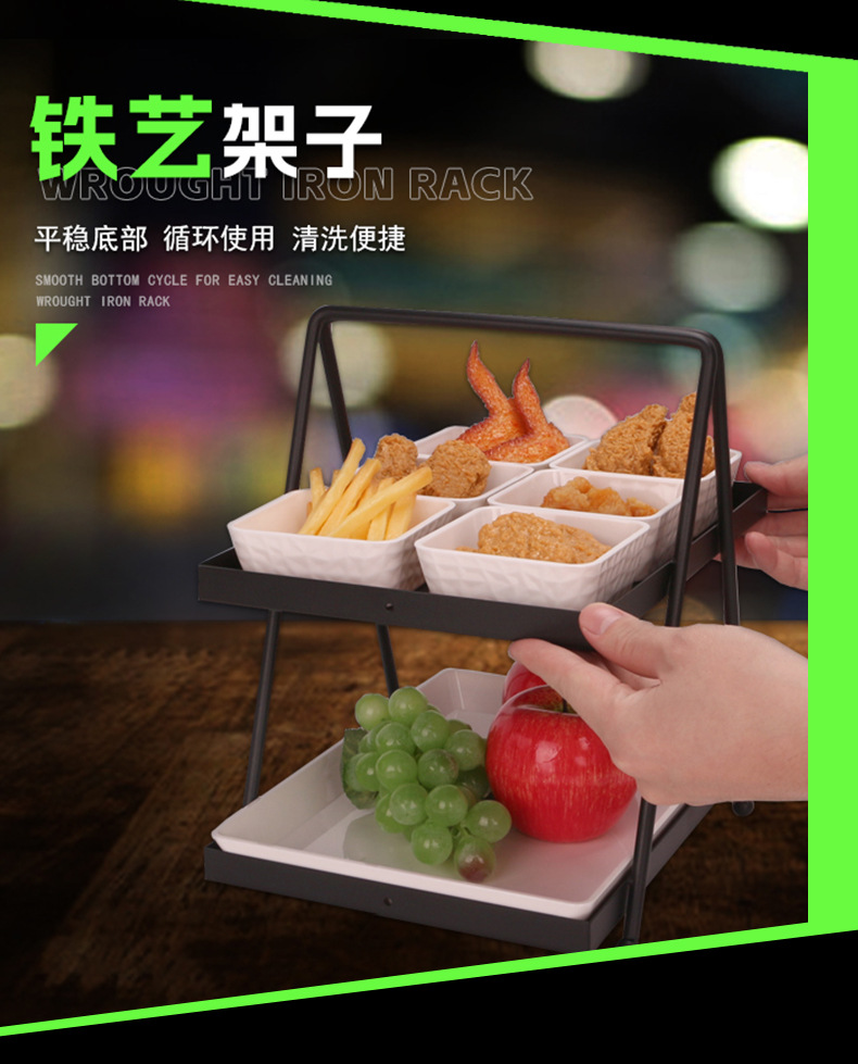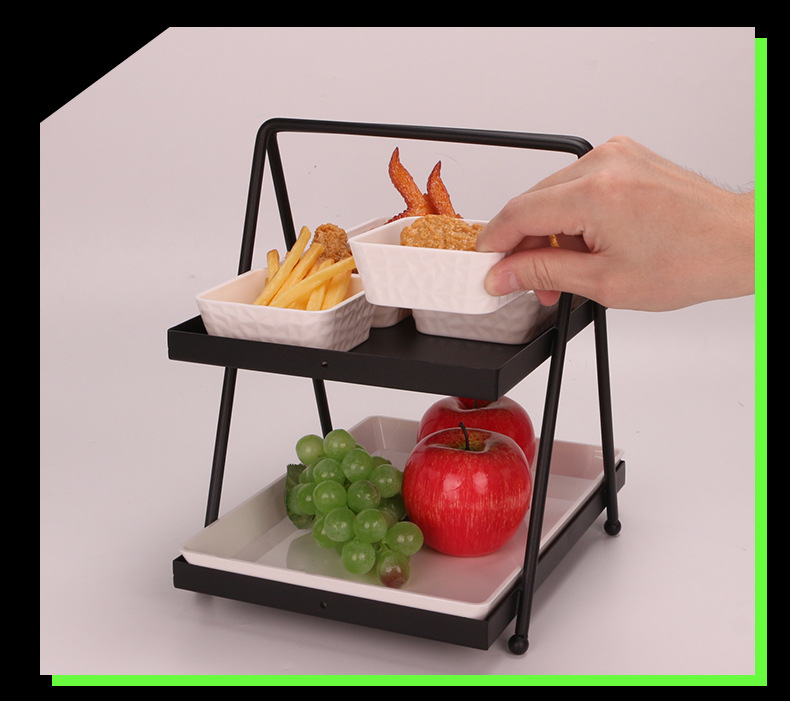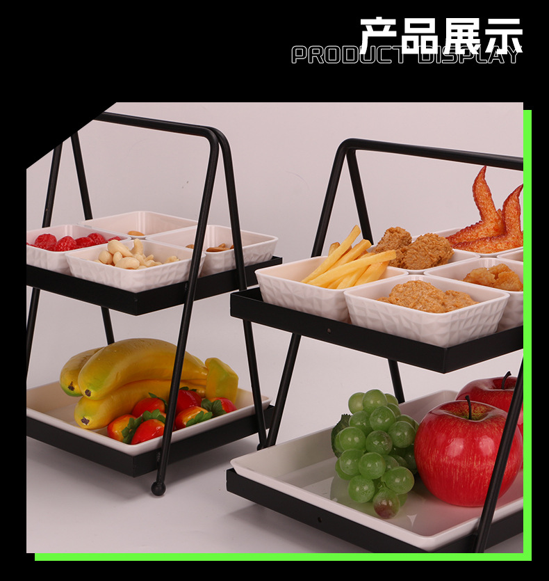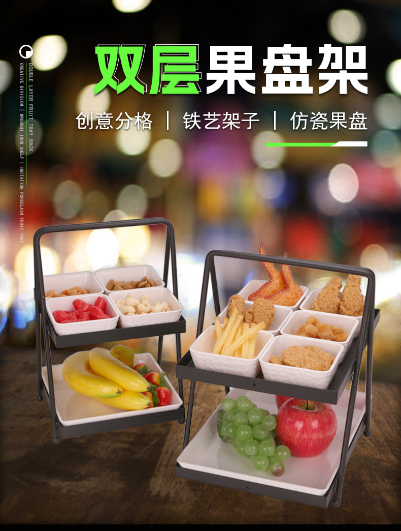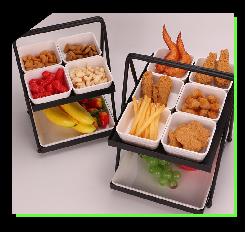 Plato de frutas de doble capa ktv Plato especial de cuatro cuadrados Plato de frutas secas Plato de barra Plato de bocadillos comerciales Plato de frutas