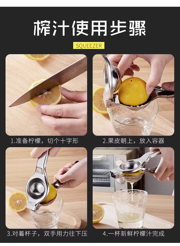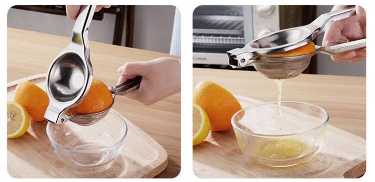 Exprimidor de jugo manual de acero inoxidable, artefacto de jugo de limón, abrazadera de frutas de presión manual doméstica, mini máquina de jugo pequeña