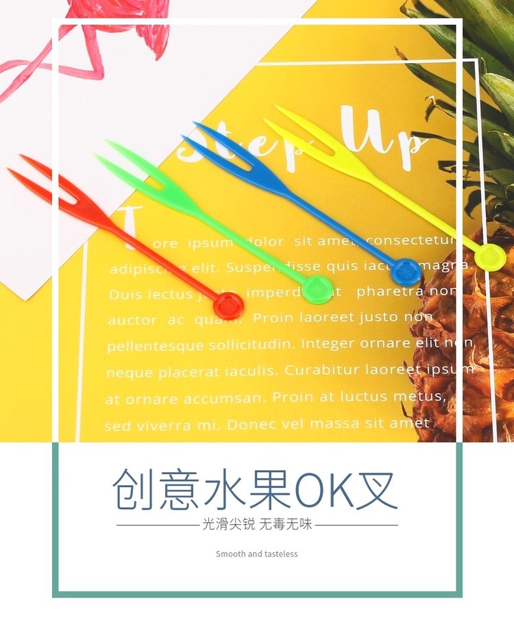 Fruta OK tenedor desechable fruta creativa palo de plástico fruta tenedor barra KTV color creativo tenedor fruta