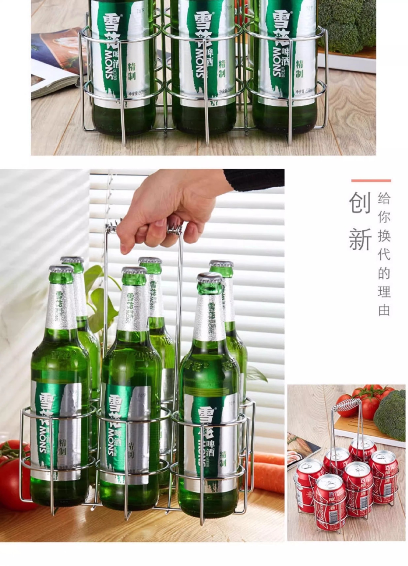 KTV cesta de cerveza estante de cerveza de acero inoxidable seis botellas canasta de cerveza portátil restaurante cesta de la botella de vino