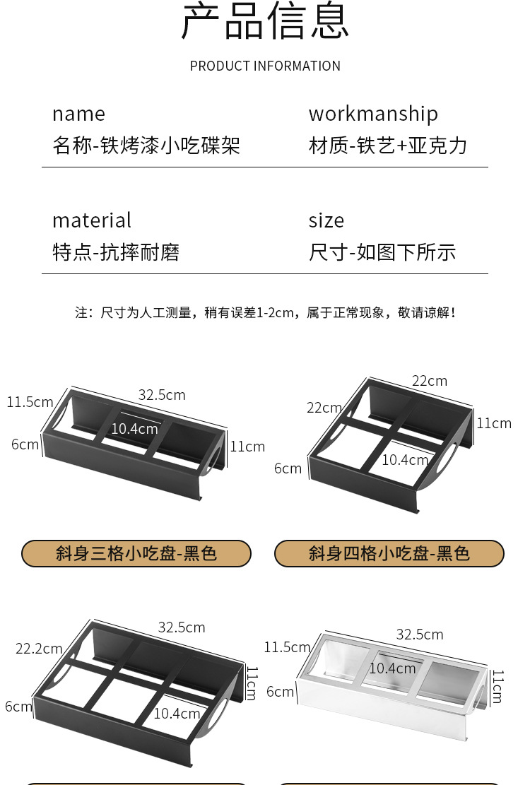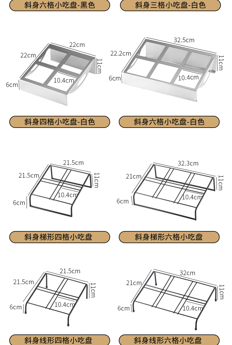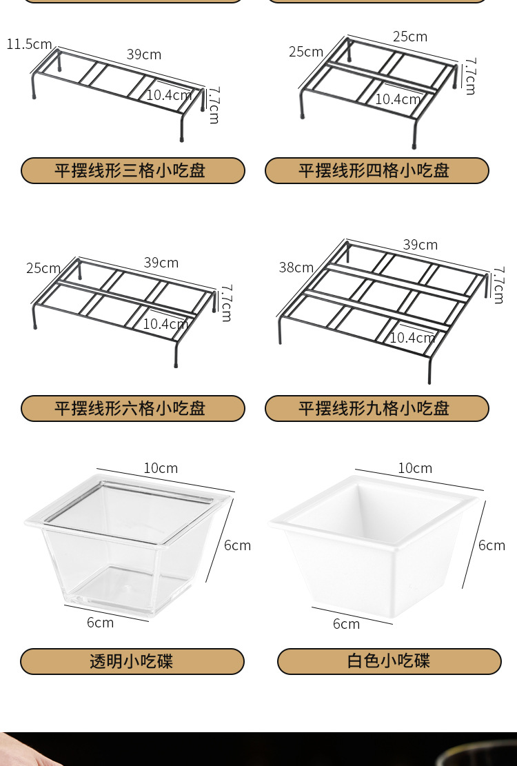 | Color | Marco negro de pintura tipo B de tres compartimientos (sin platos),Marco negro de pintura tipo B con cuatro compartimientos (sin platos),Marco negro de pintura tipo B de seis compartimientos (sin platos),Plato de bocadillo cuadrado inverso [porcelana de imitación blanca],Plato de bocadillo cuadrado inverso [transparente] |